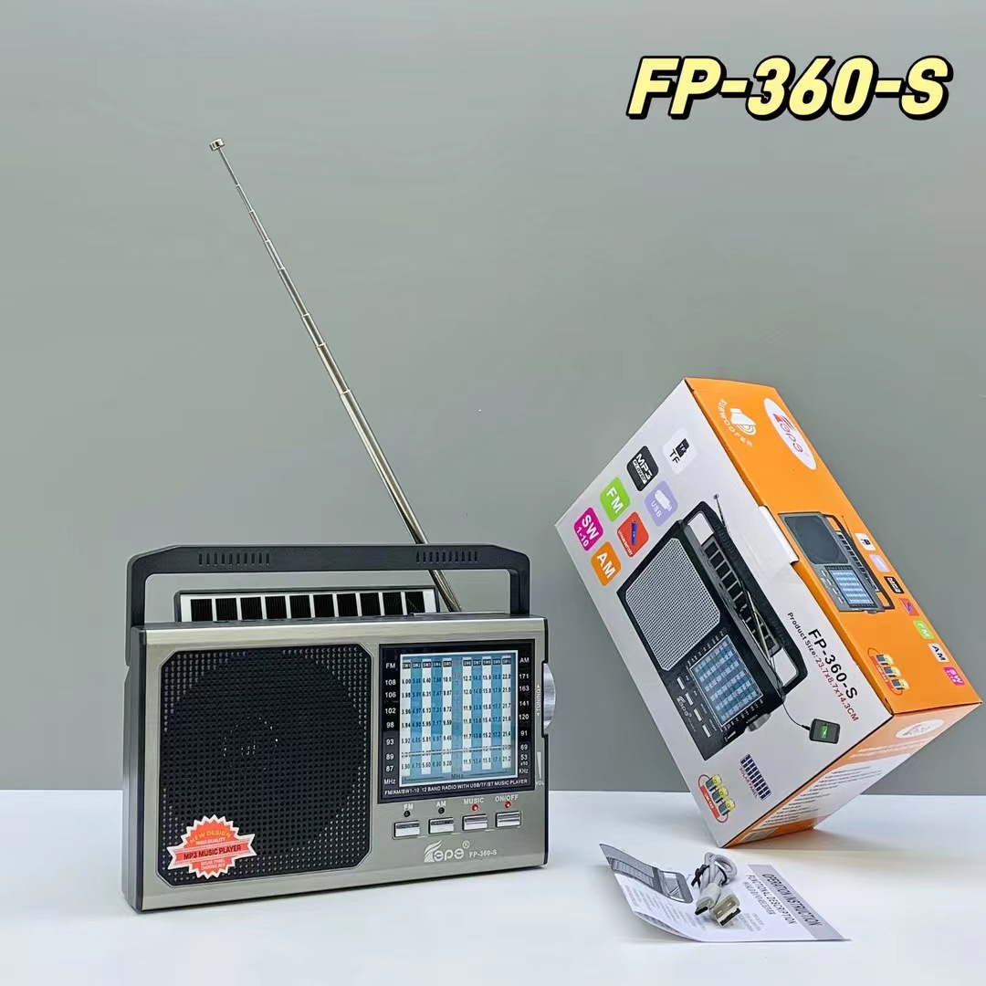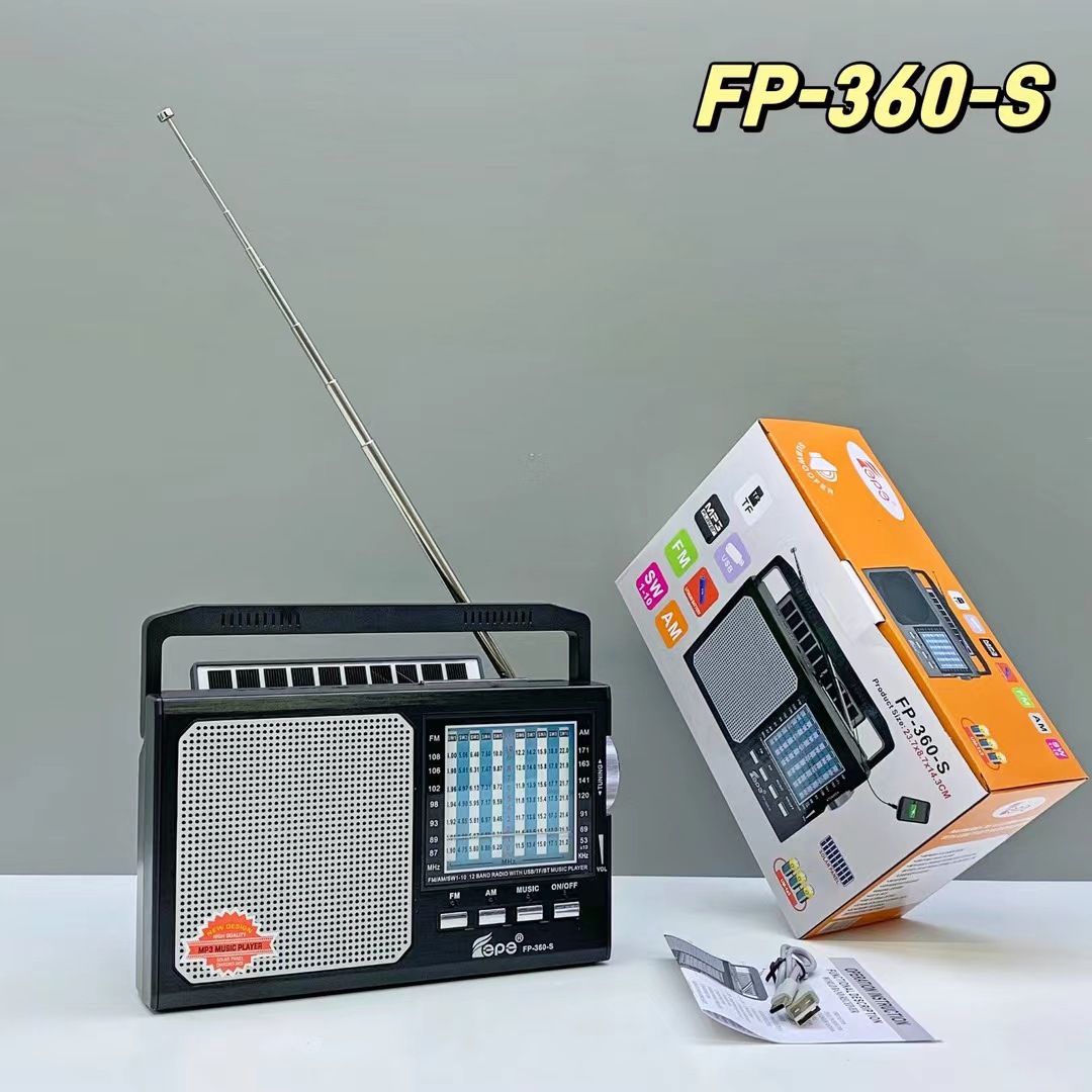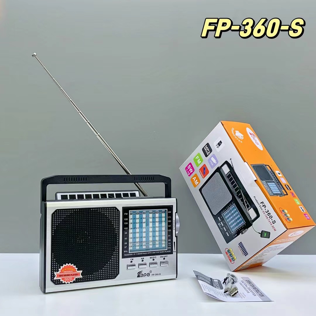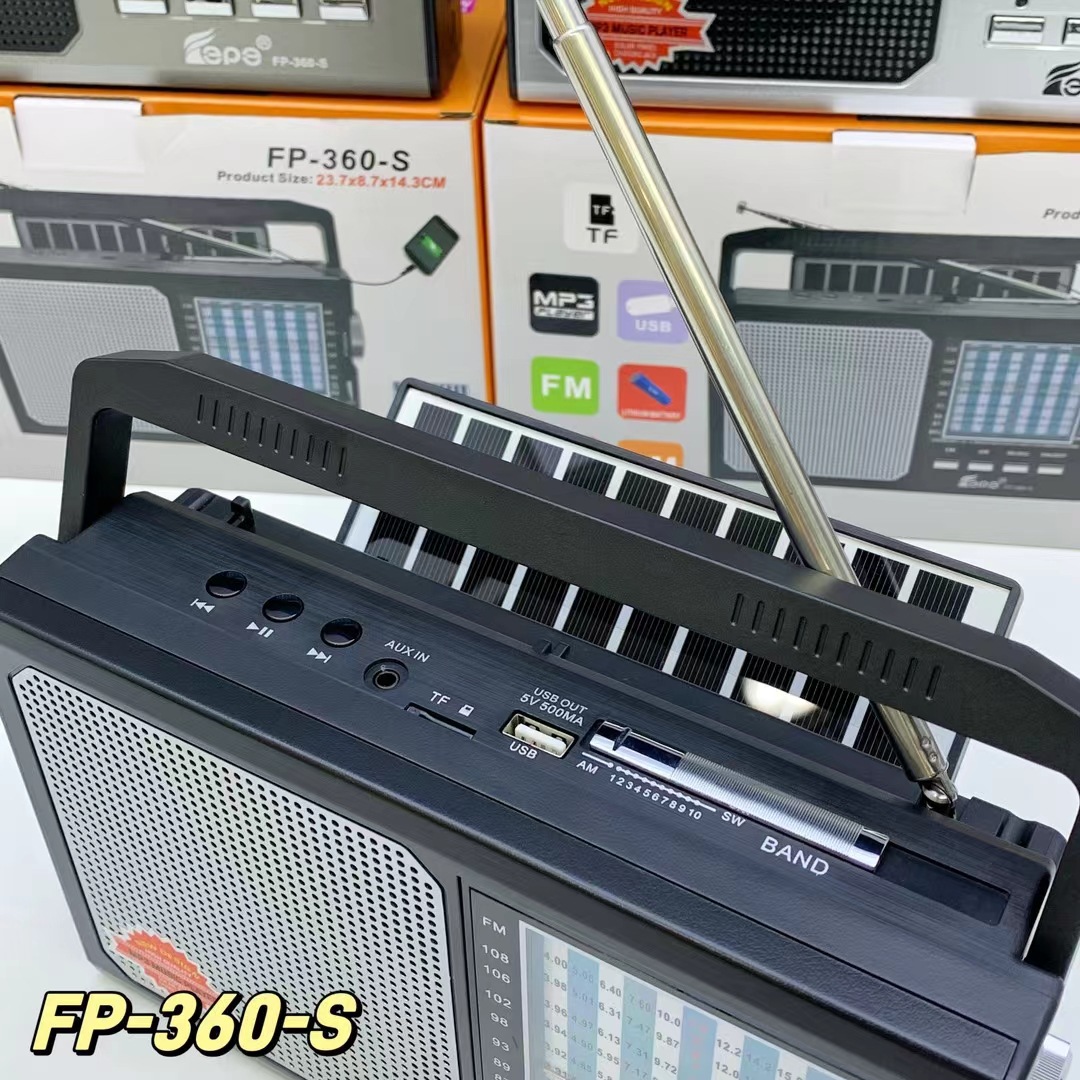 跨境新款FP-360-S太阳能蓝牙音箱便携天线三段调频手提户外收音机
