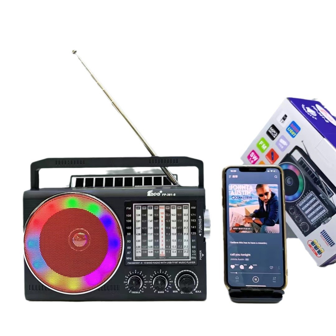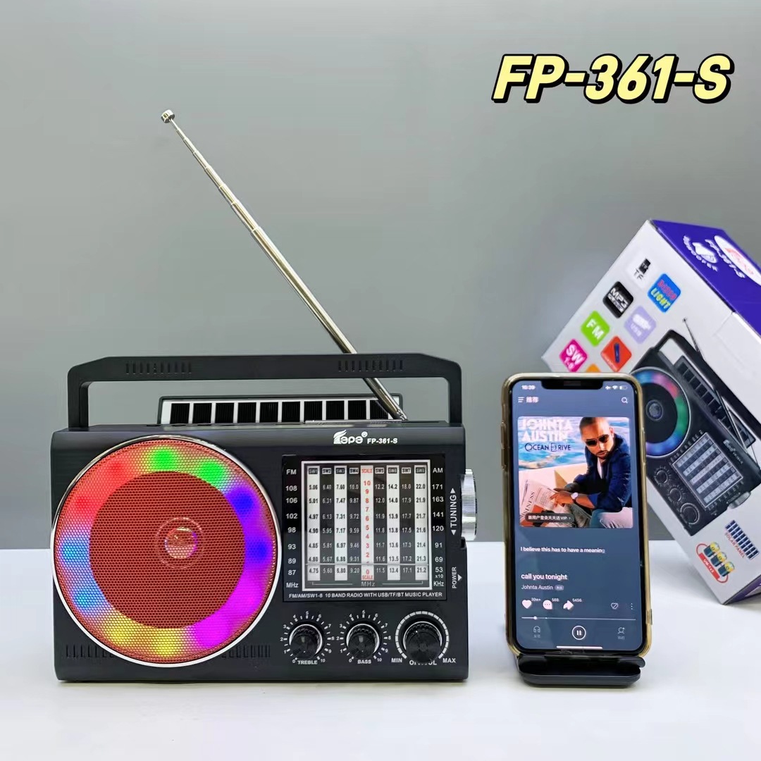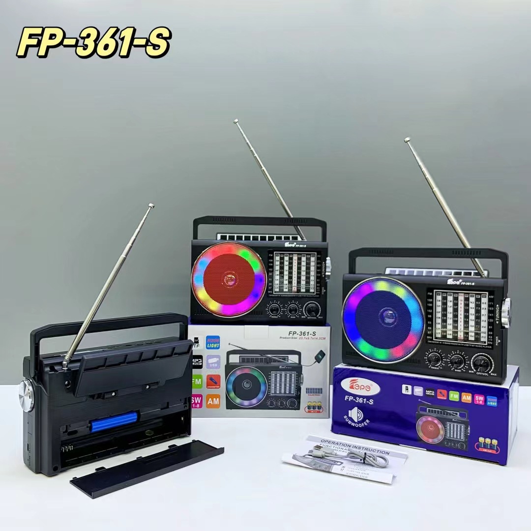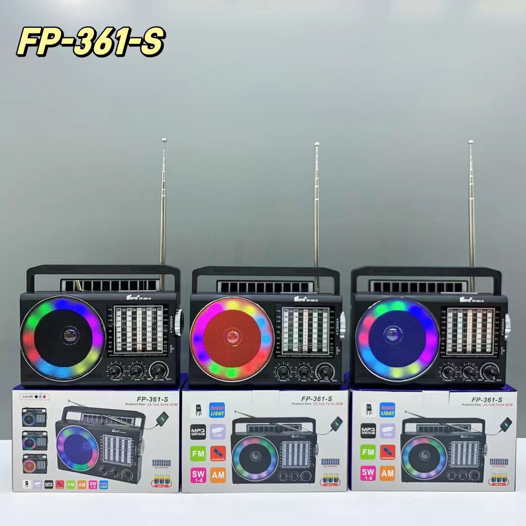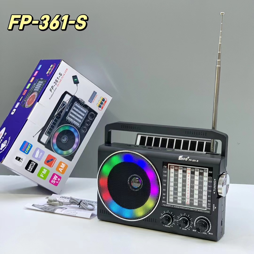 外贸FP-361-S太阳能蓝牙音箱炫彩灯三段调频便携带天线手提收音机
