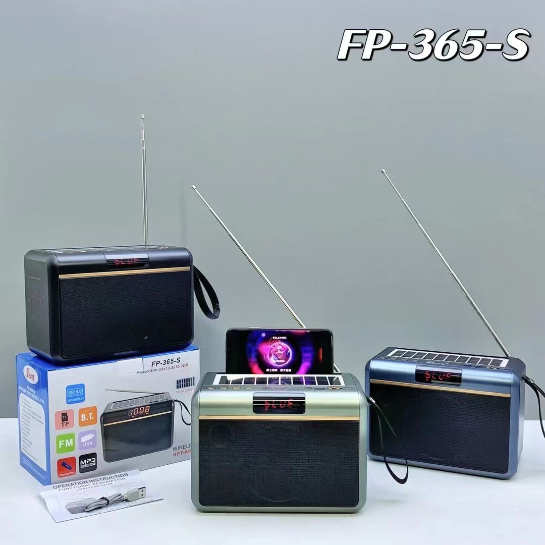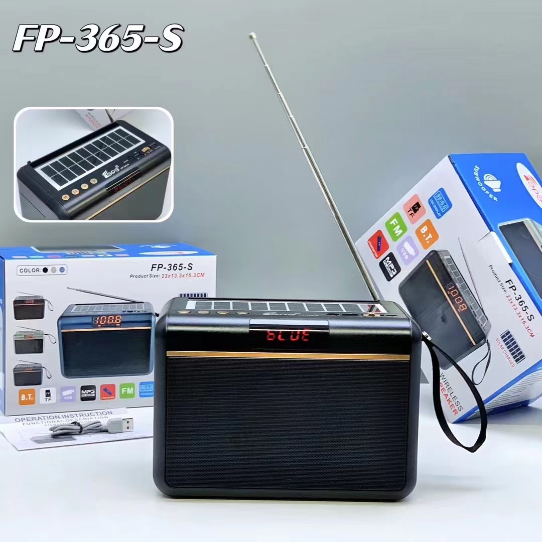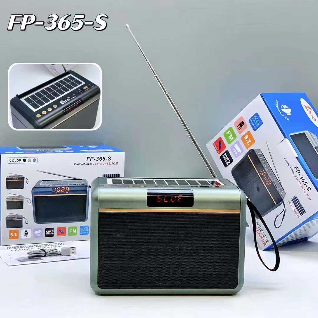跨境新款FP-365-S太阳能收音机蓝牙音箱户外便携带天线显示屏音响