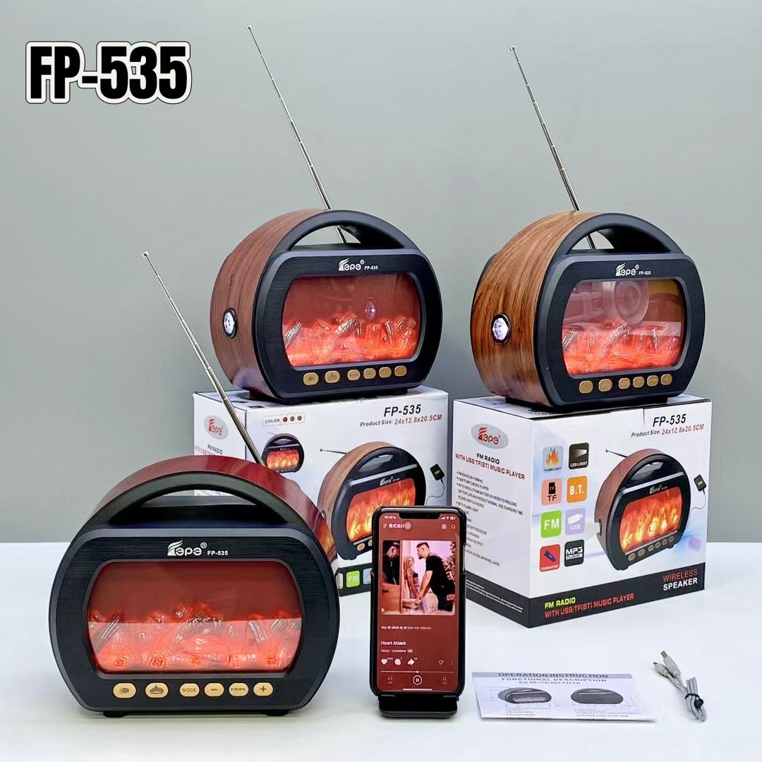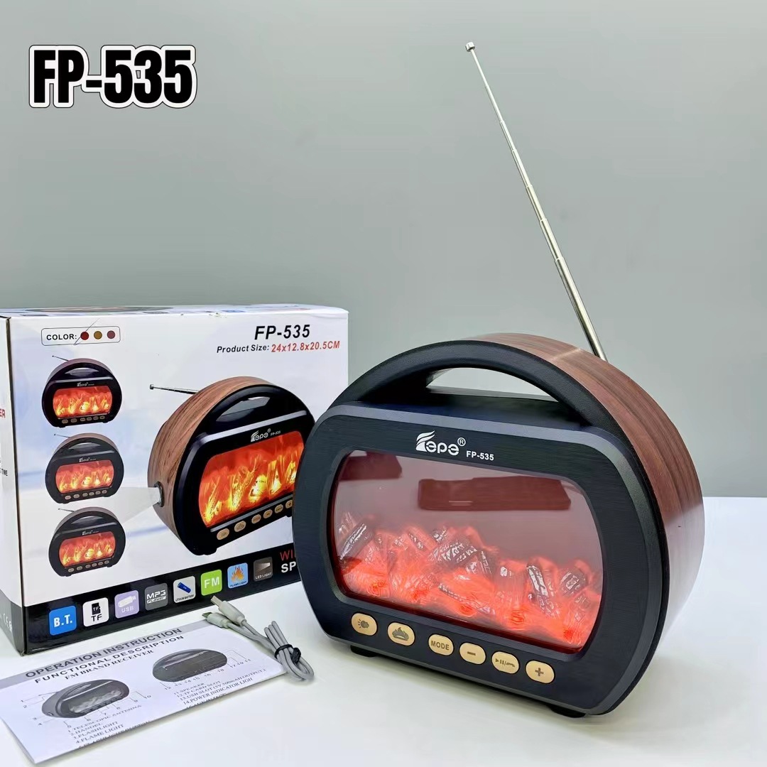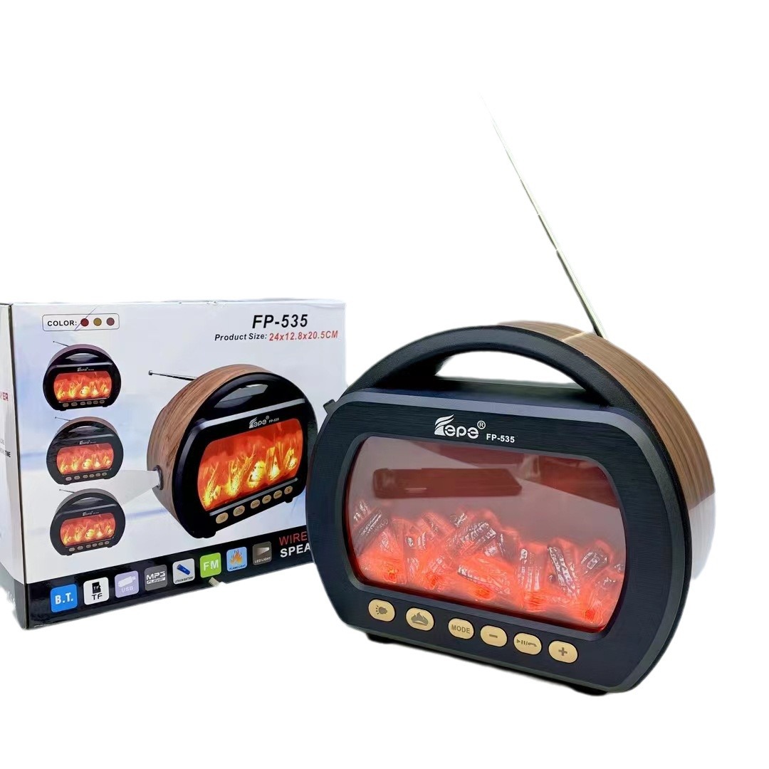 FP-535新品火焰灯复古蓝牙音箱便携手提收音机多功能户外插卡音响