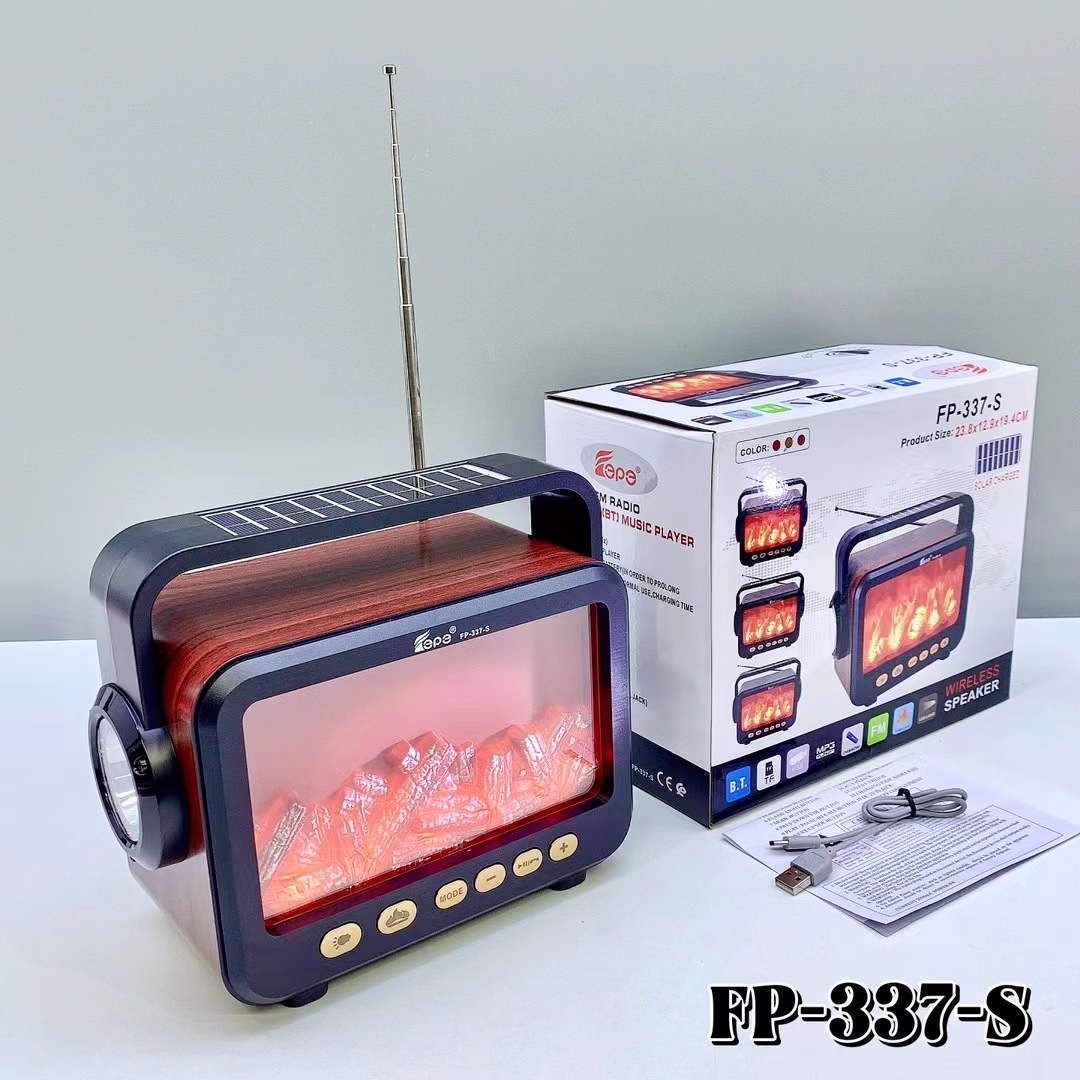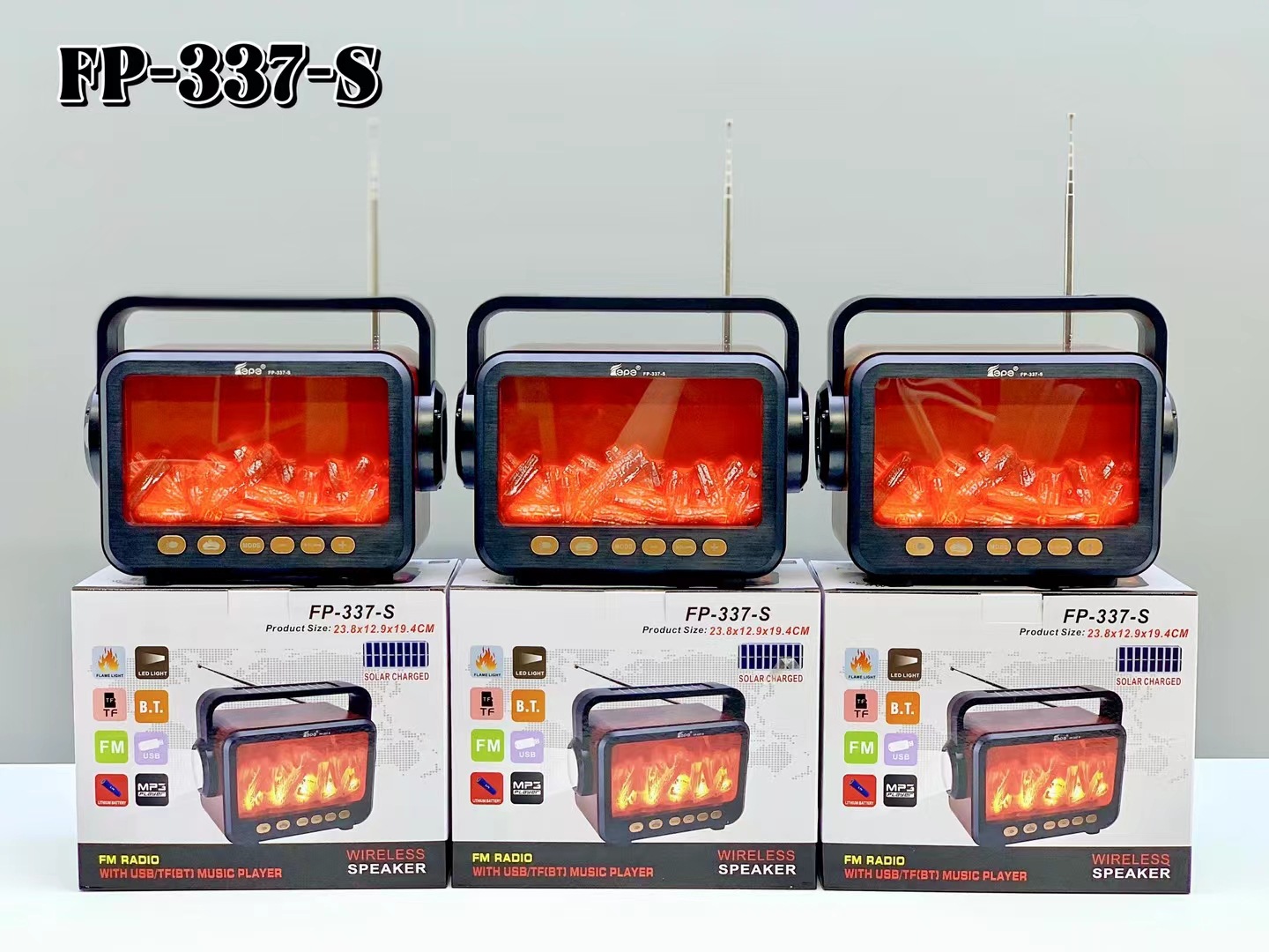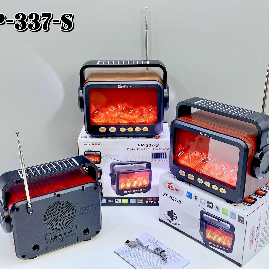 FP-337-S新款火焰灯太阳能蓝牙音箱手提户外多波段收音机插卡音响