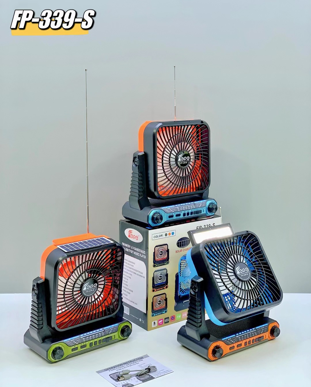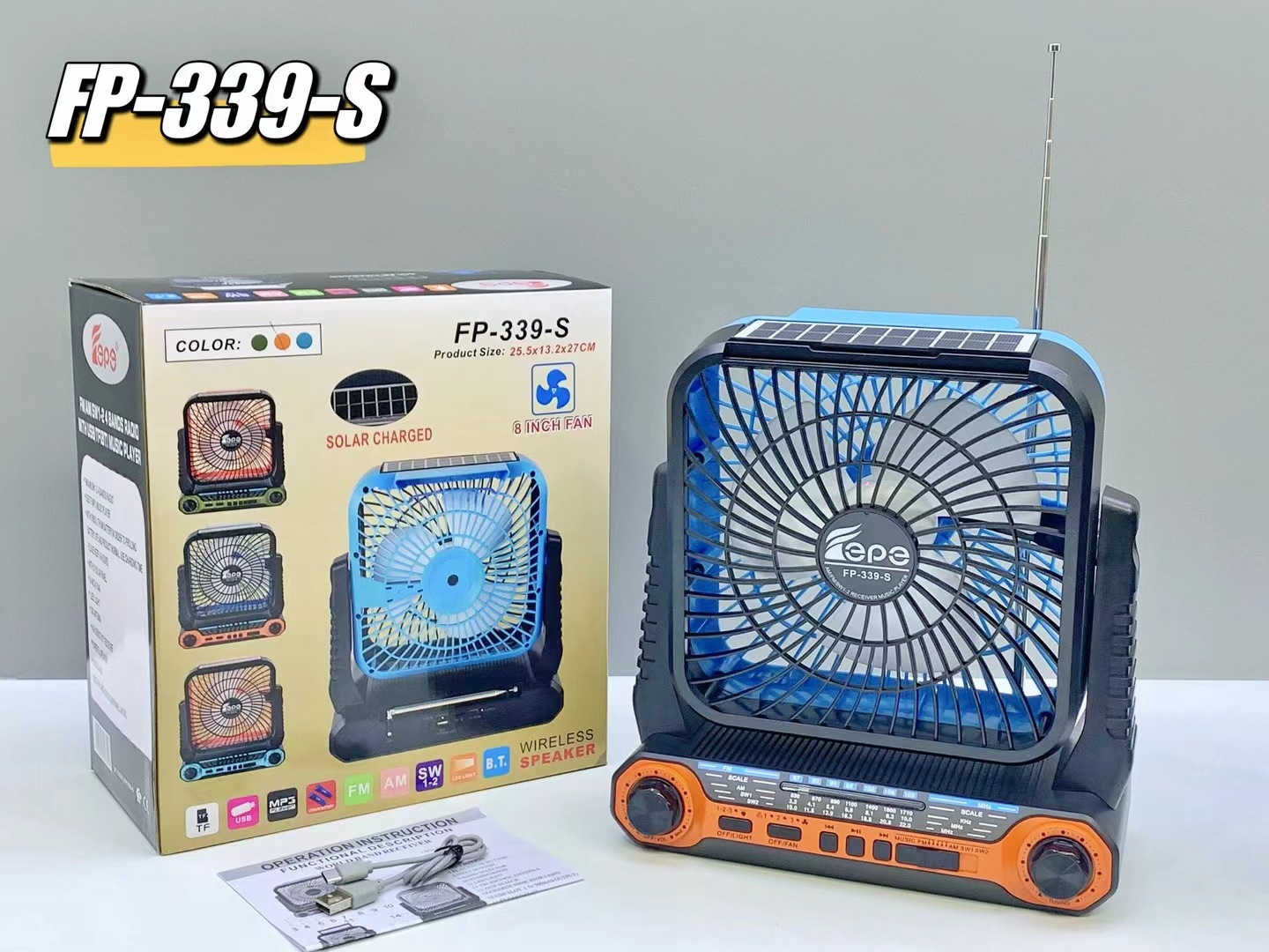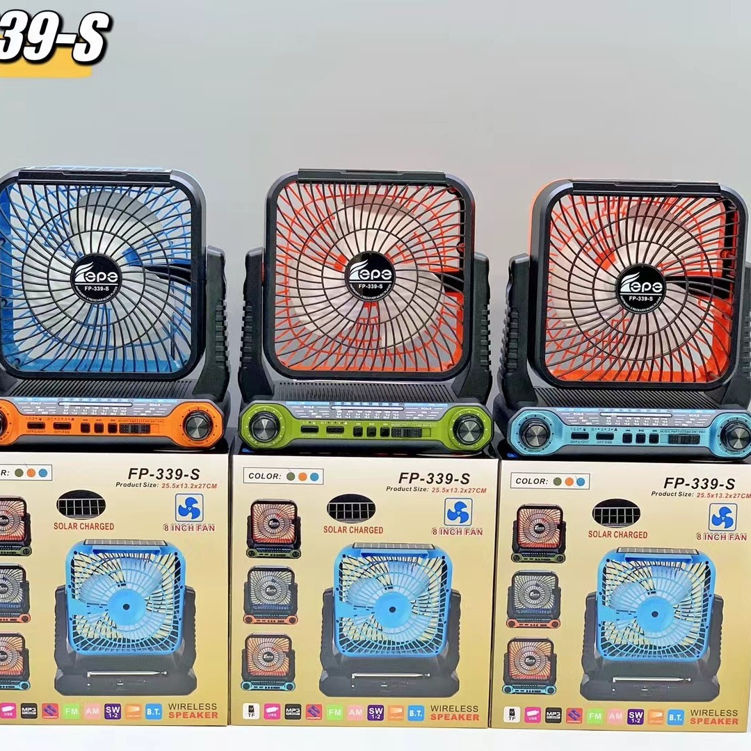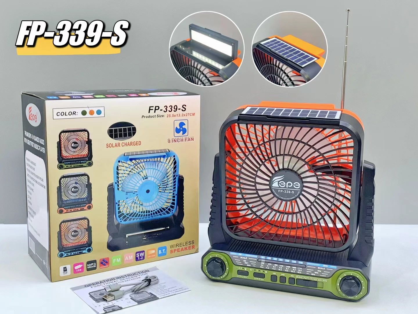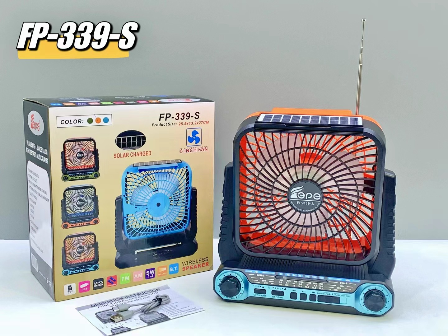 FP-339-S 太阳能蓝牙音箱户外带风扇LED手电筒便携收音机插卡音响