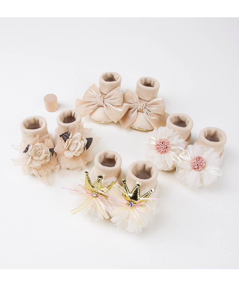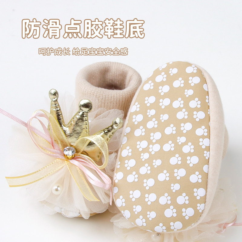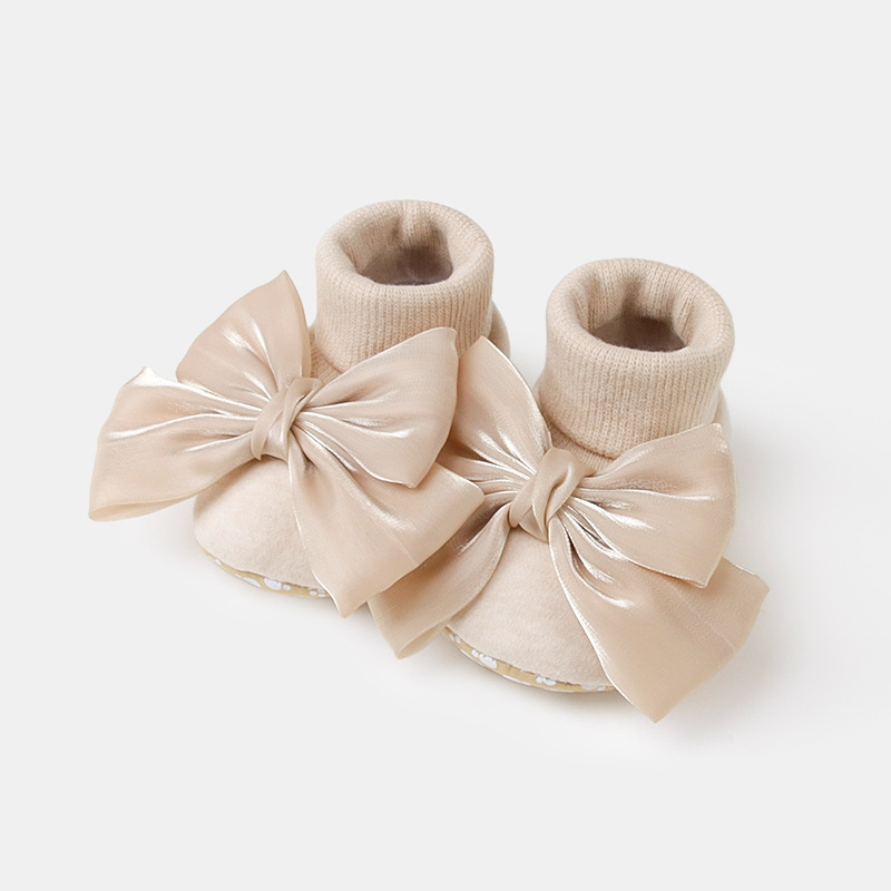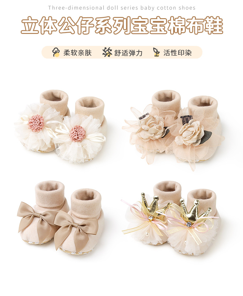 新生儿宝宝棉鞋春秋女童室内防滑软底学步鞋可爱蝴蝶结公主婴儿鞋