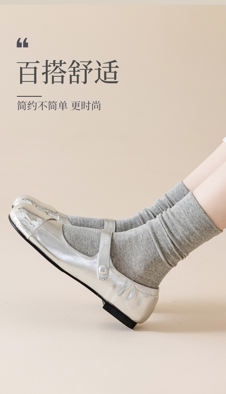 灰色月子袜秋季纯棉中筒袜白色无骨袜女松口袜子不嘞脚长筒堆堆袜