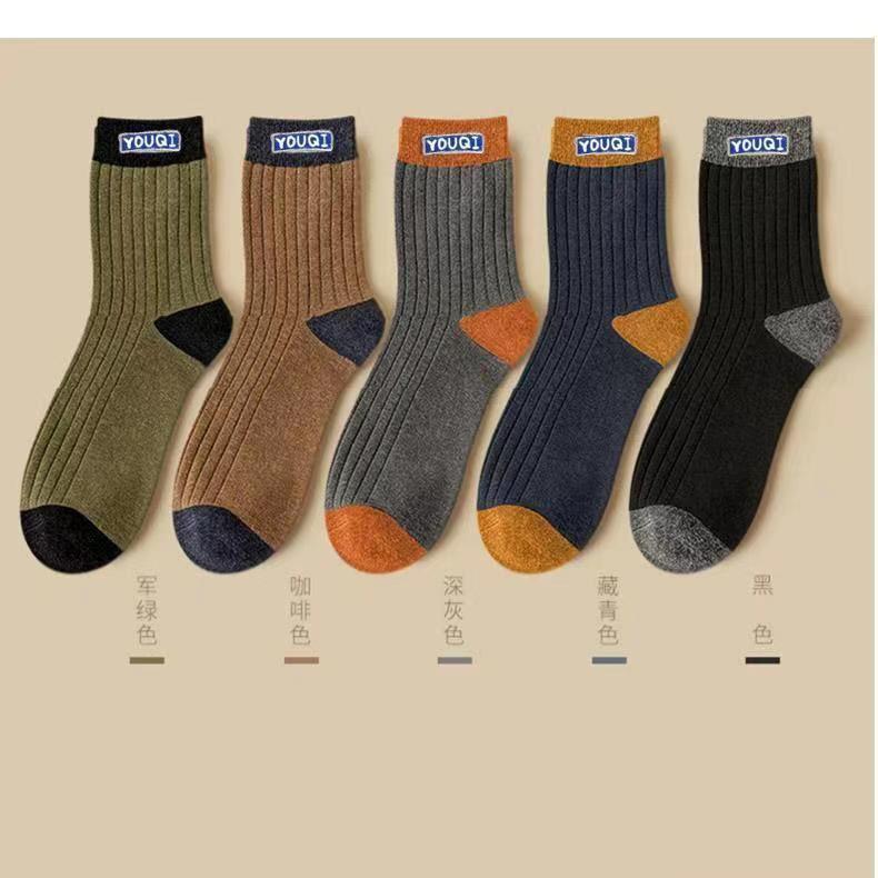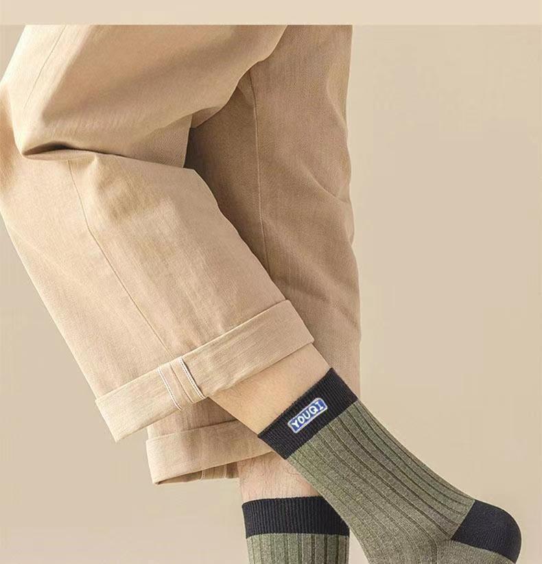 袜子男士秋冬休闲中筒袜拼色字母复古日系学院风长袜新款运动透气