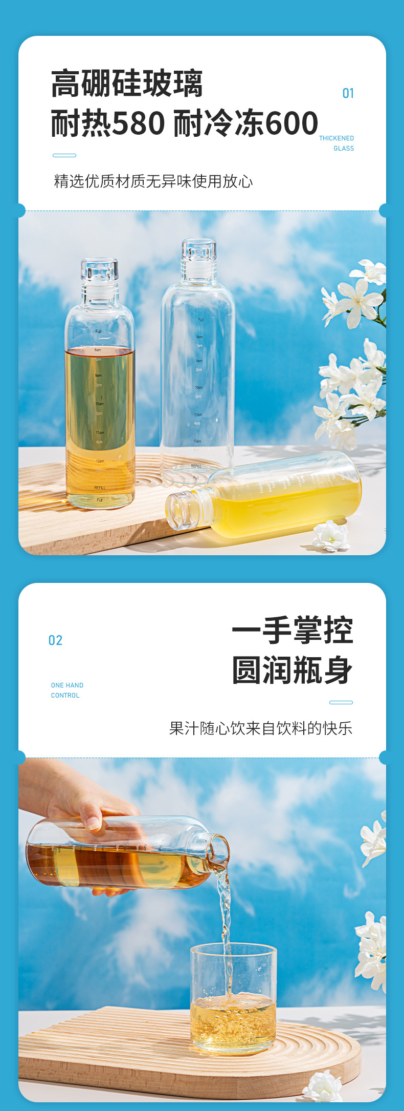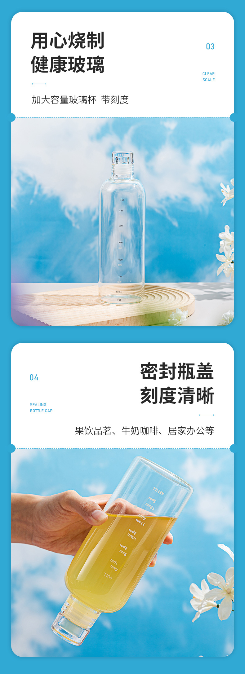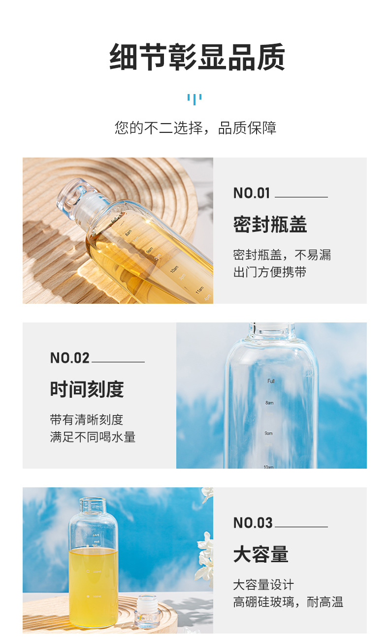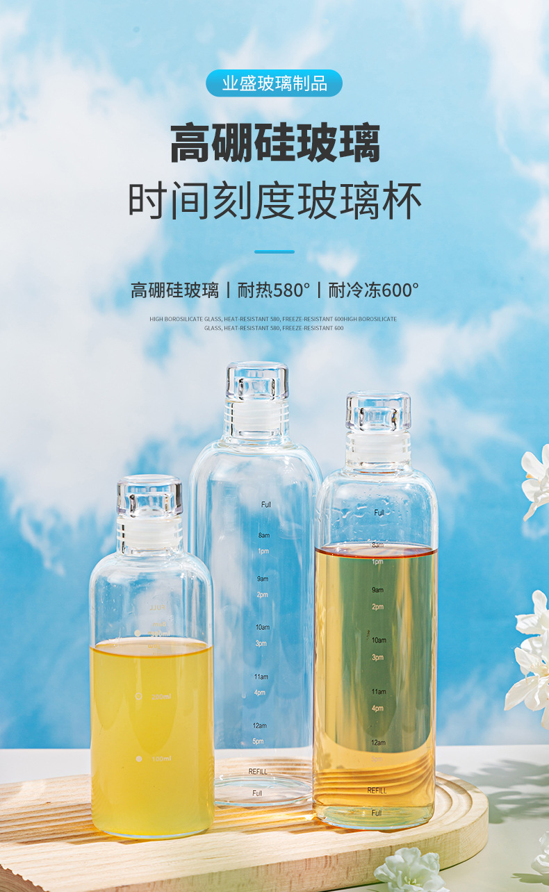创意时间刻度杯玻璃水杯大容量耐高温旅行便携女生颜值福礼品水杯
