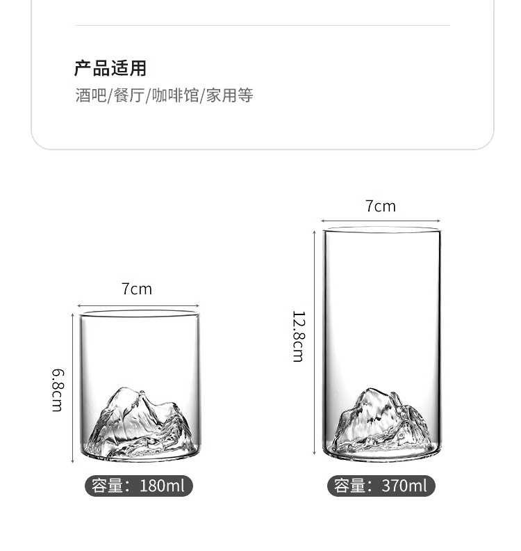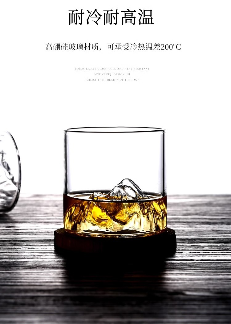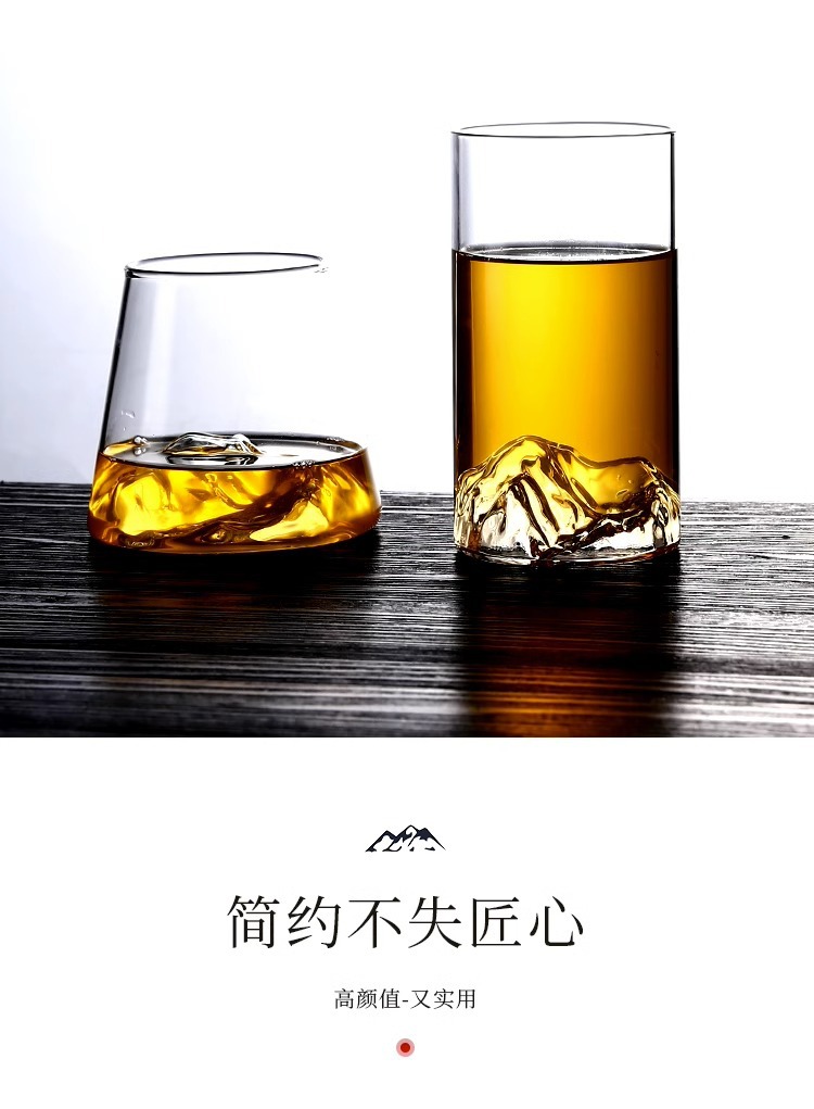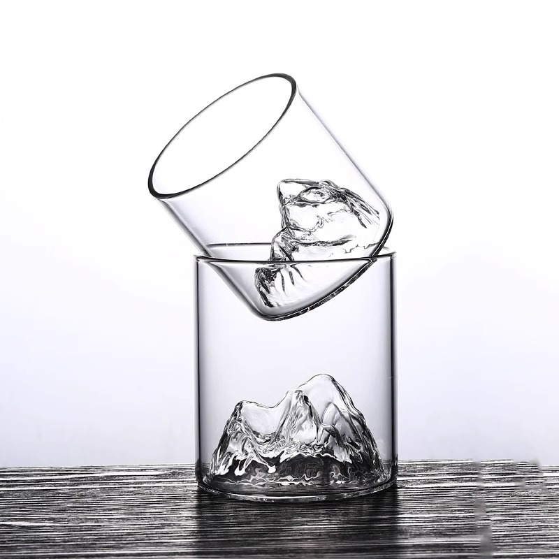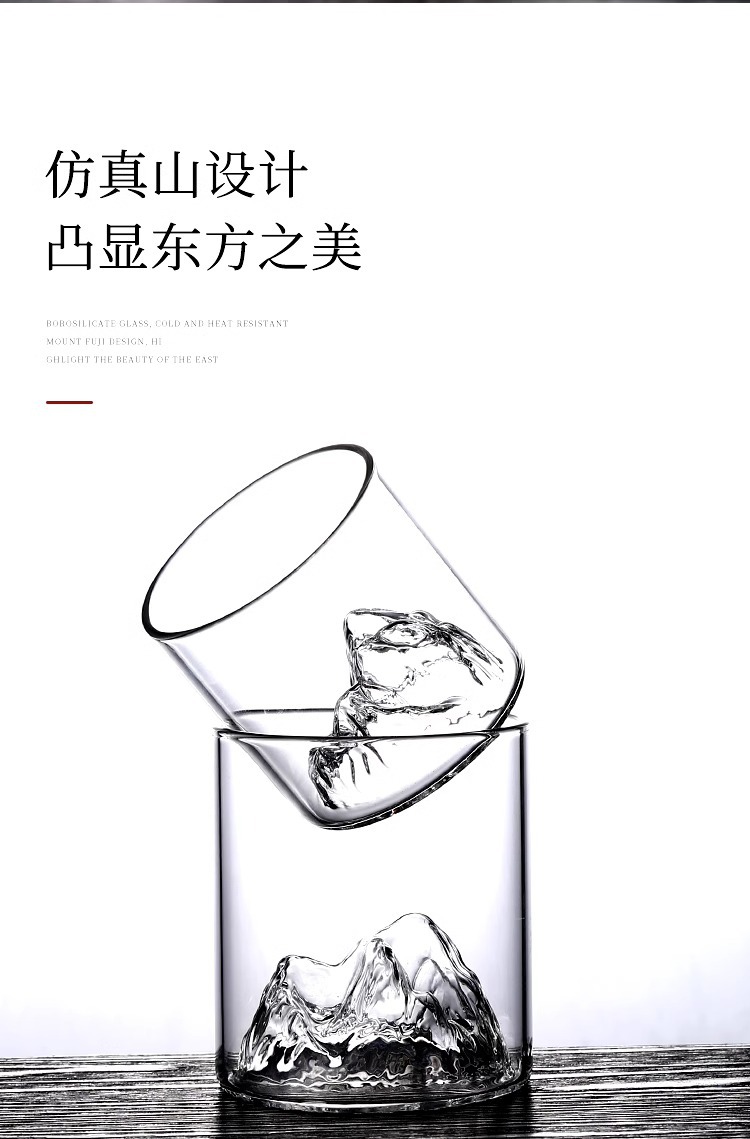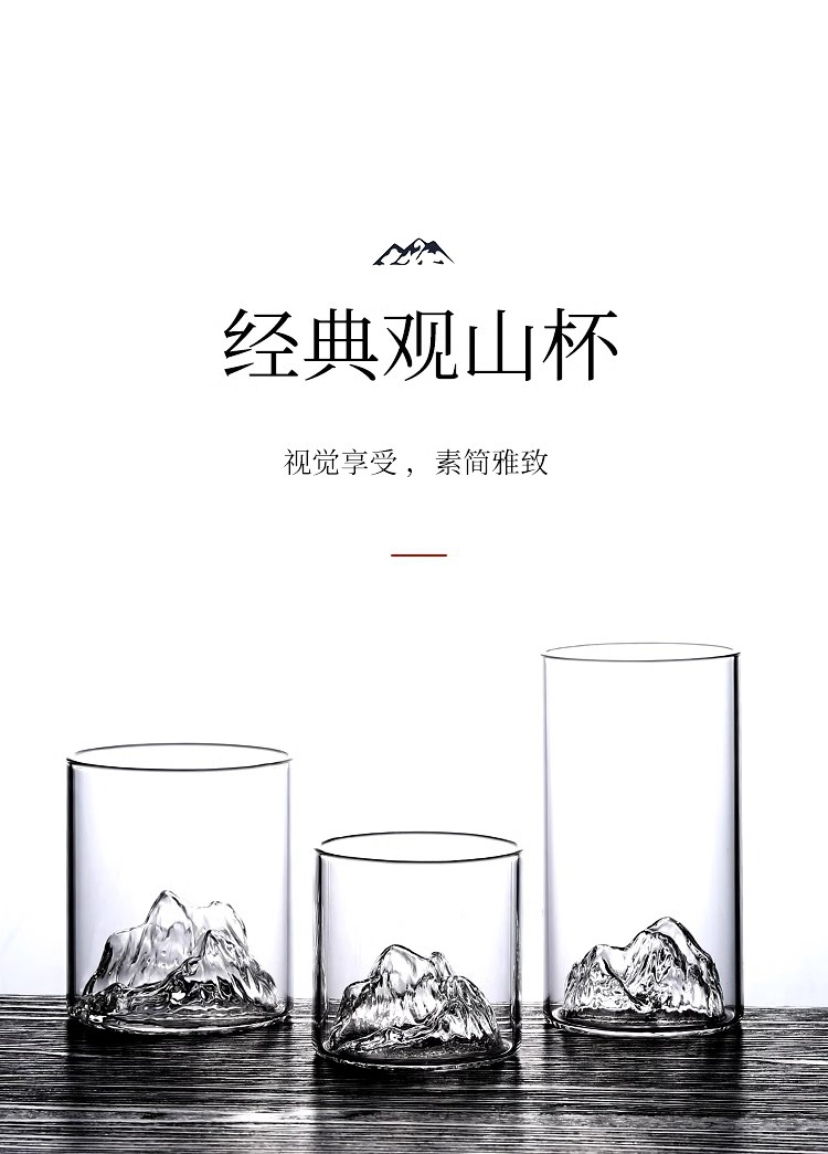 冰山杯玻璃观山杯 家用水杯创意茶杯 复古日式藏山水杯威士忌酒杯