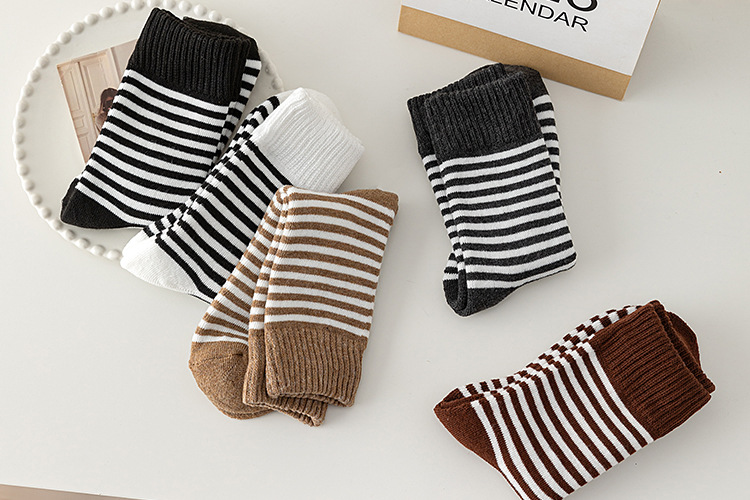 袜子女秋冬爆款女士条纹毛圈袜加绒加厚网红款日系中筒袜诸暨袜子