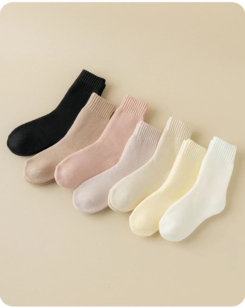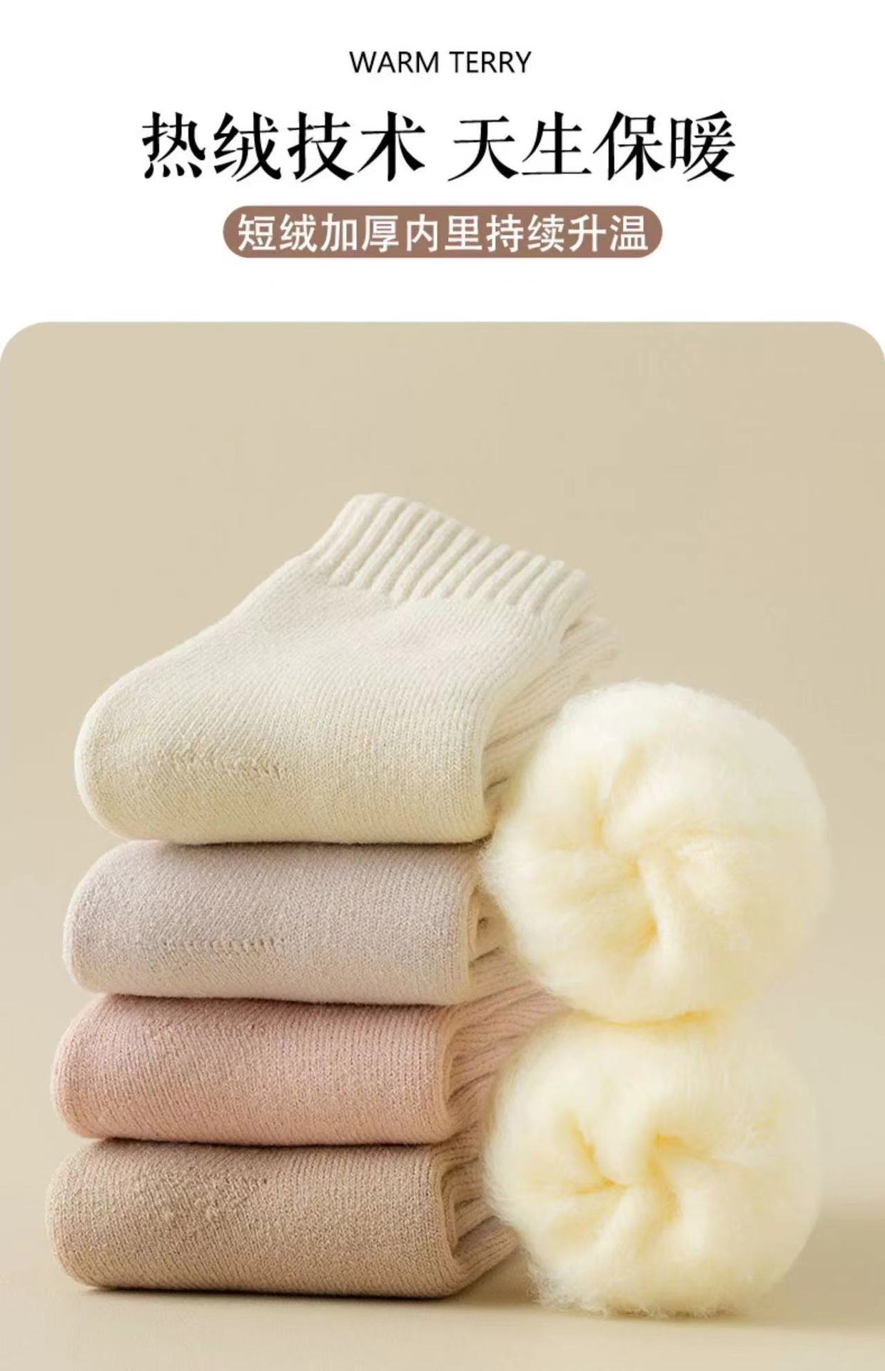 袜子女秋冬加绒加厚羊毛袜保暖舒适软糯中筒羊绒袜超厚简约毛圈袜