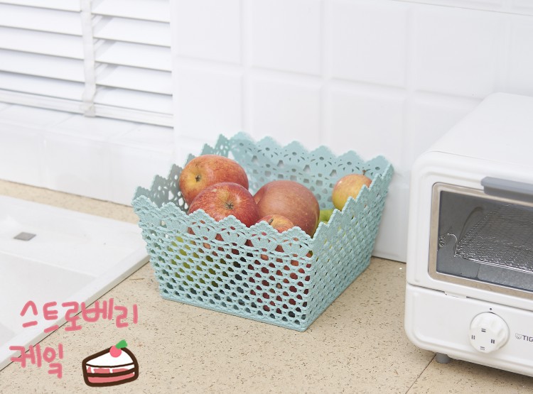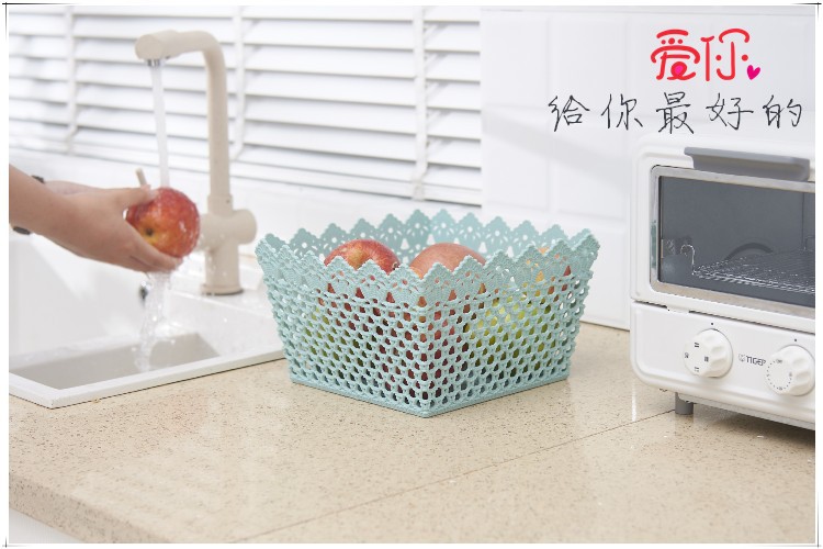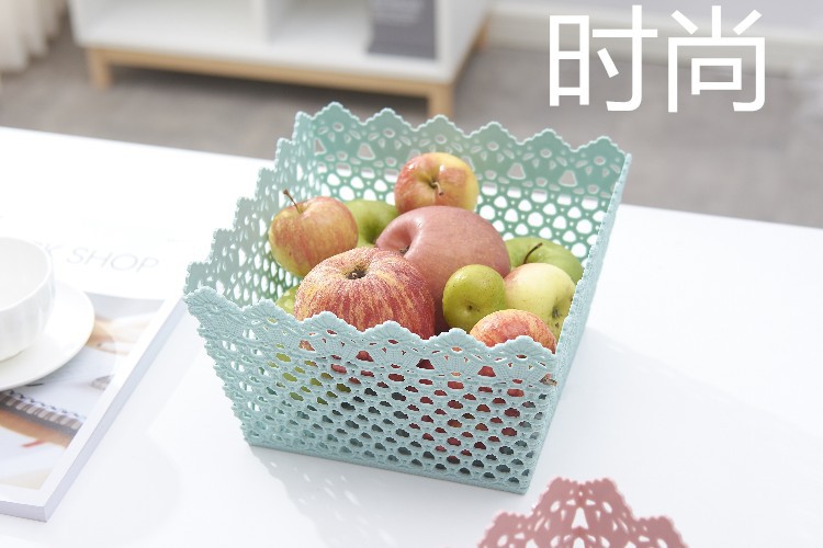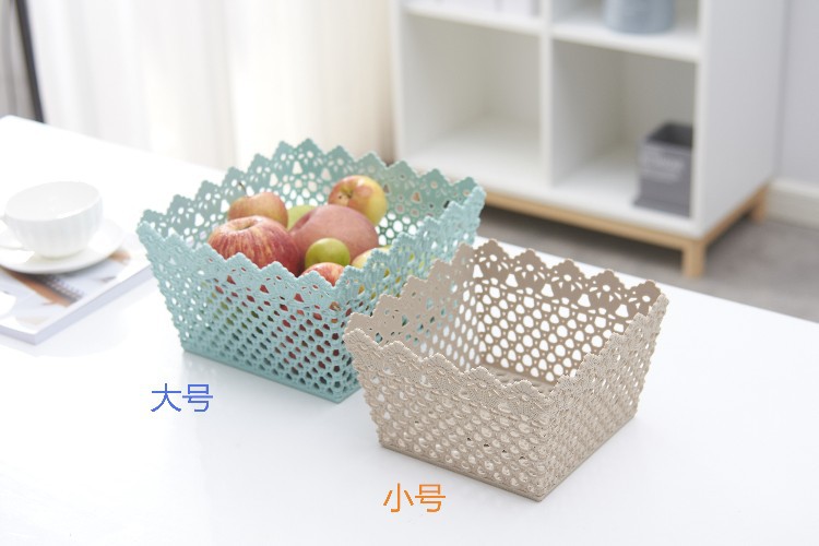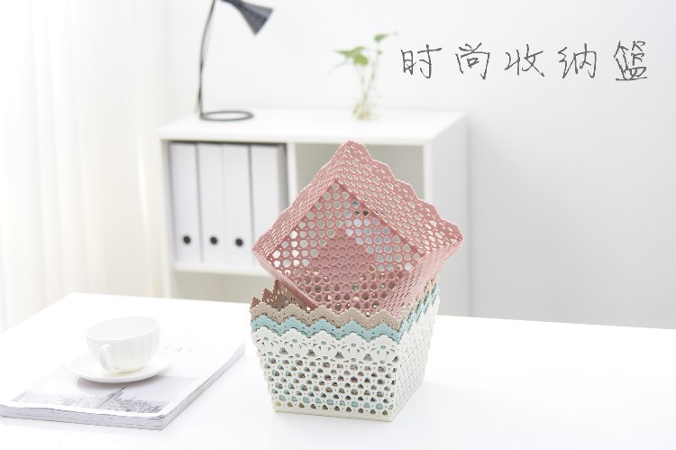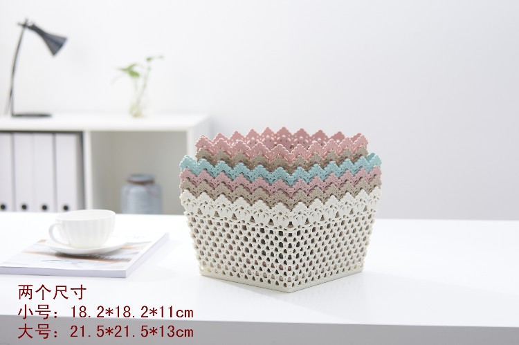 正方形塑料收纳框 置物篮 整理架镂空仿藤编收纳篮