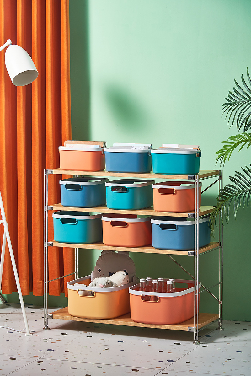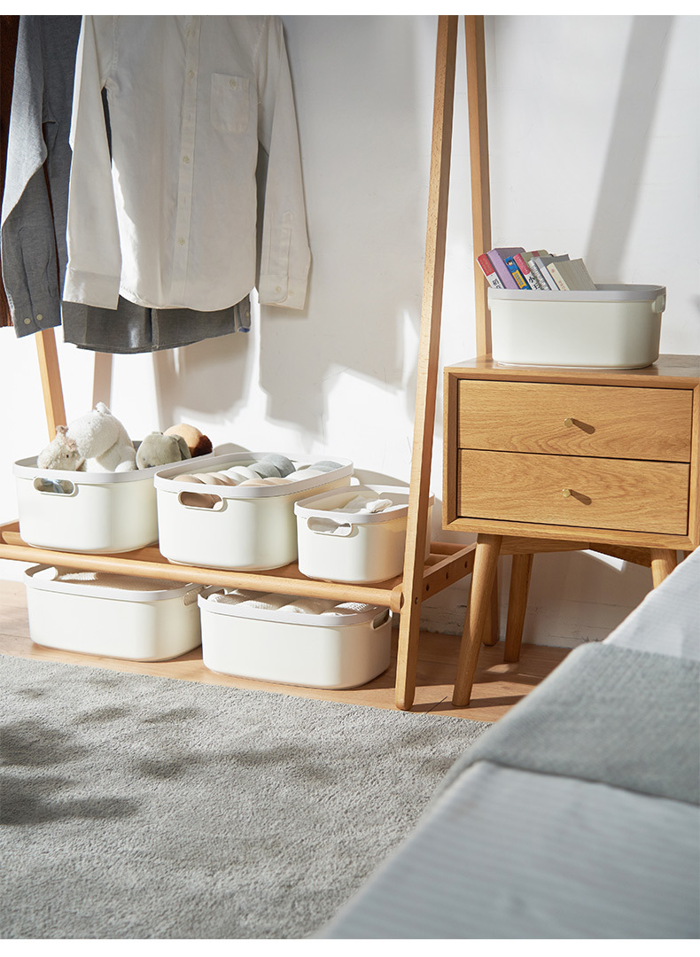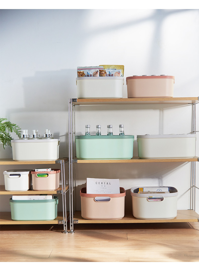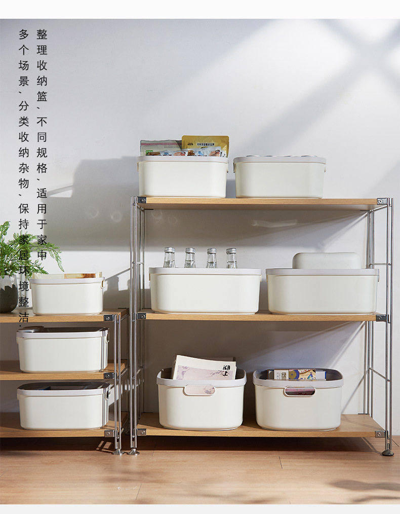 防尘整理盒子零食储物篮杂物桌面收纳压圈大号收纳箱塑料收纳筐