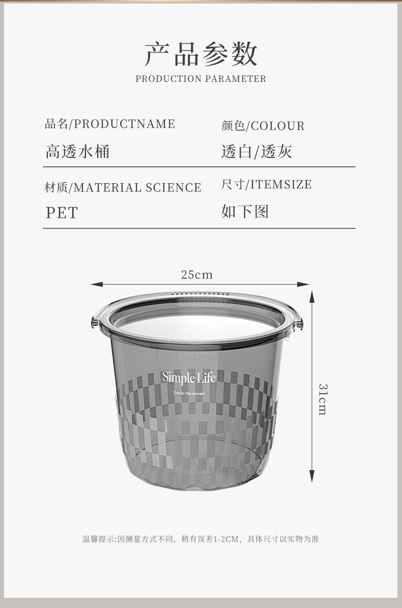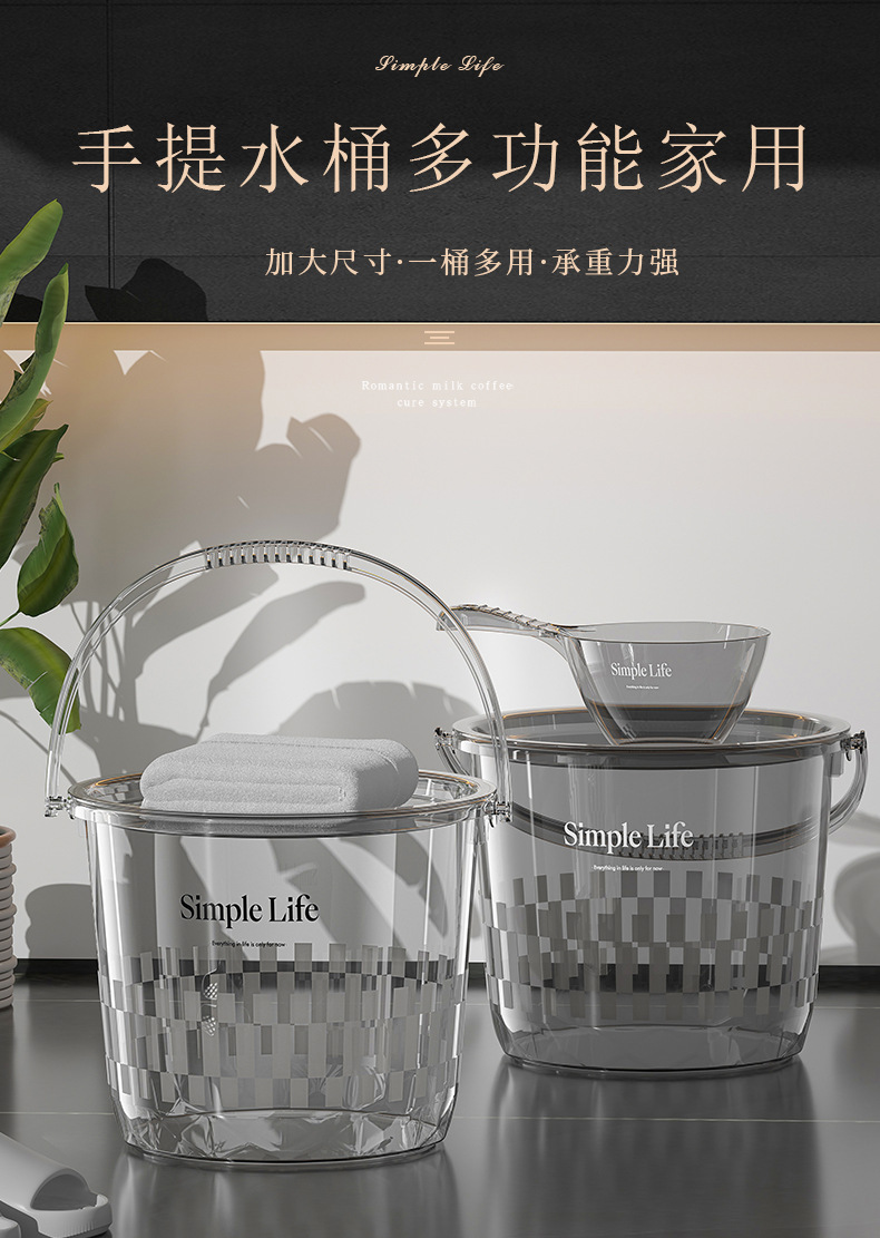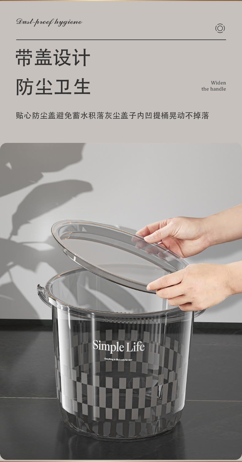 手提小水桶学生宿舍用轻奢透明带盖水桶家用储水用加厚塑料桶洗衣