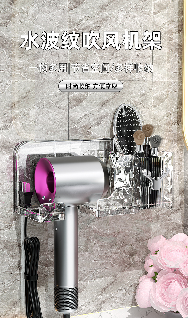免打孔卫生间电吹风挂架浴室壁挂式支架收纳神器透明水风机置物架