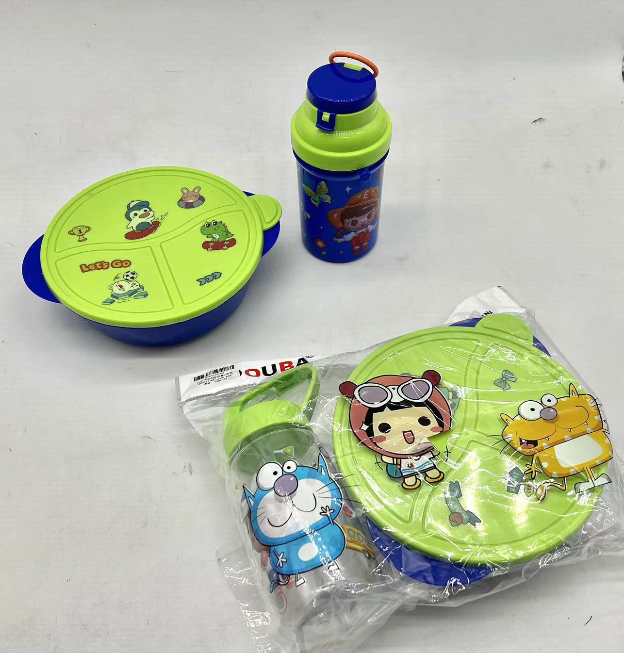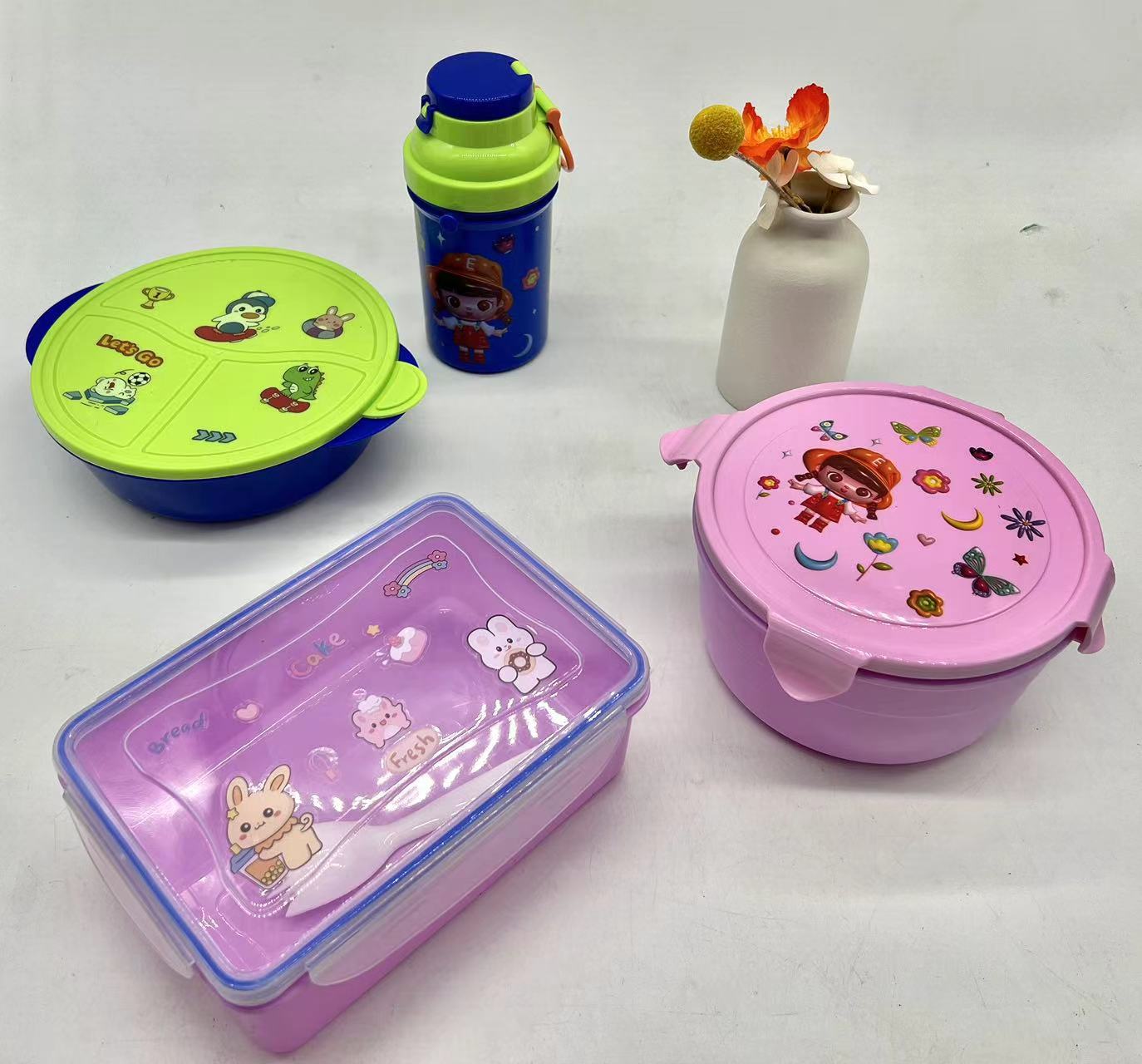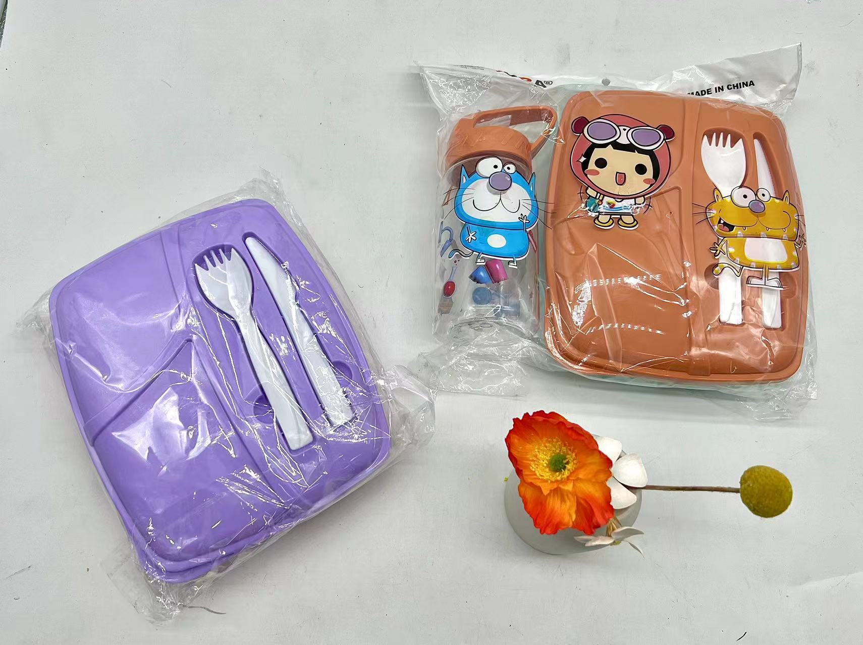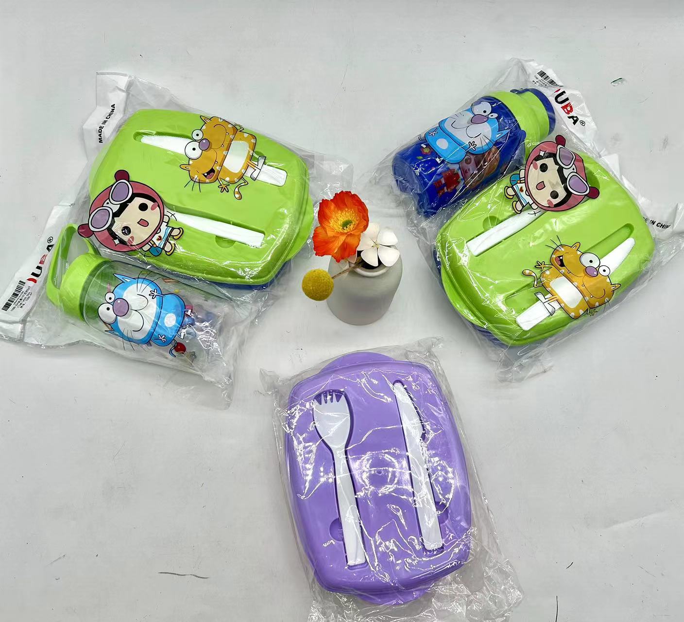 精美彩色塑料饭盒+塑料杯两件套 儿童午餐盒套装