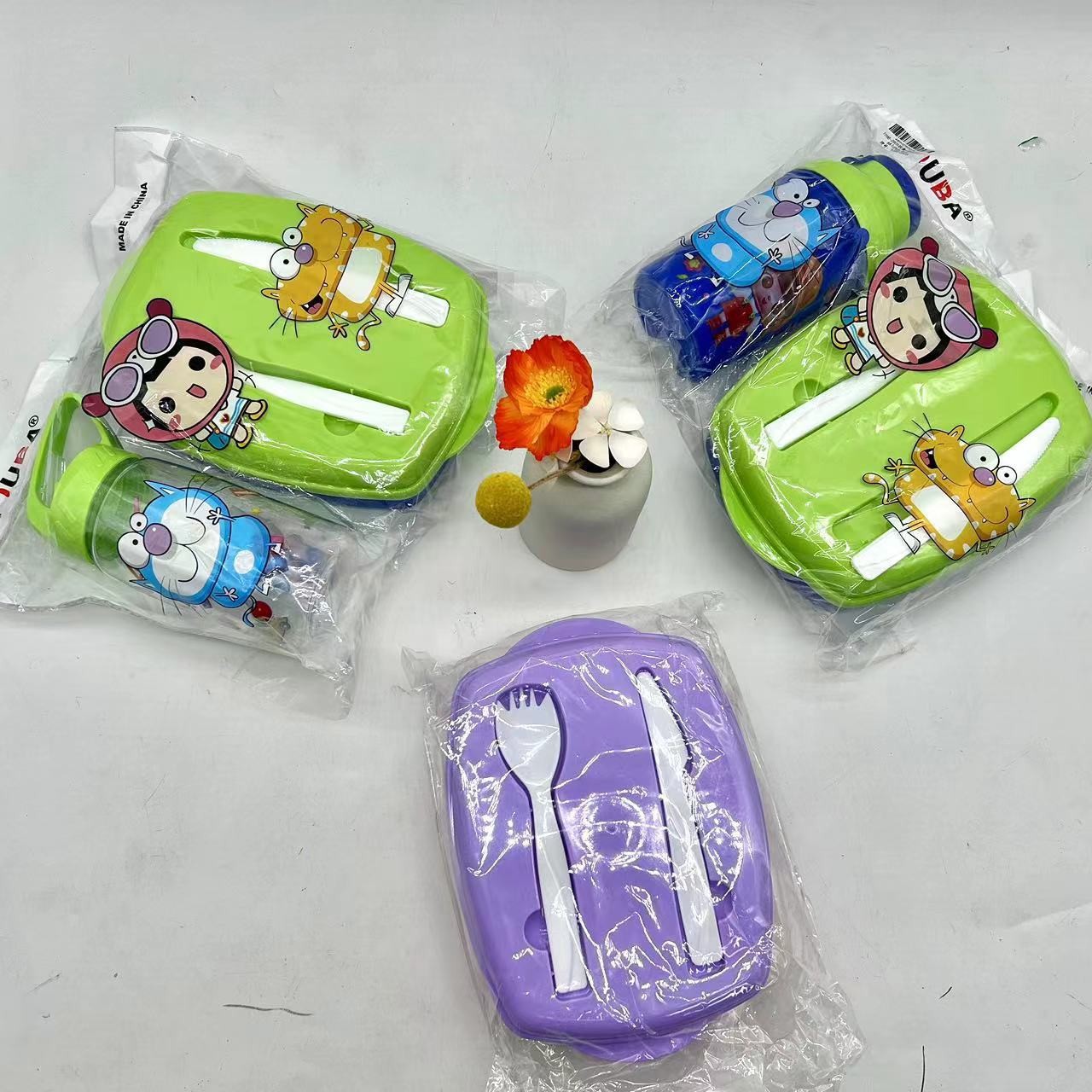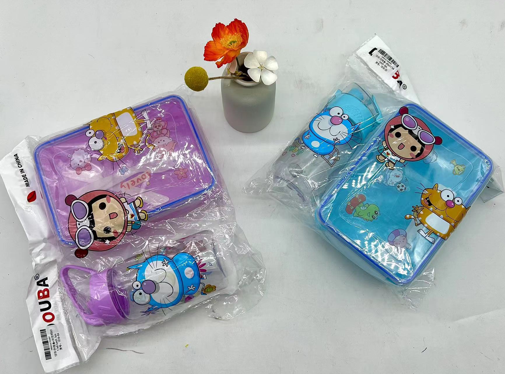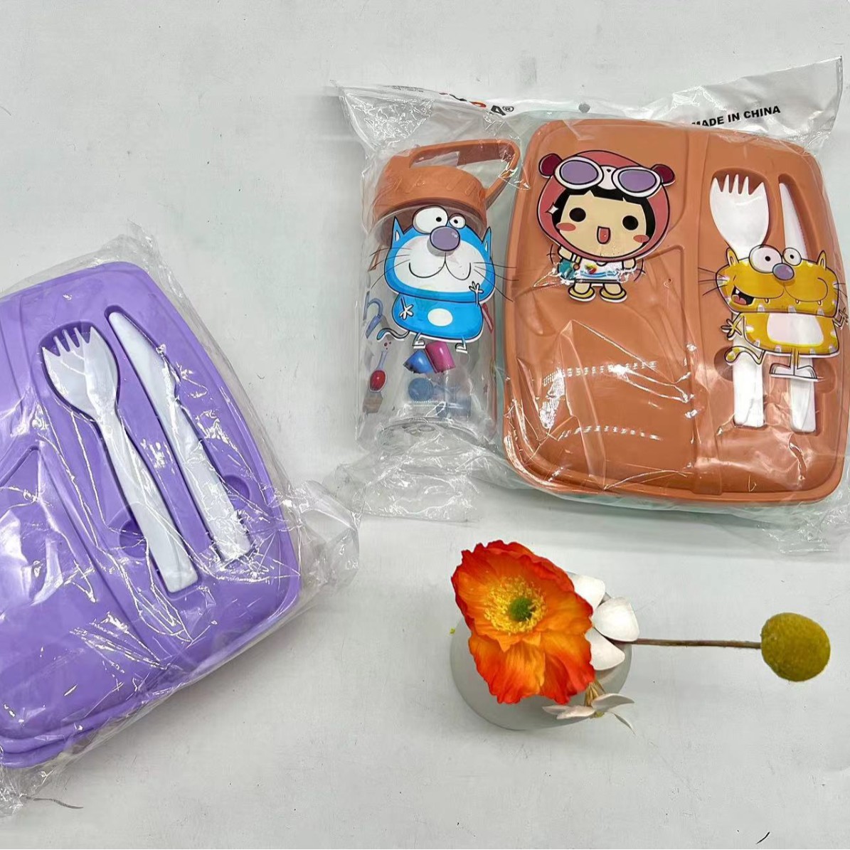 精美彩色塑料饭盒+塑料杯两件套 儿童午餐盒套装