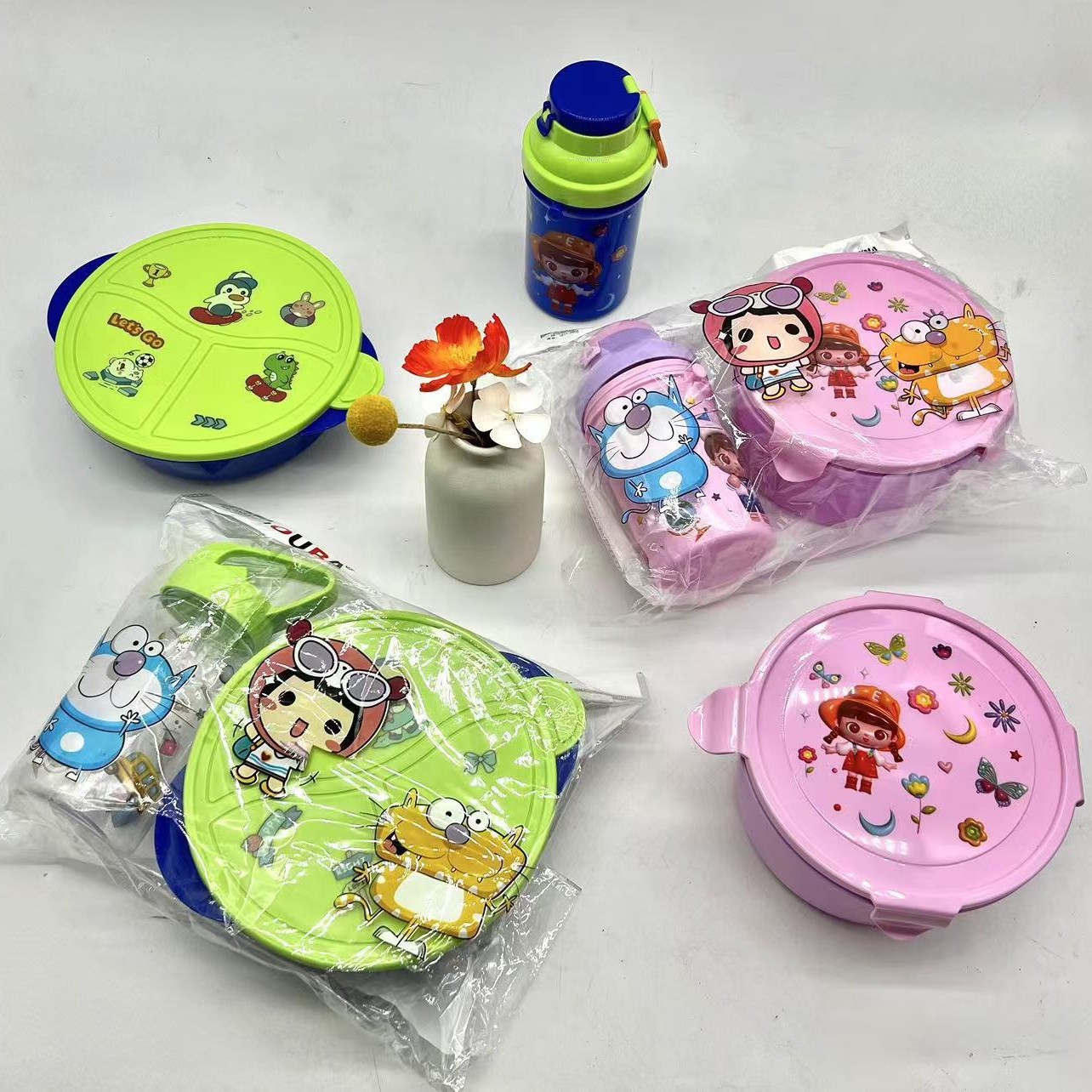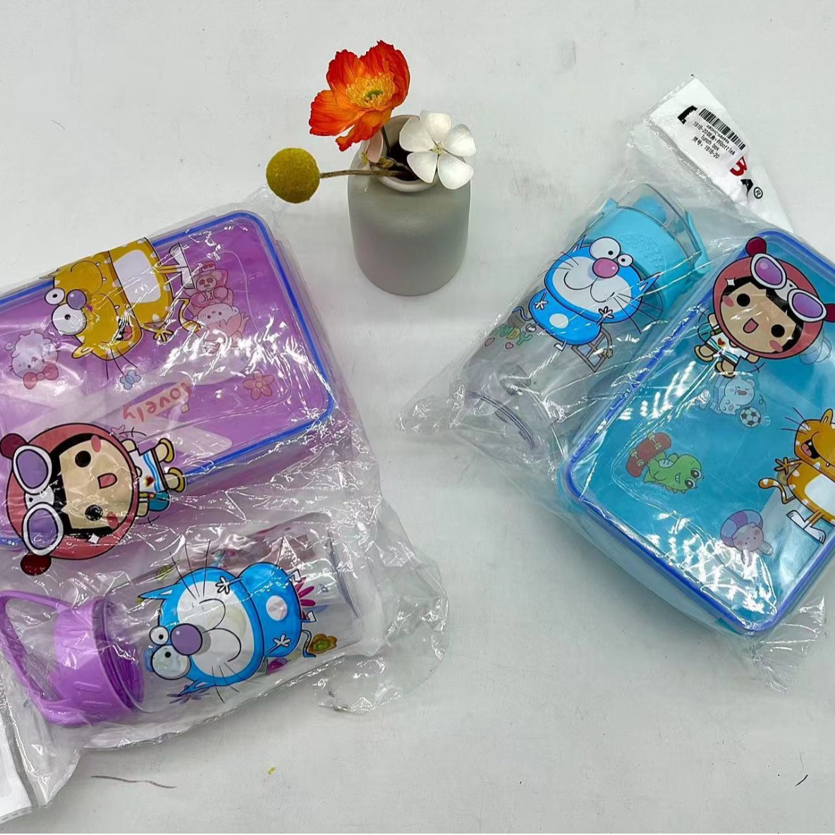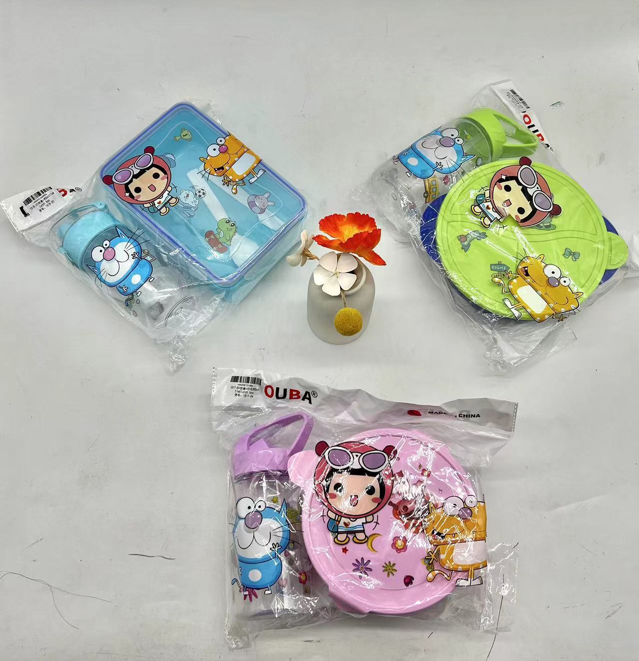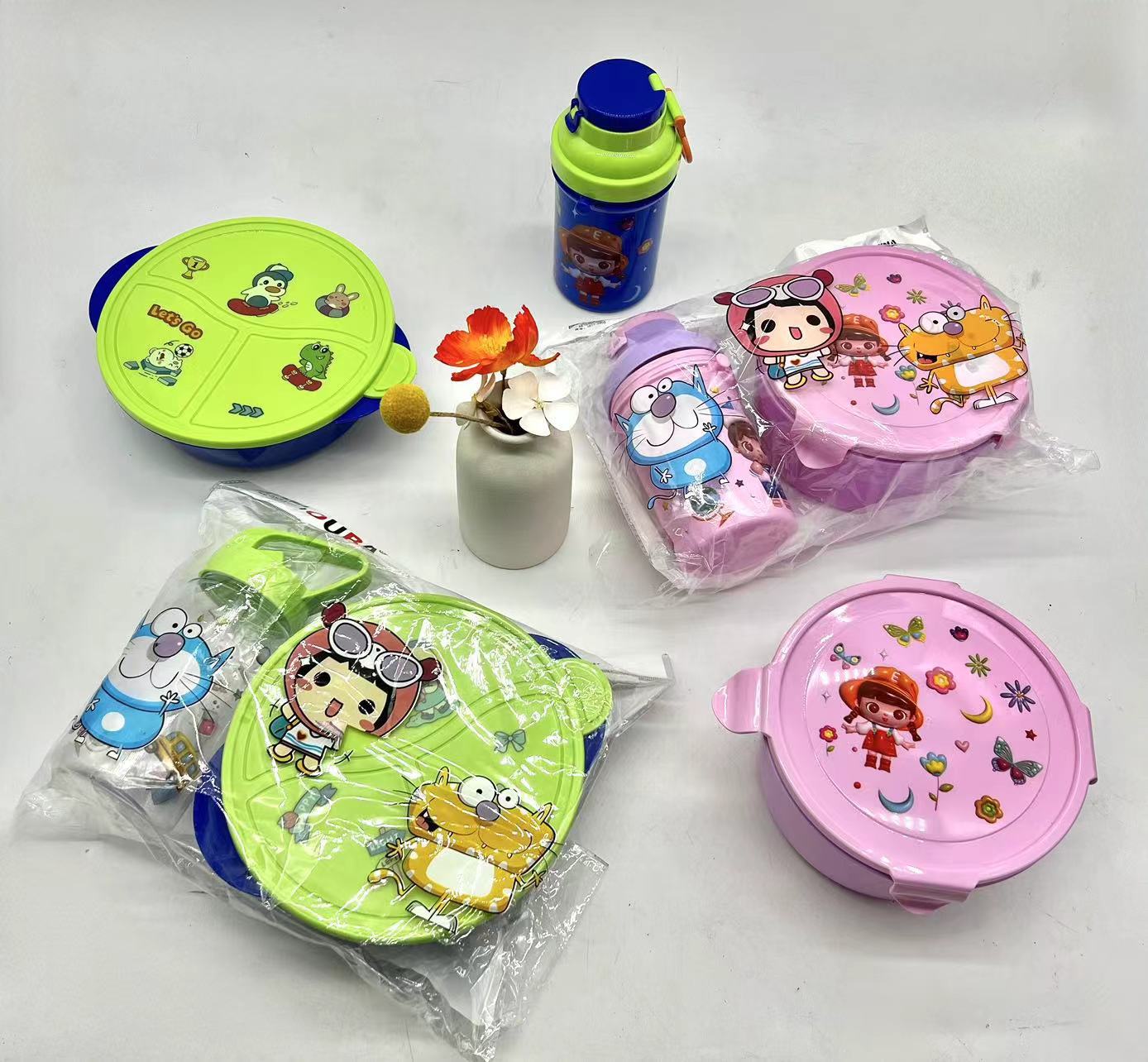 精美彩色塑料饭盒+塑料杯两件套 儿童午餐盒套装