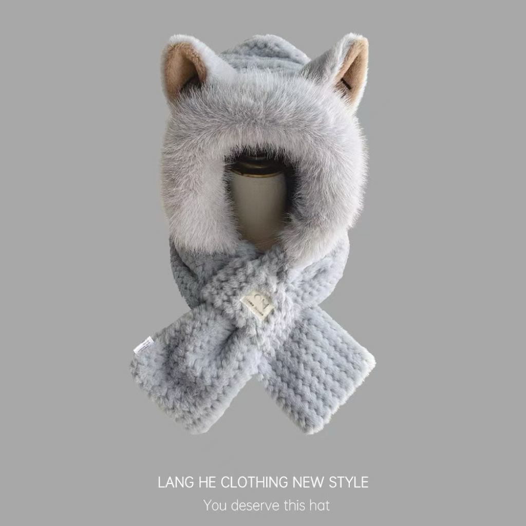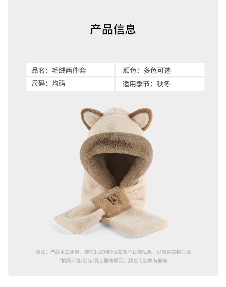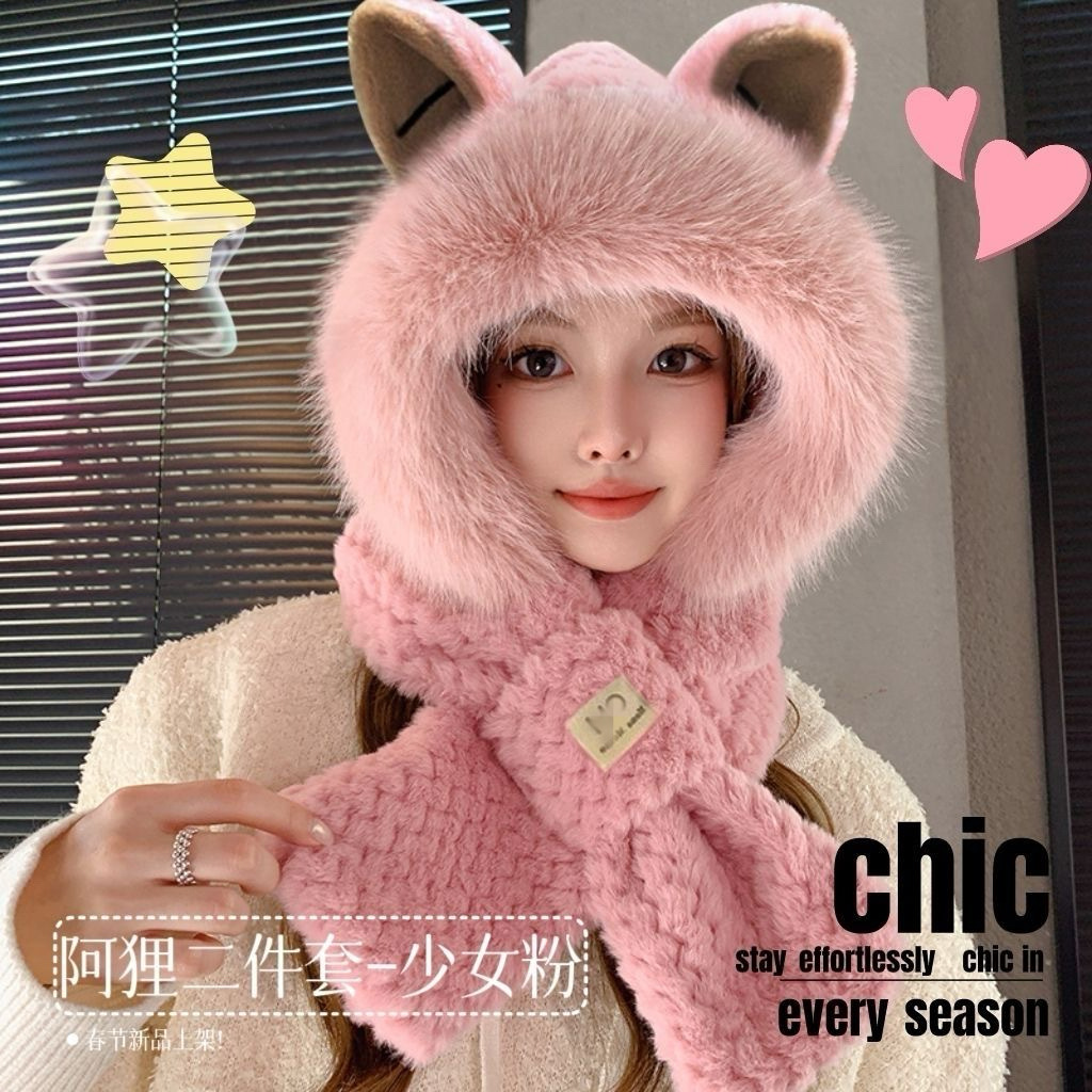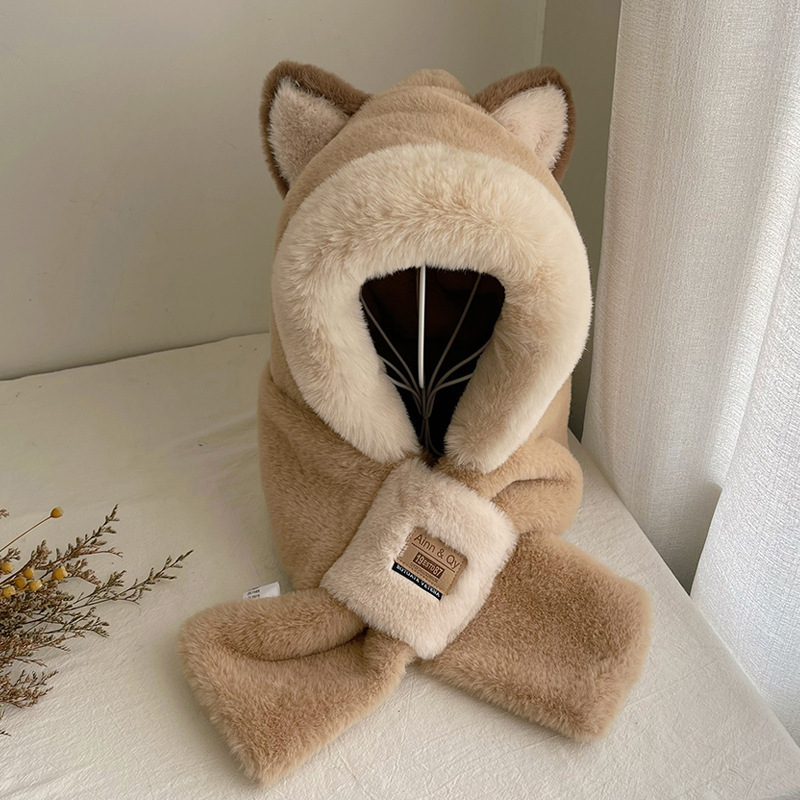 帽子围巾一体女冬季百搭可爱毛绒帽保暖冬天加厚防冻防风连帽围脖