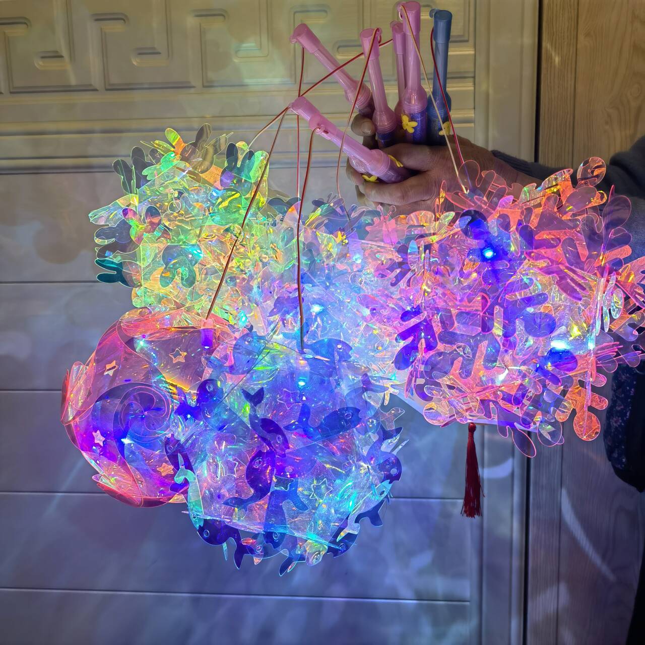 灯笼diy儿童镭射炫彩花灯夜市手提网红发光新年过年玩具摆摊批发