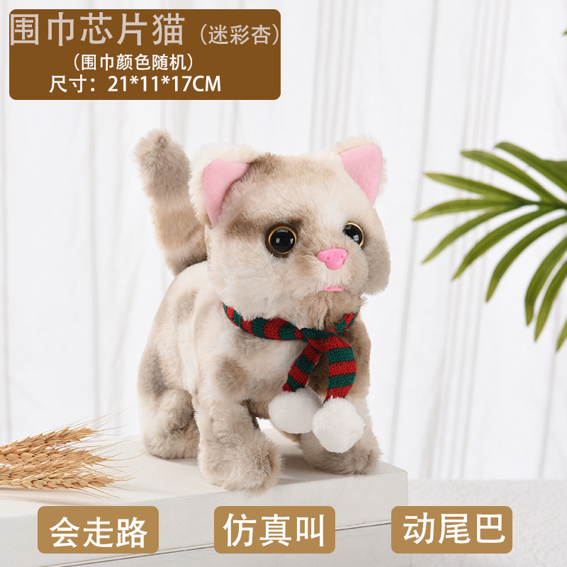 毛绒电动猫咪仿真猫咪玩具仿真叫声玩偶会走路摇尾巴电子宠物小猫