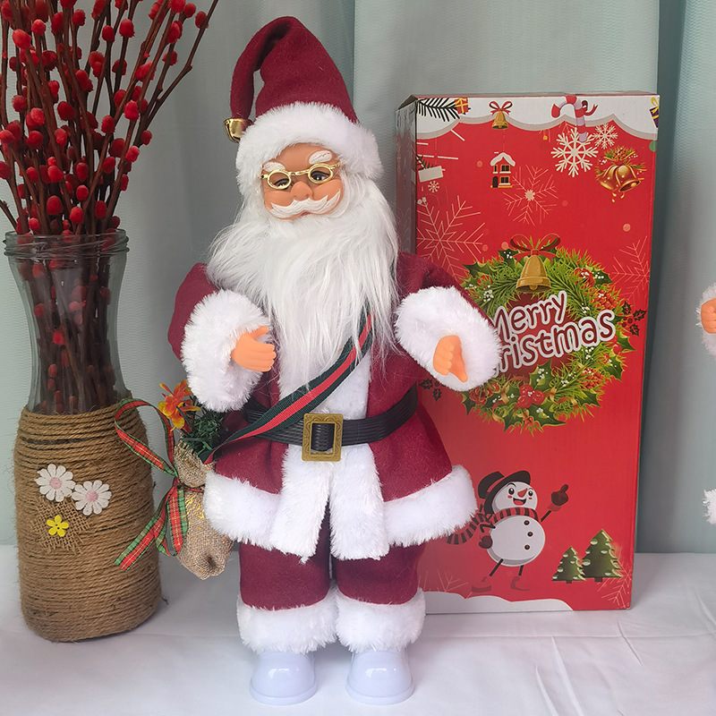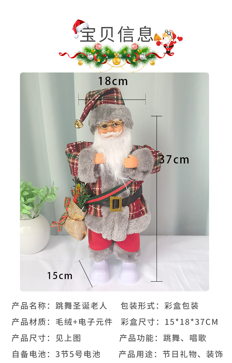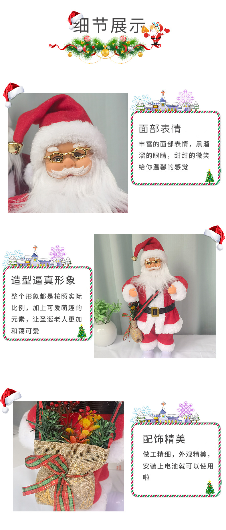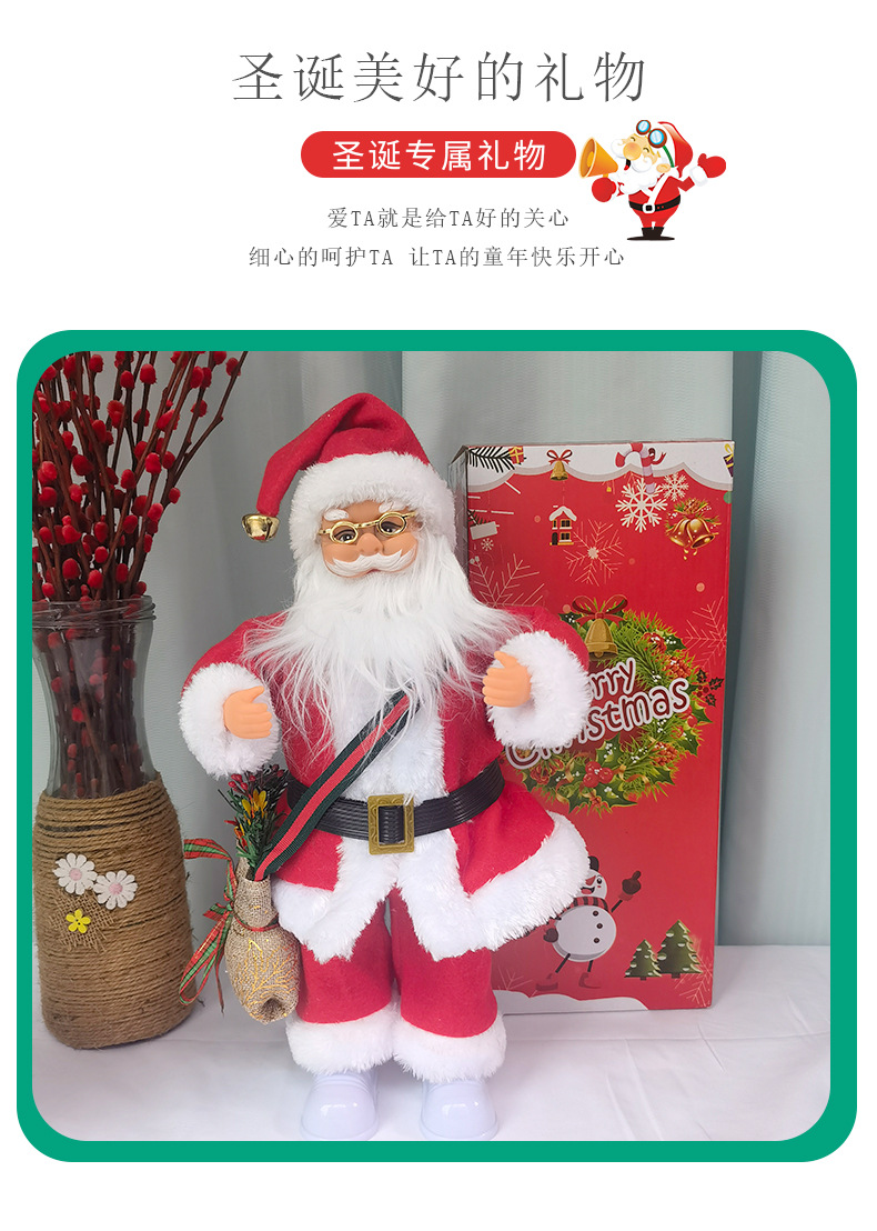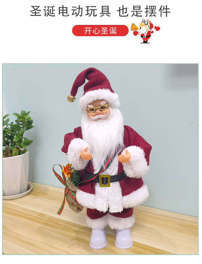 新款圣诞节公仔玩具装饰用品电动圣诞老人带灯会唱歌跳舞橱窗装饰