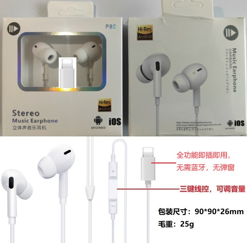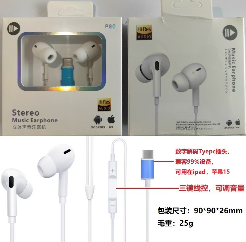 有线耳机适用苹果三代华为Typec数字入耳式圆头线控调音通用耳机