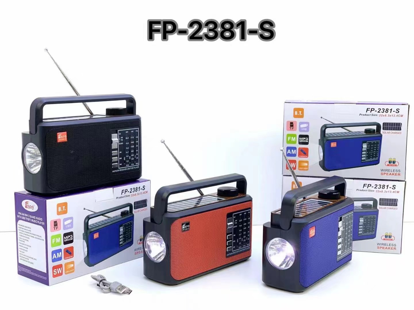 FP-2381-S 无线蓝牙音响太阳能手提便携插卡收音机照明低音炮音箱