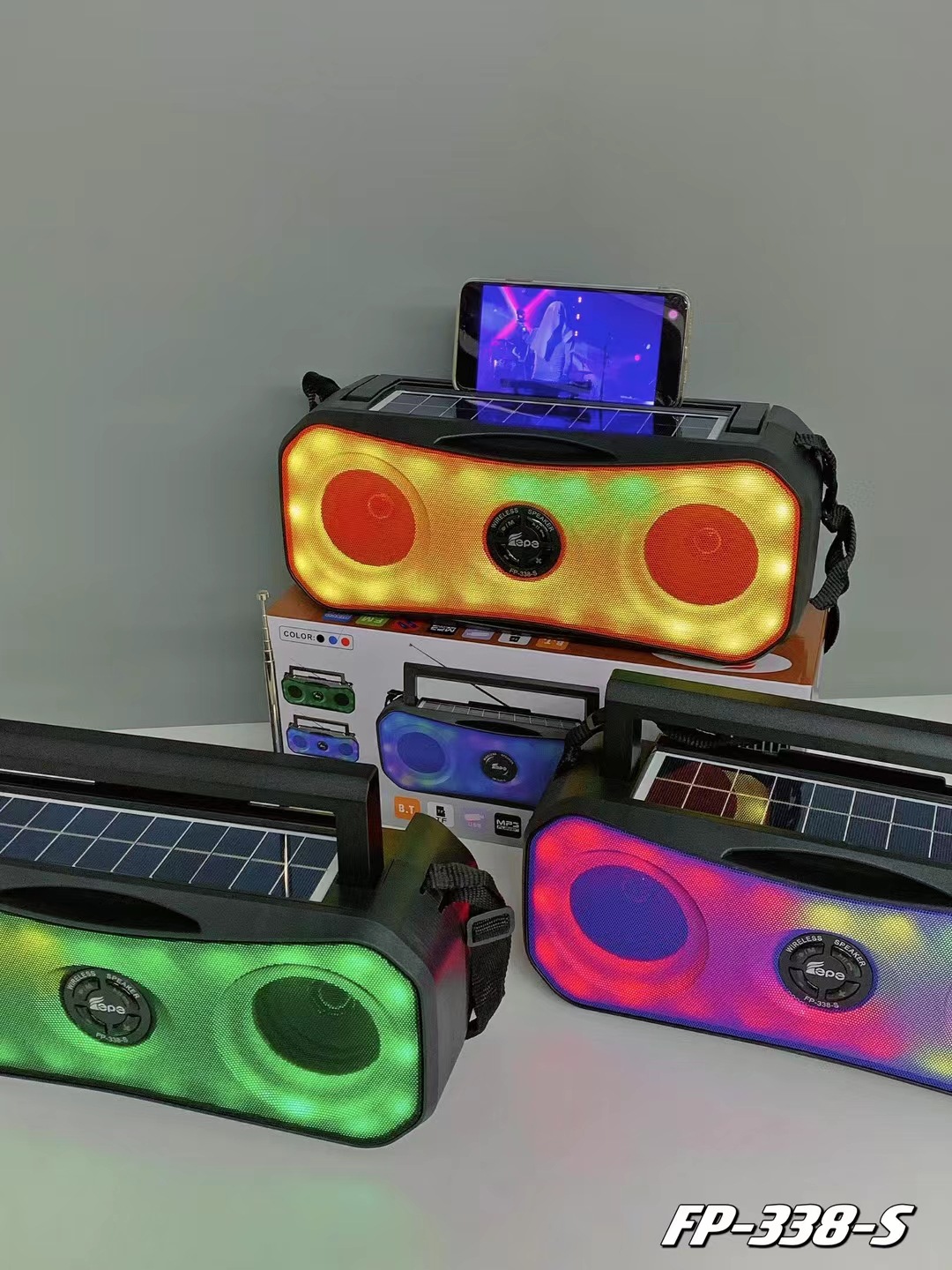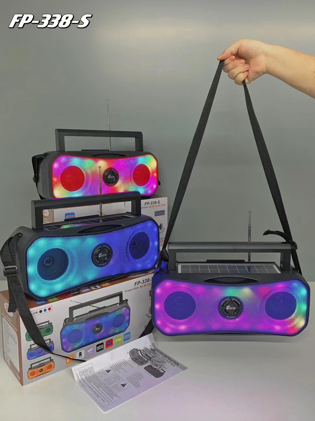 新款FP-338-S太阳能蓝牙音箱手提RGB灯户外便携bands radio收音机