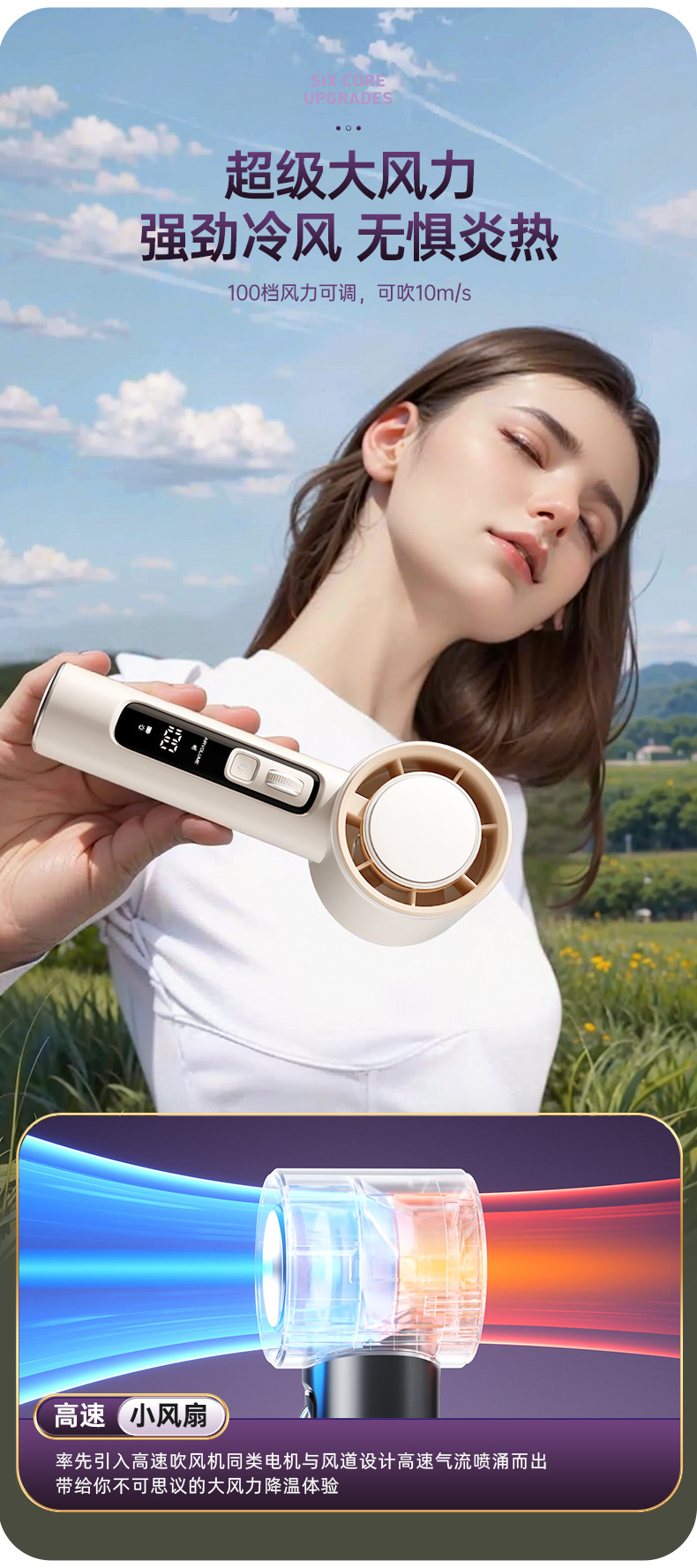 新款100档高速手持风扇usb迷你便携式充电涡轮小风扇桌面小电风扇
