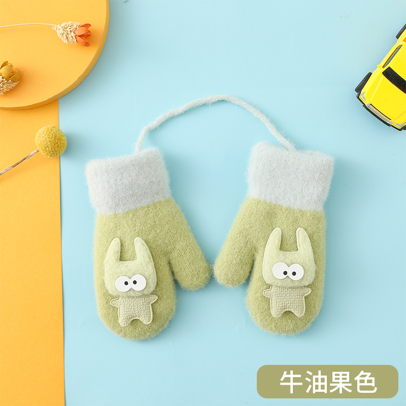 厂家冬季连指卡通可爱加厚加绒防寒保暖挂脖男女童针织儿童手套