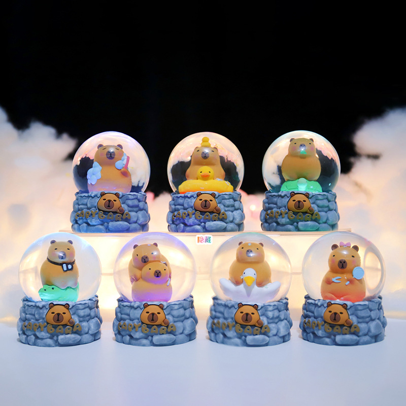 卡皮巴拉水晶球盲盒发光玻璃小水球卧室装饰品桌面摆件厂家直销