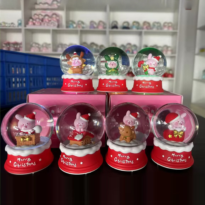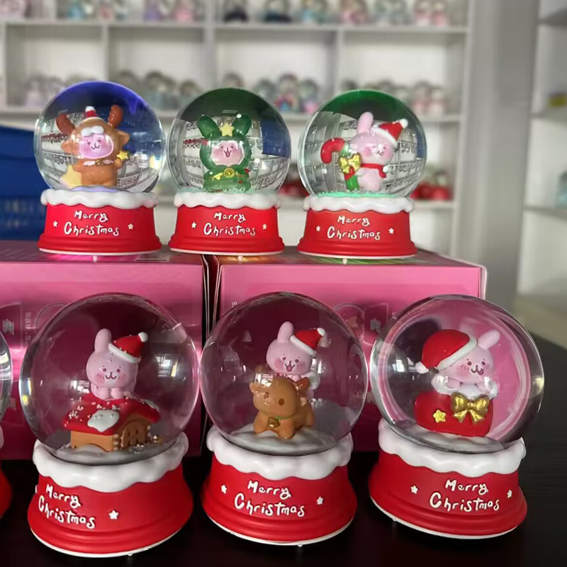 创意卟卟圣诞水晶球盲盒手办创意发光卧室桌面摆件圣诞节礼品批发