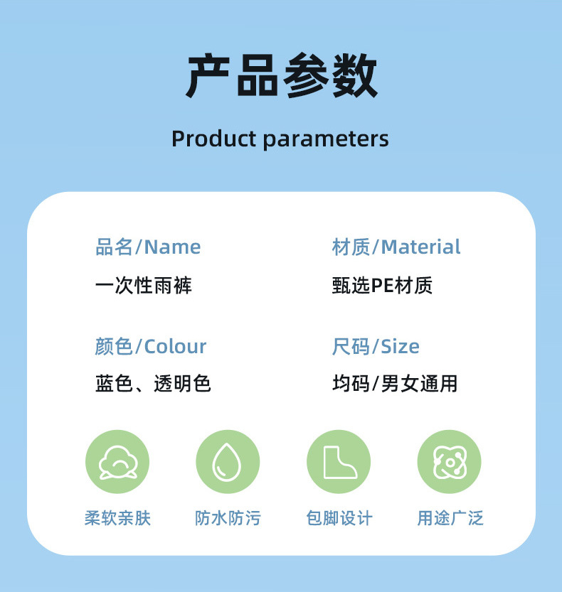 一次性防暴雨雨裤加厚包脚防水户外连脚塑料雨衣套漂流游乐场