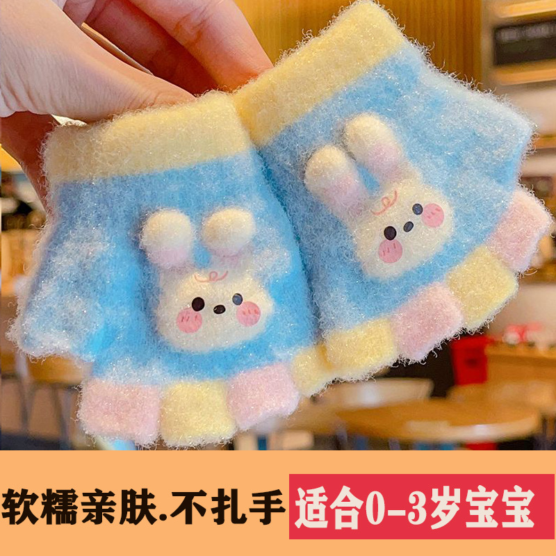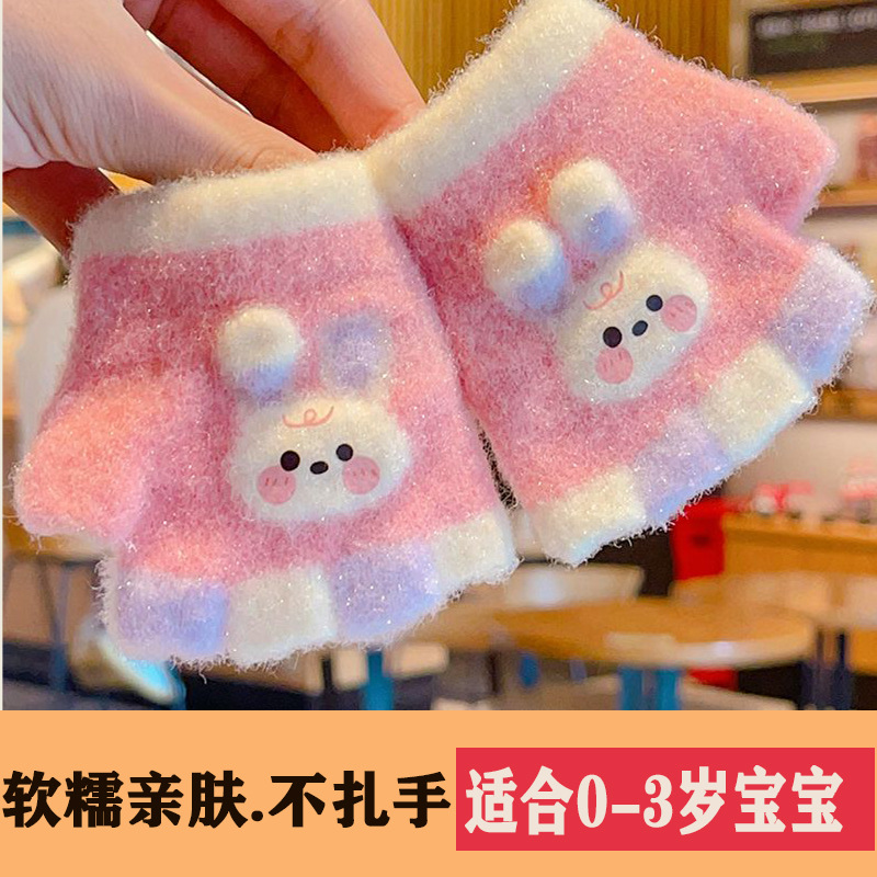 儿童手套宝宝婴儿冬季保暖男女童可爱小孩1-3岁2岁幼儿半指小手套