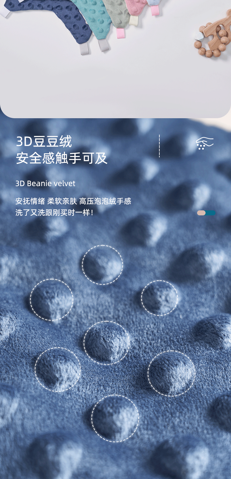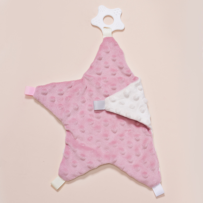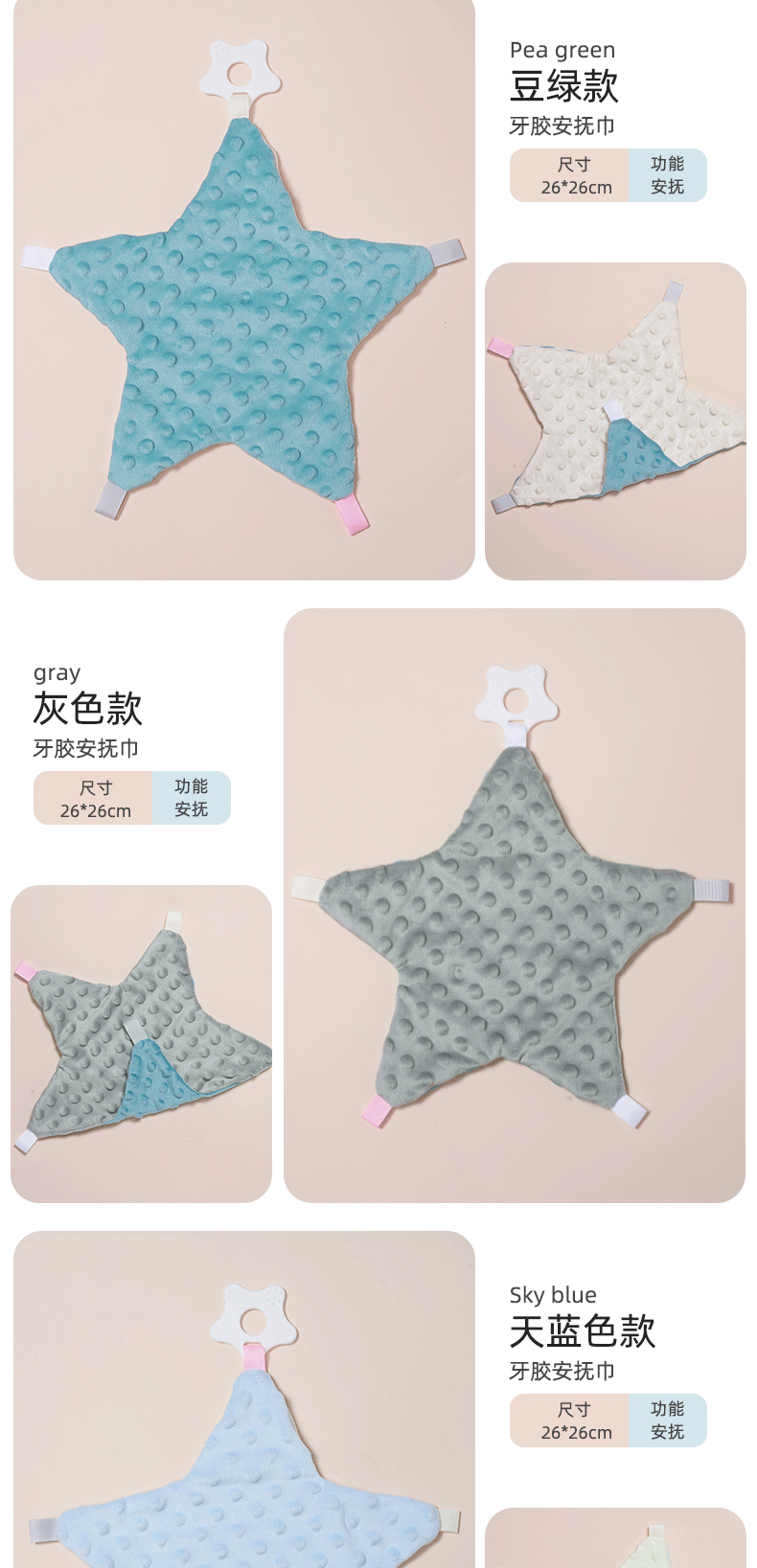 婴儿宝宝豆豆绒安抚巾可入口牙胶睡眠巾新生儿手抓标签星星口水巾