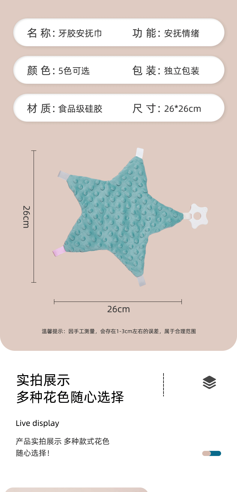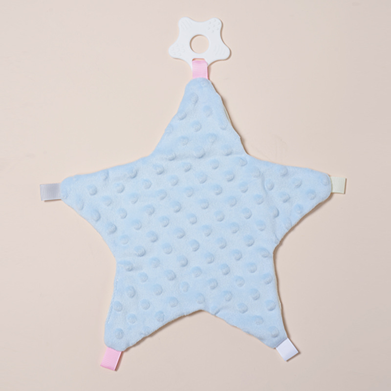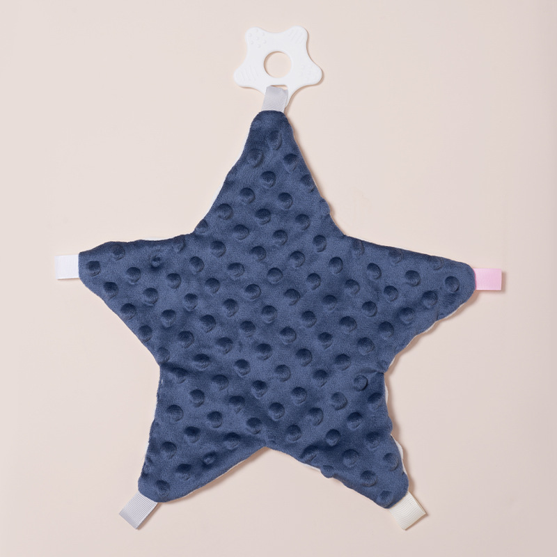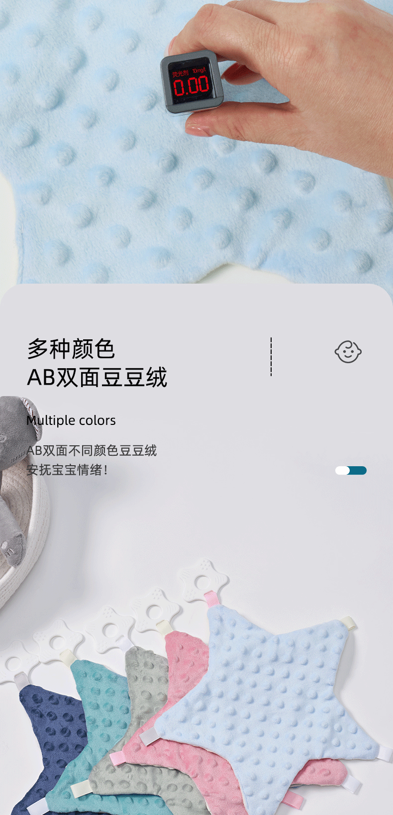婴儿宝宝豆豆绒安抚巾可入口牙胶睡眠巾新生儿手抓标签星星口水巾