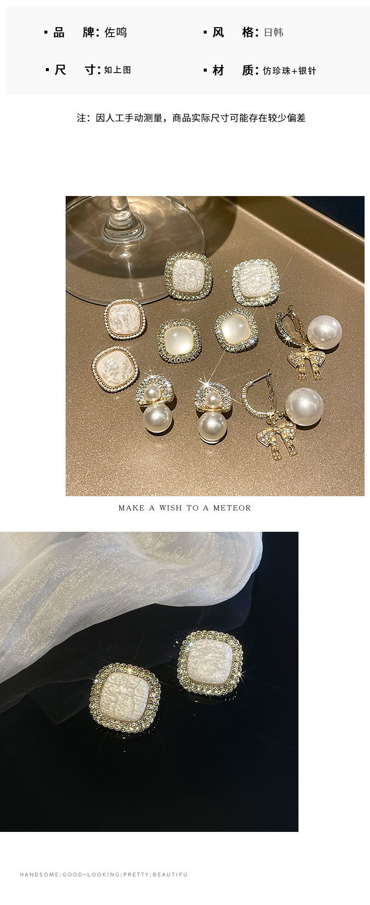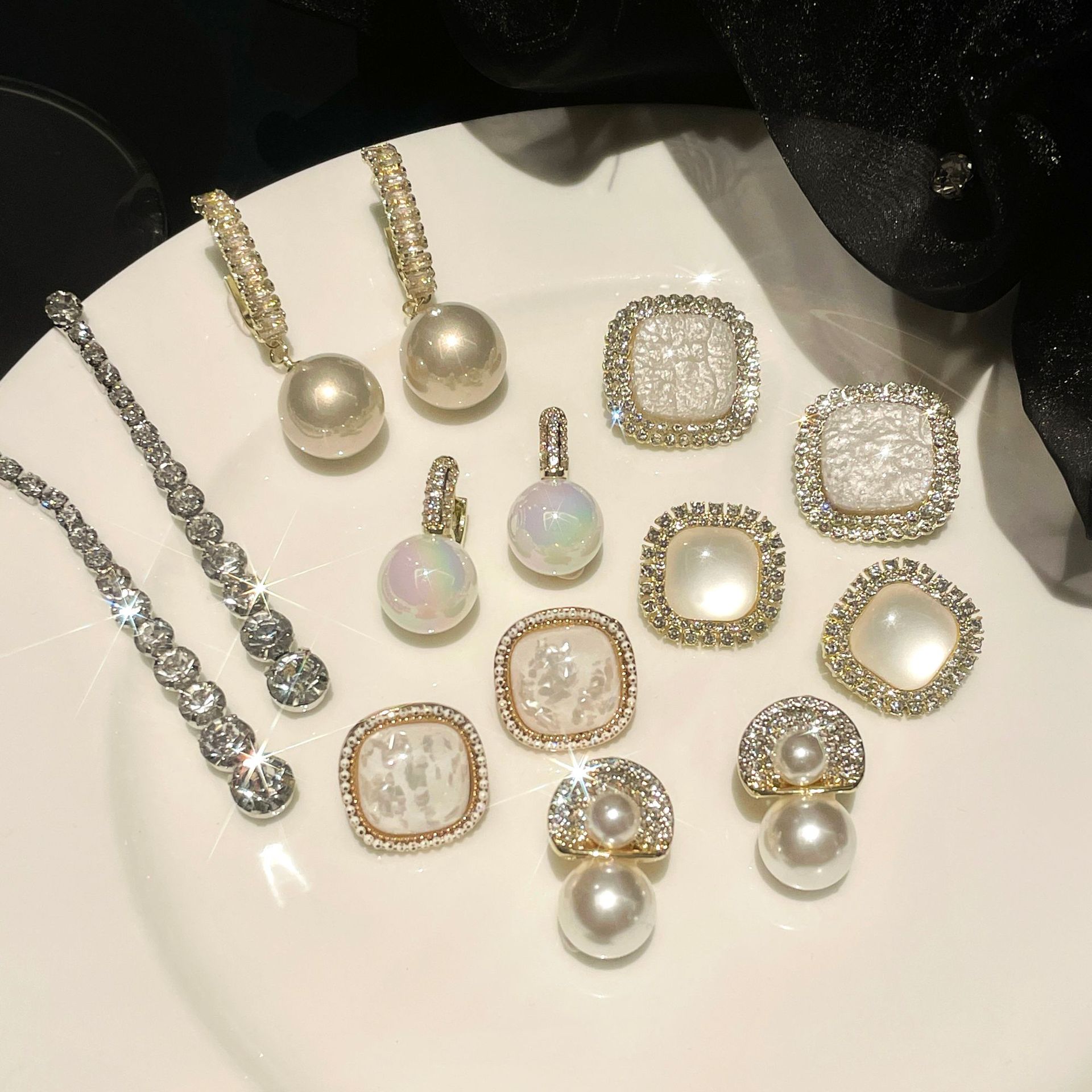 s925银针轻奢高级感珍珠耳环女法式复古时尚耳钉小众百搭耳饰批发