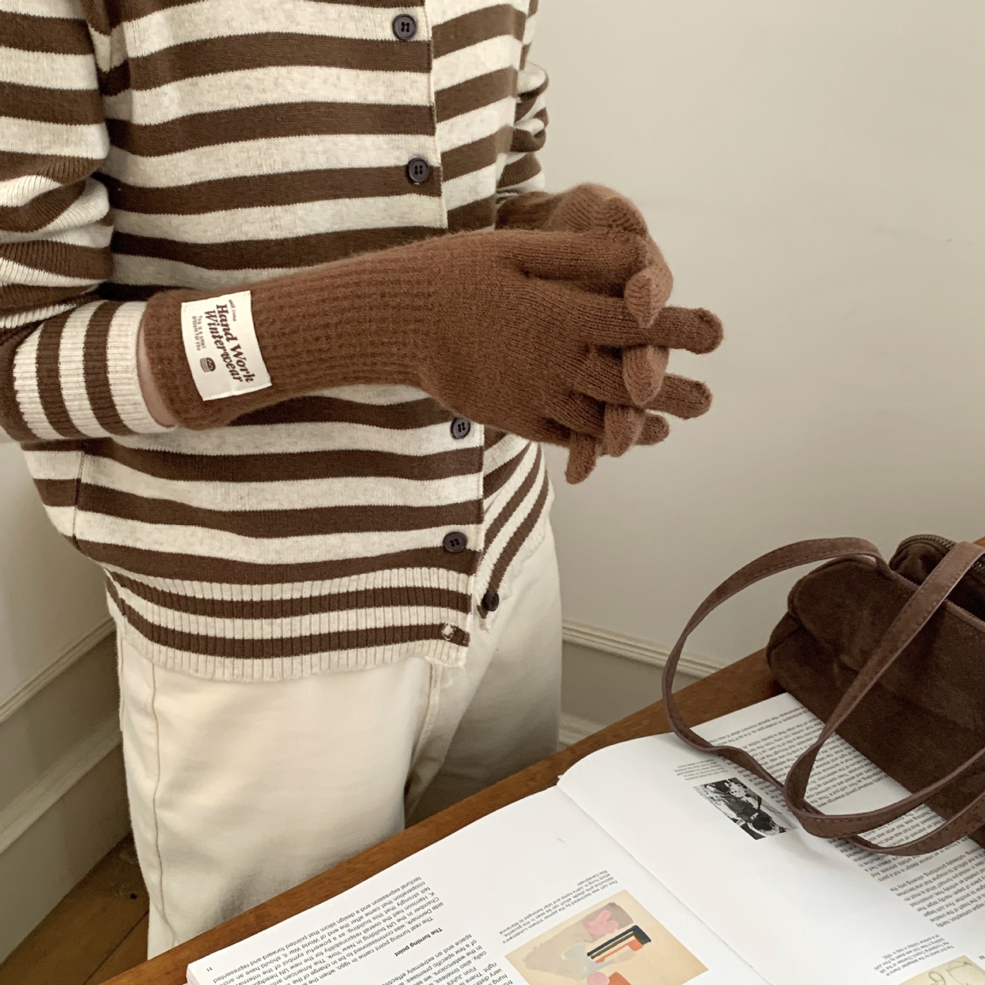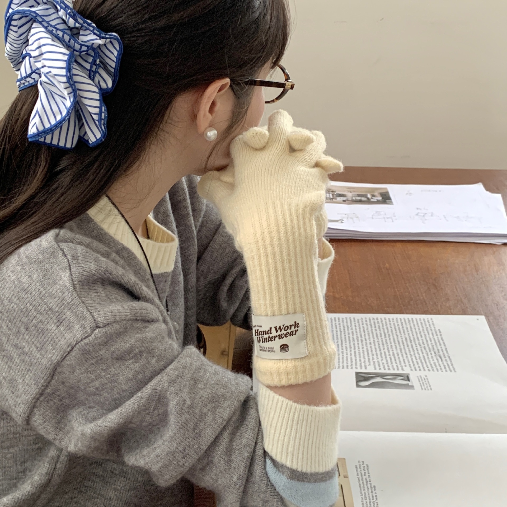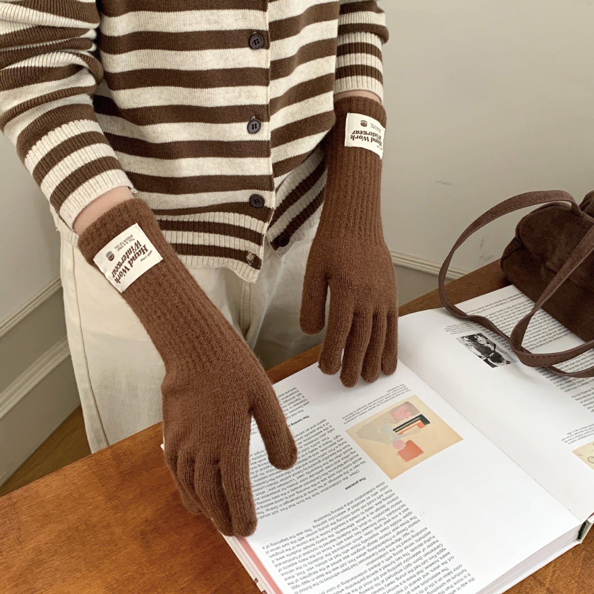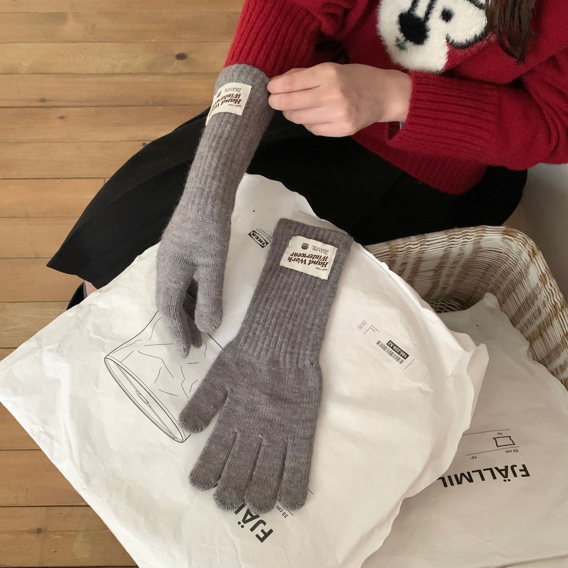 冬季纯色女手套保暖针织长款触屏露指防风五指骑行韩版潮情侣百搭