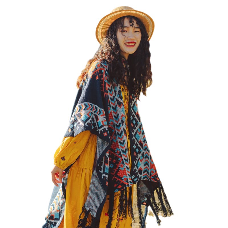 流苏披肩女民族风复古波西米亚云南川藏游玩保暖外搭斗篷外套披风