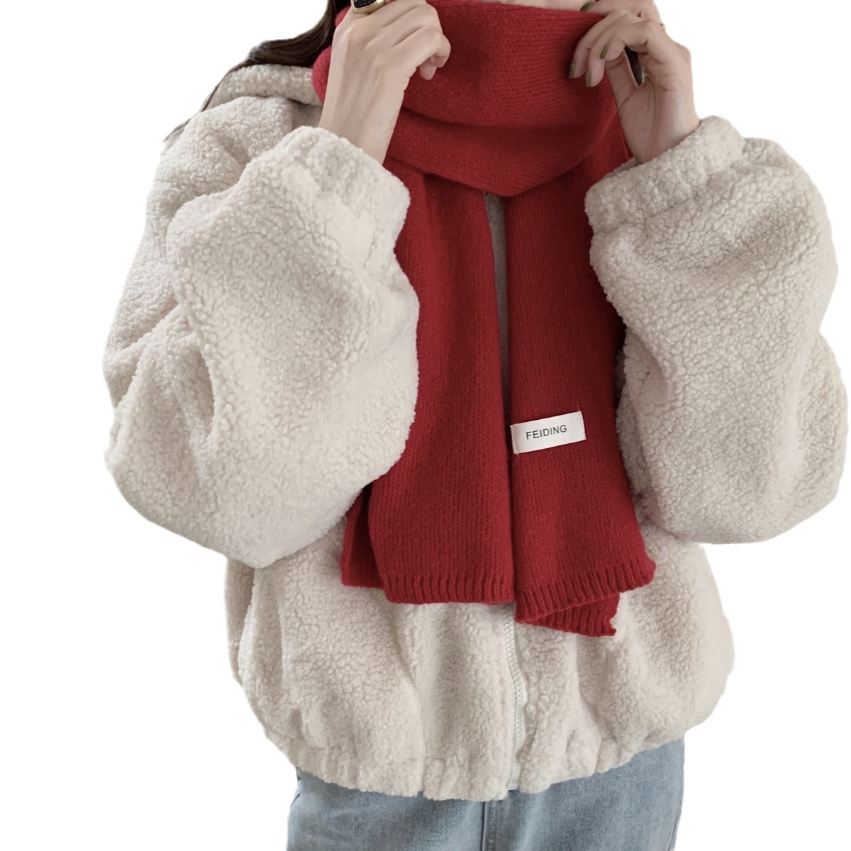 新年红色围巾系列冬季女礼物时尚百搭韩版潮针织毛线加厚保暖围脖