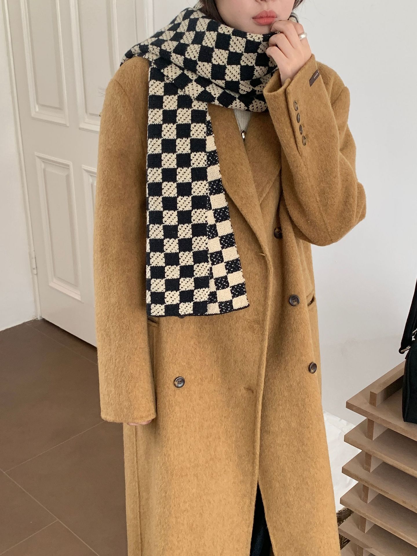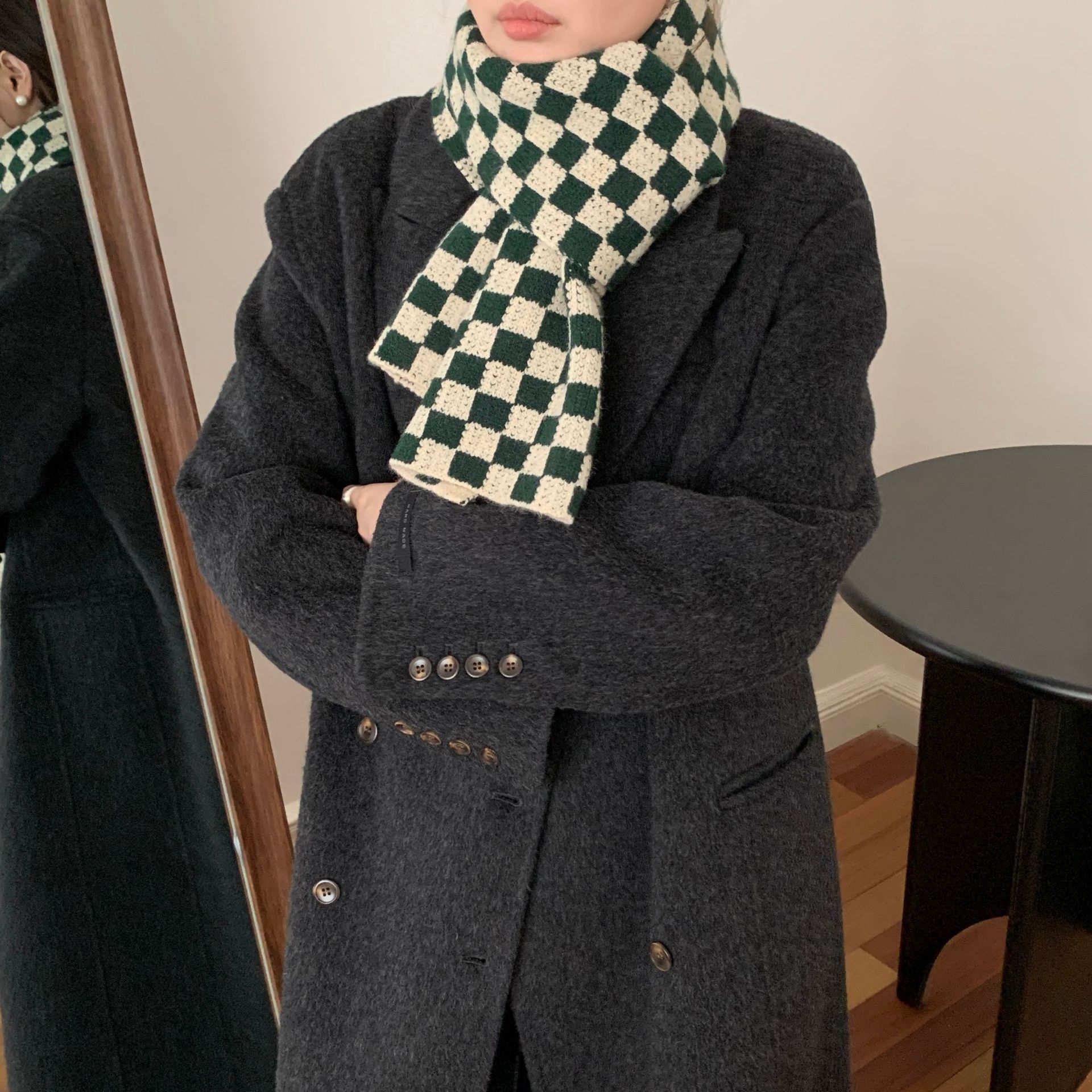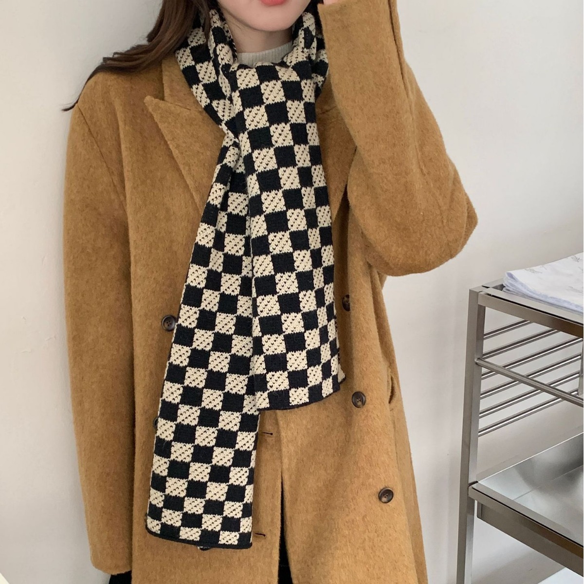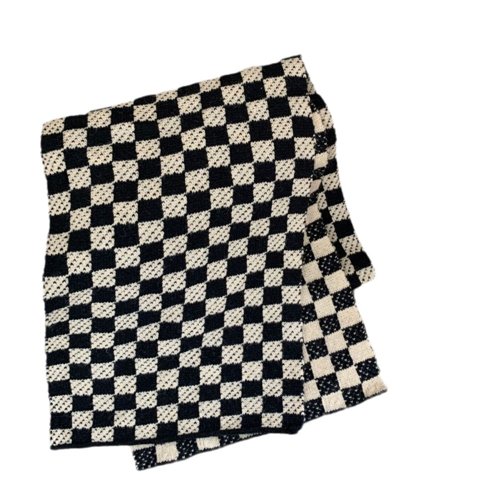 秋冬平价网红新款棋盘格子氛围加厚围巾女学生百搭保暖针织围脖女
