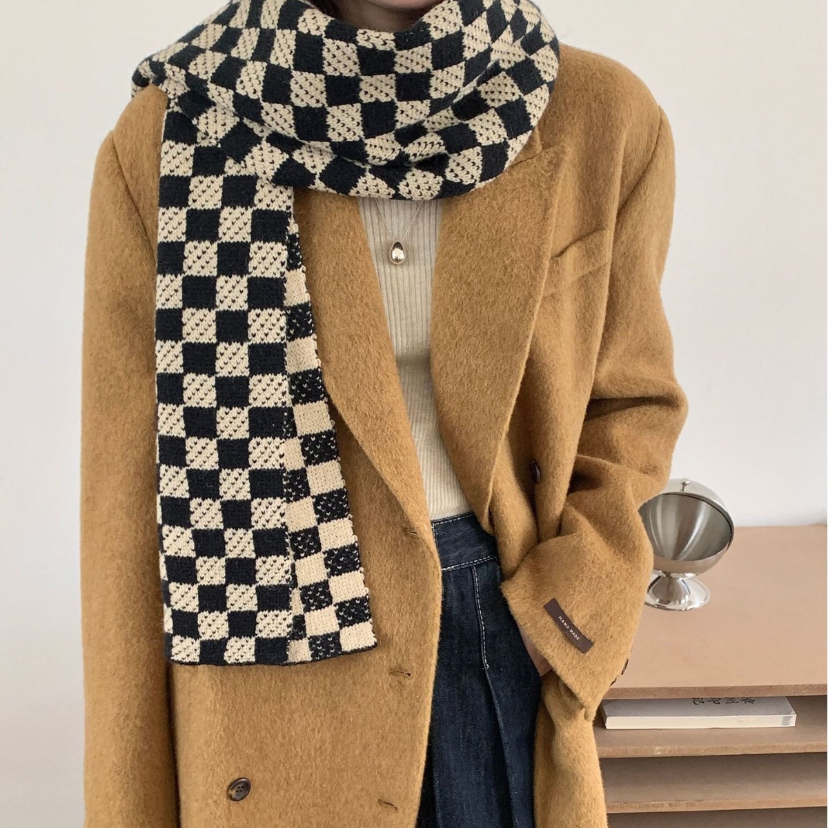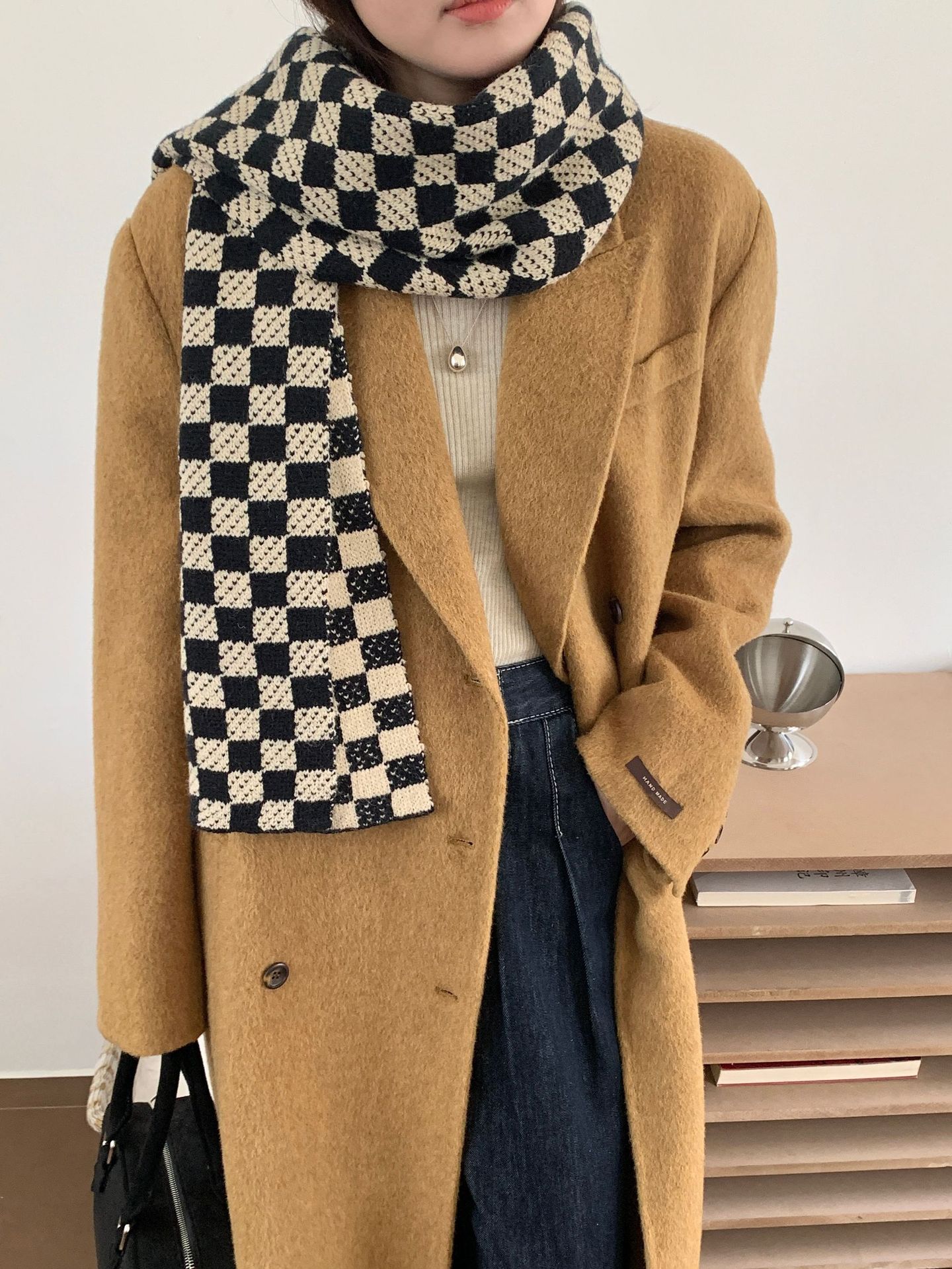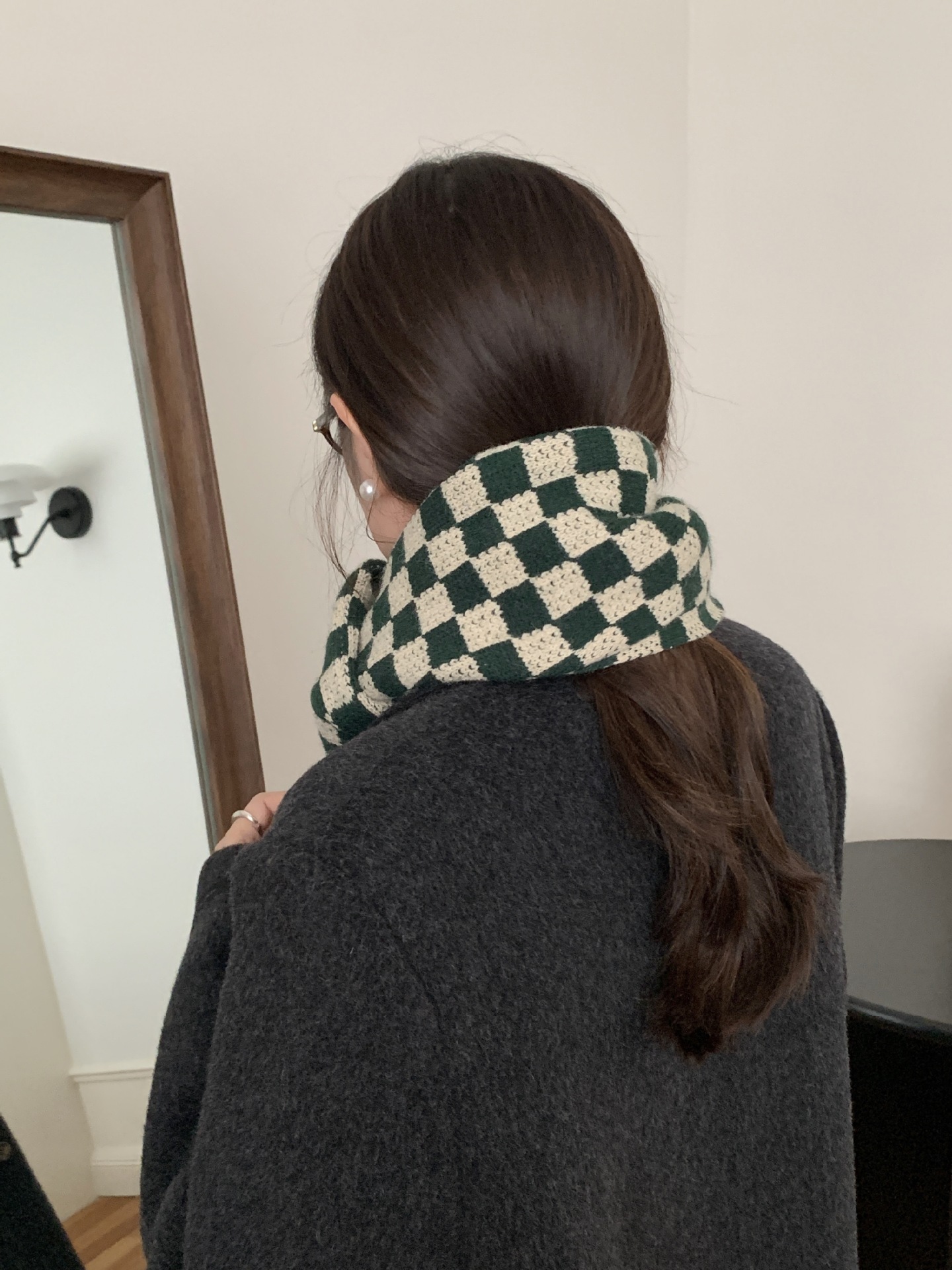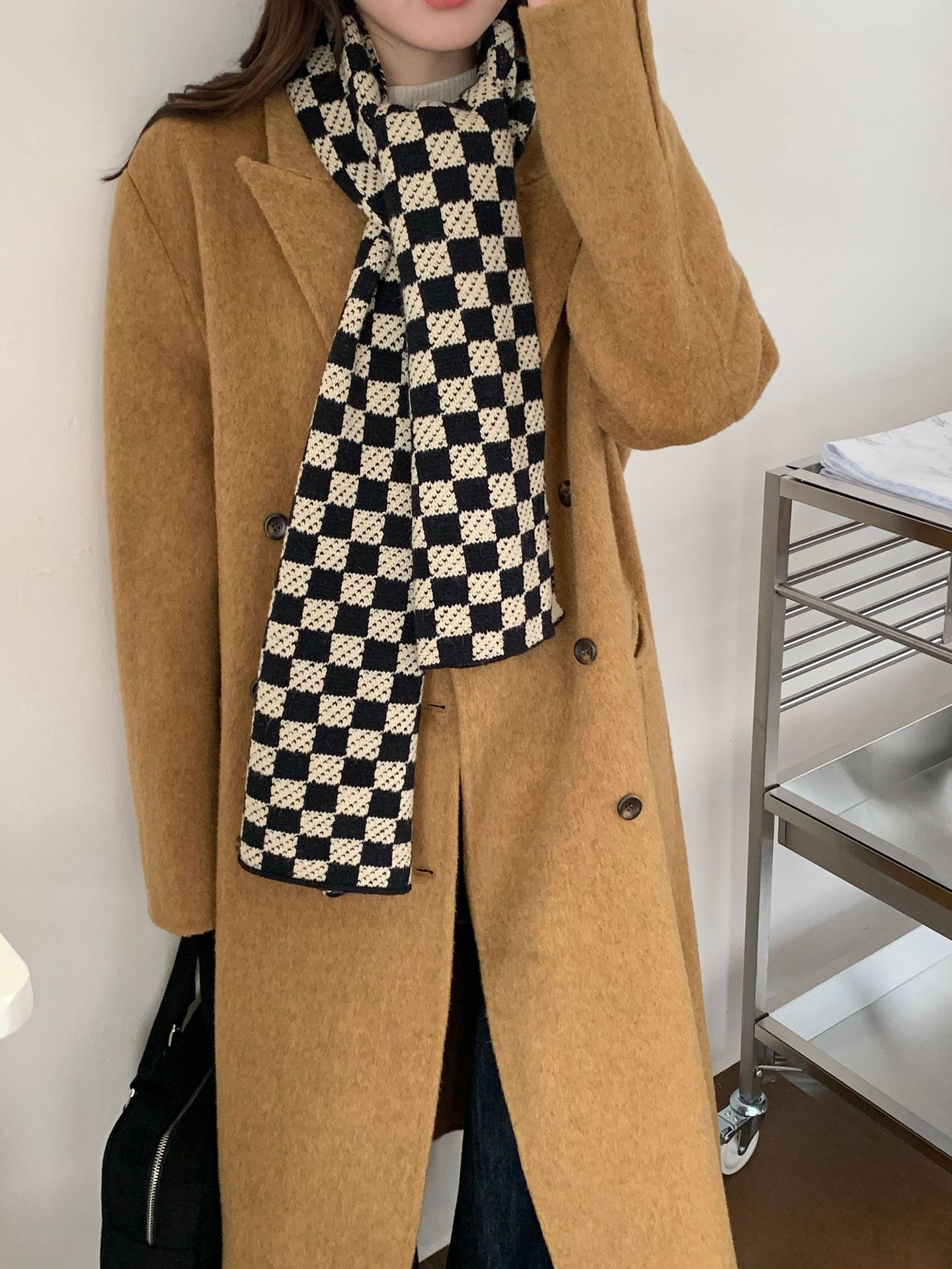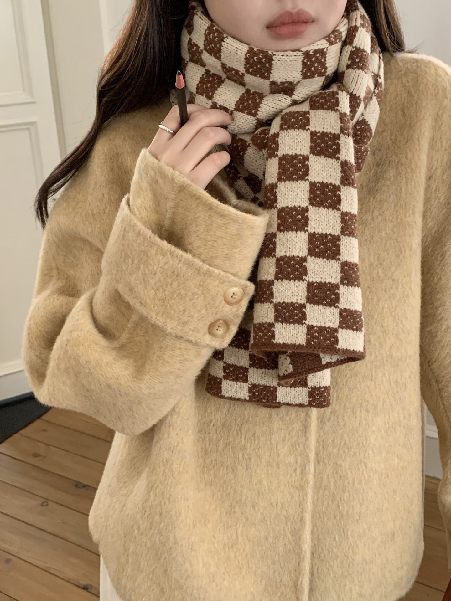 秋冬平价网红新款棋盘格子氛围加厚围巾女学生百搭保暖针织围脖女