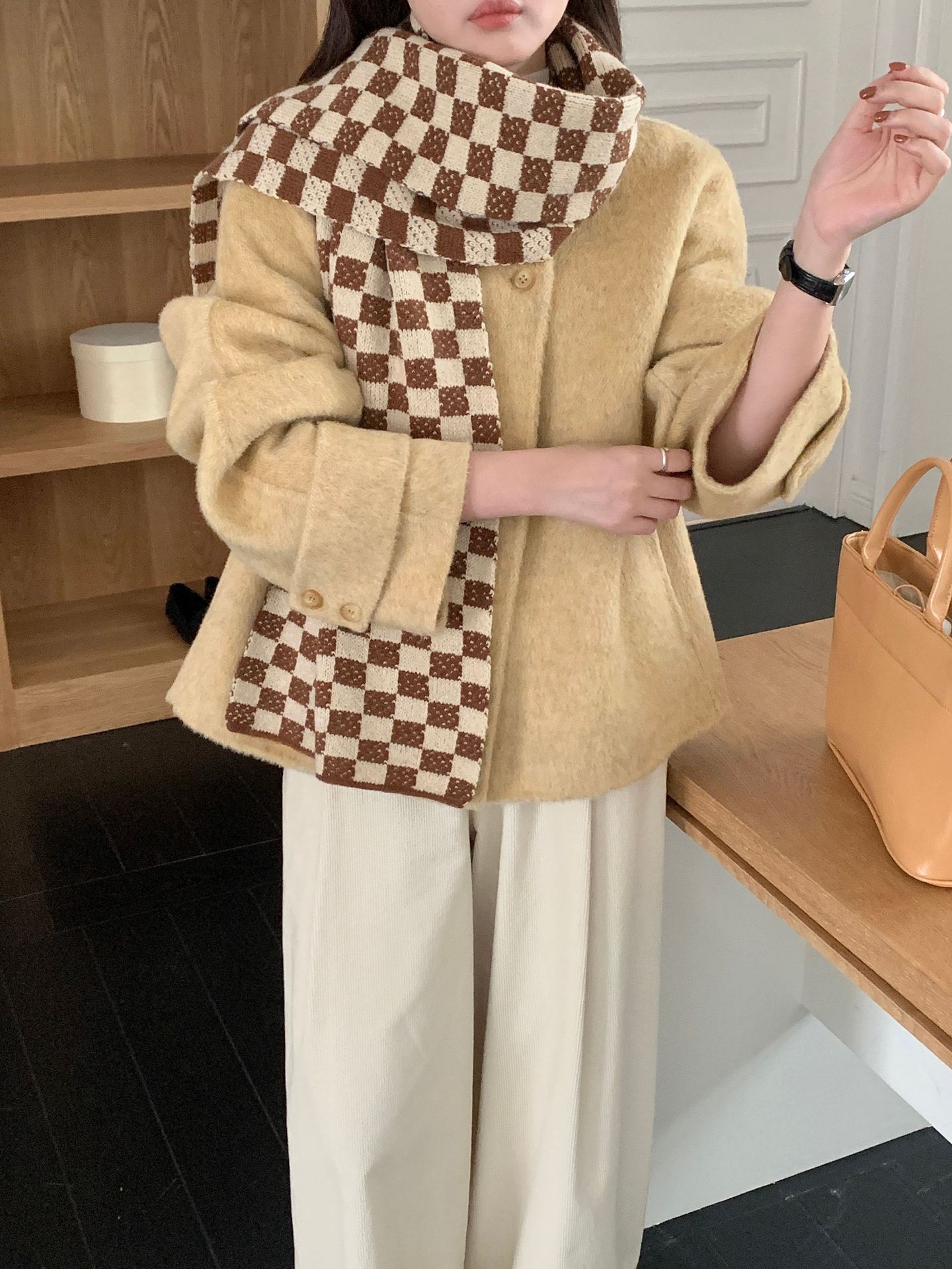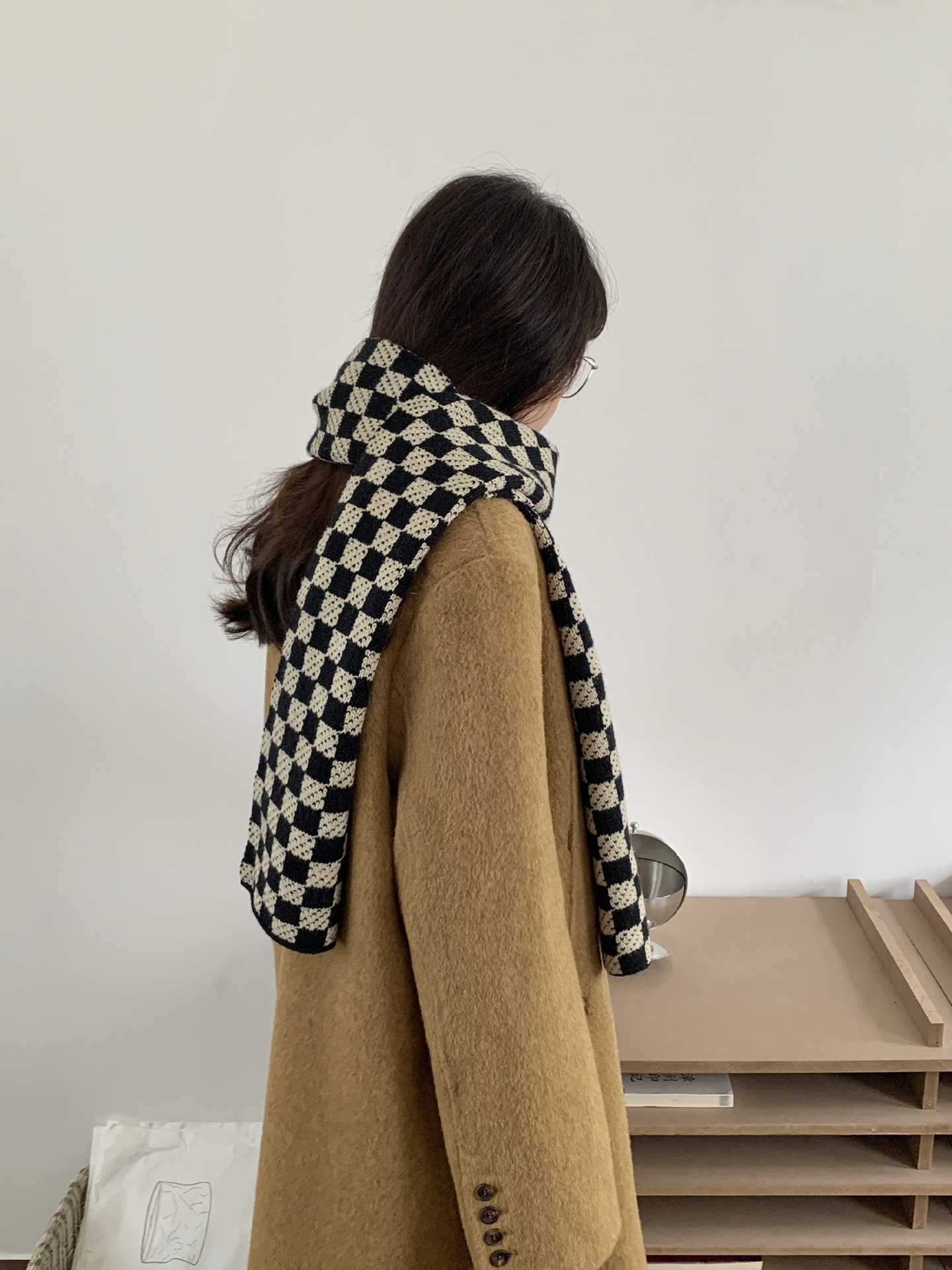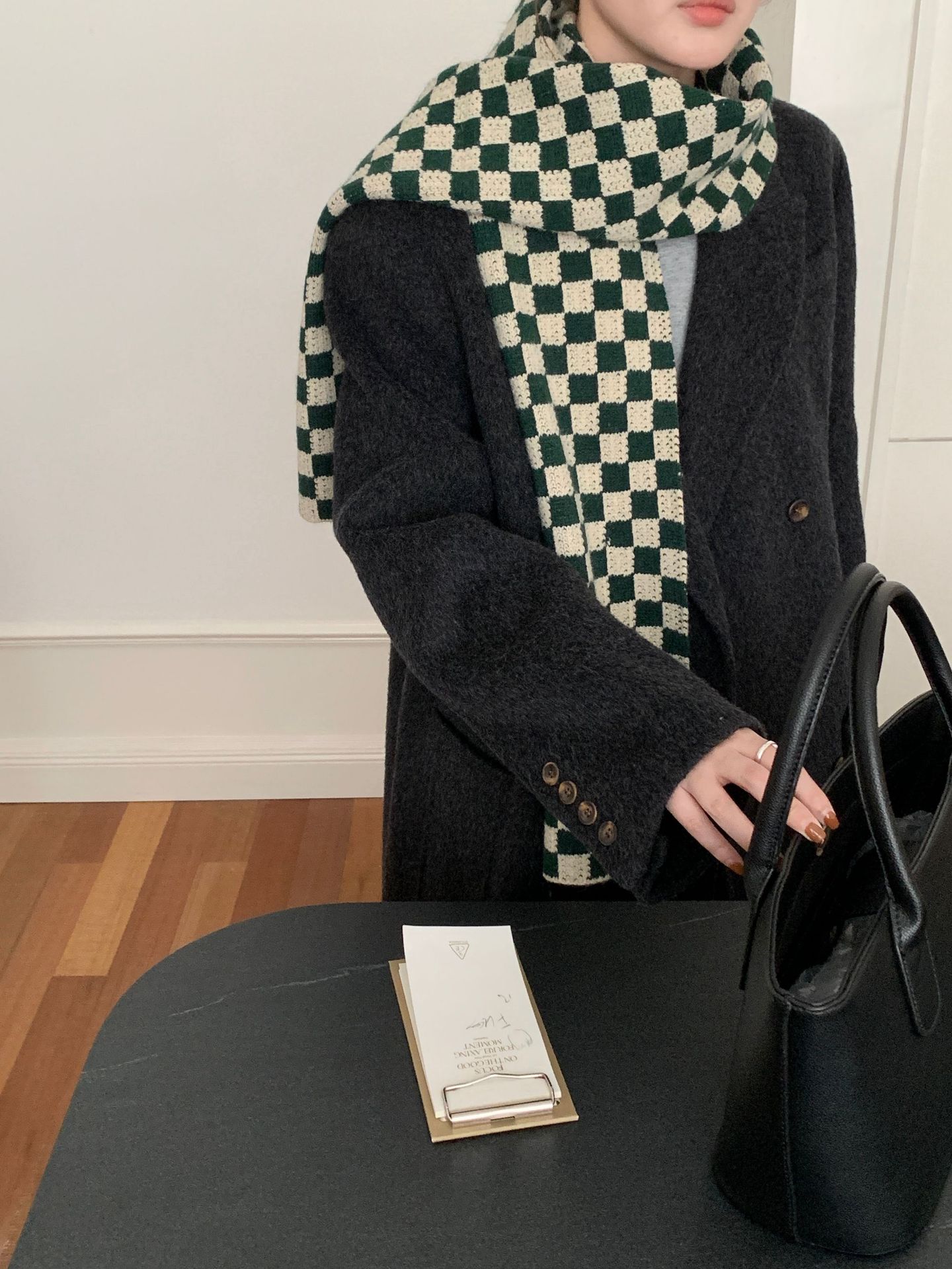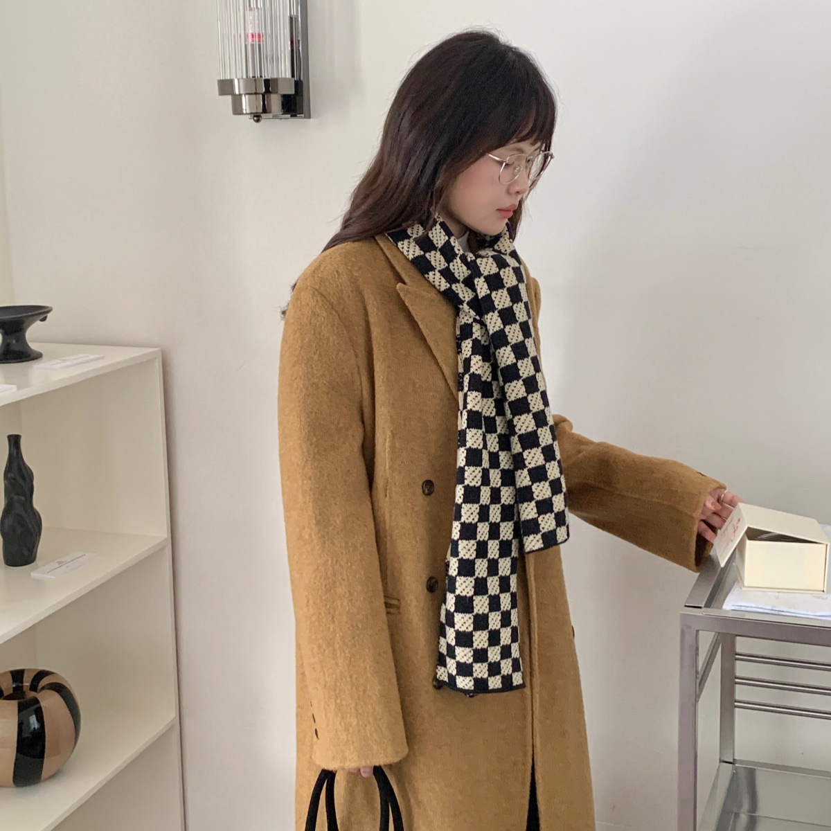 秋冬平价网红新款棋盘格子氛围加厚围巾女学生百搭保暖针织围脖女