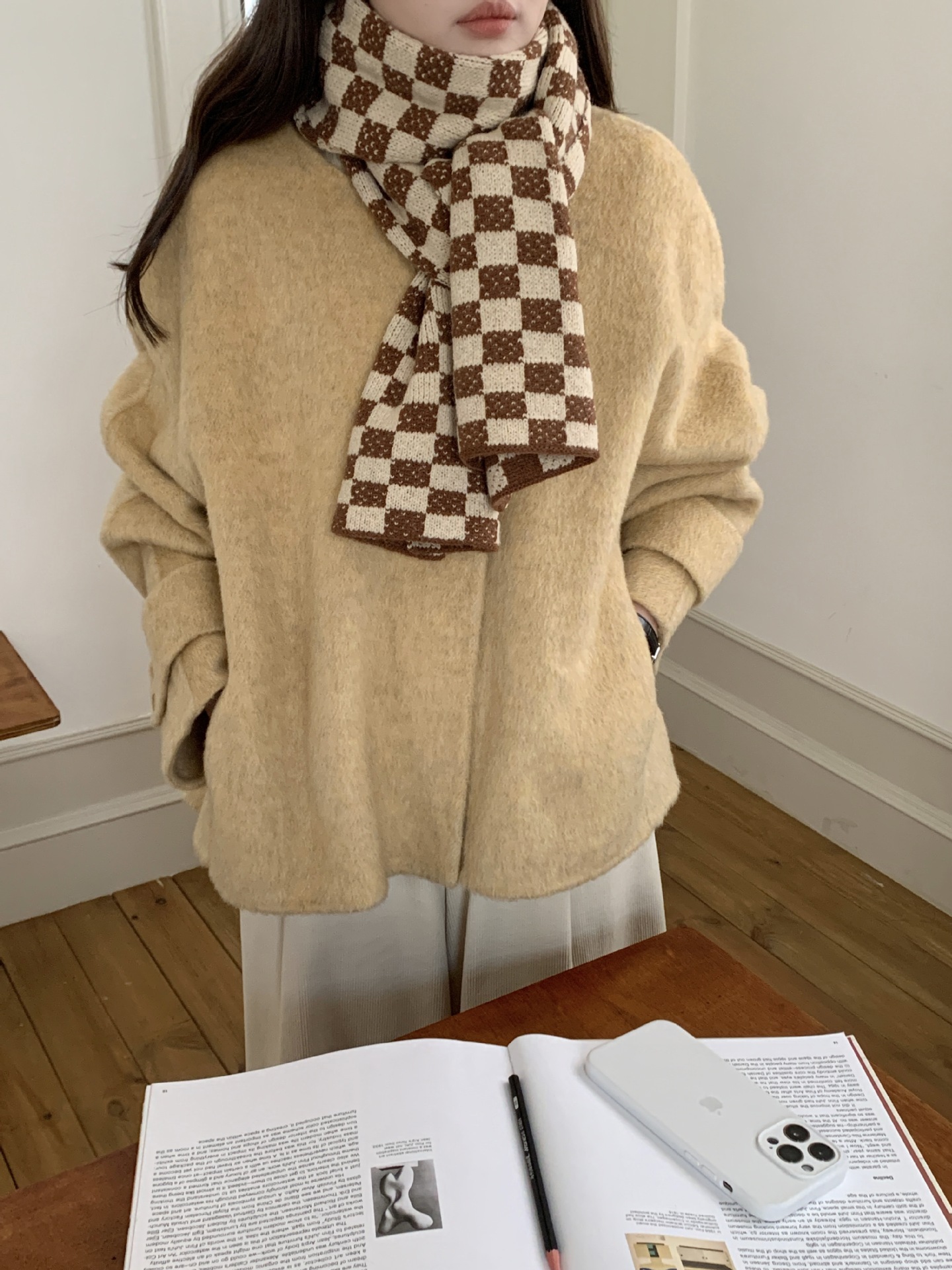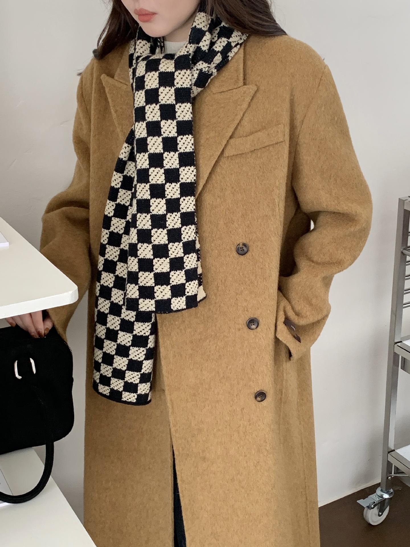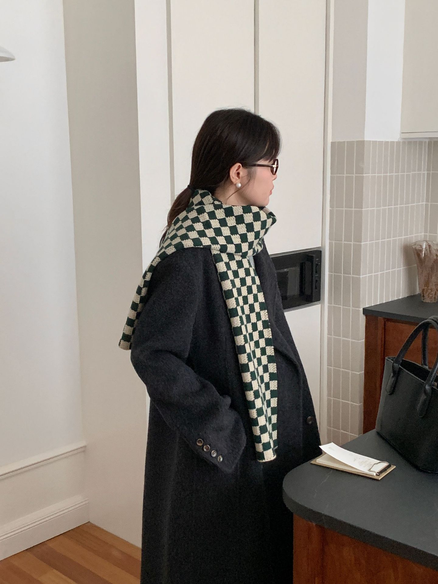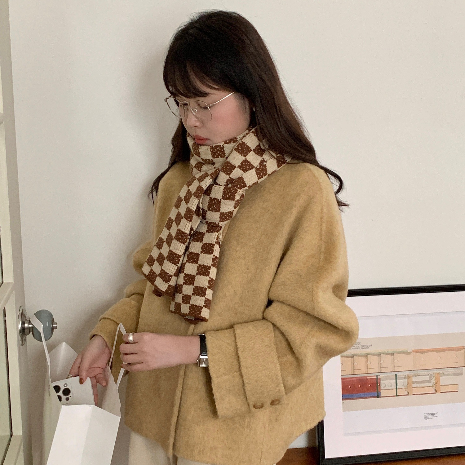 秋冬平价网红新款棋盘格子氛围加厚围巾女学生百搭保暖针织围脖女