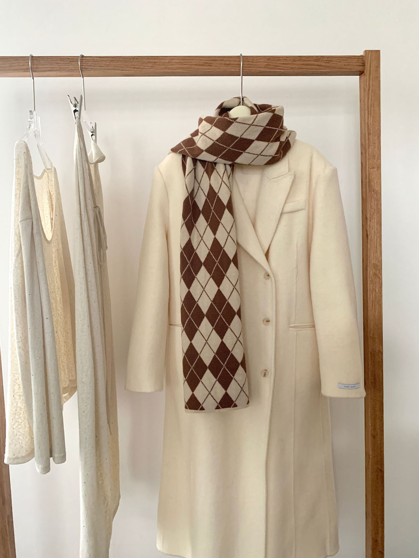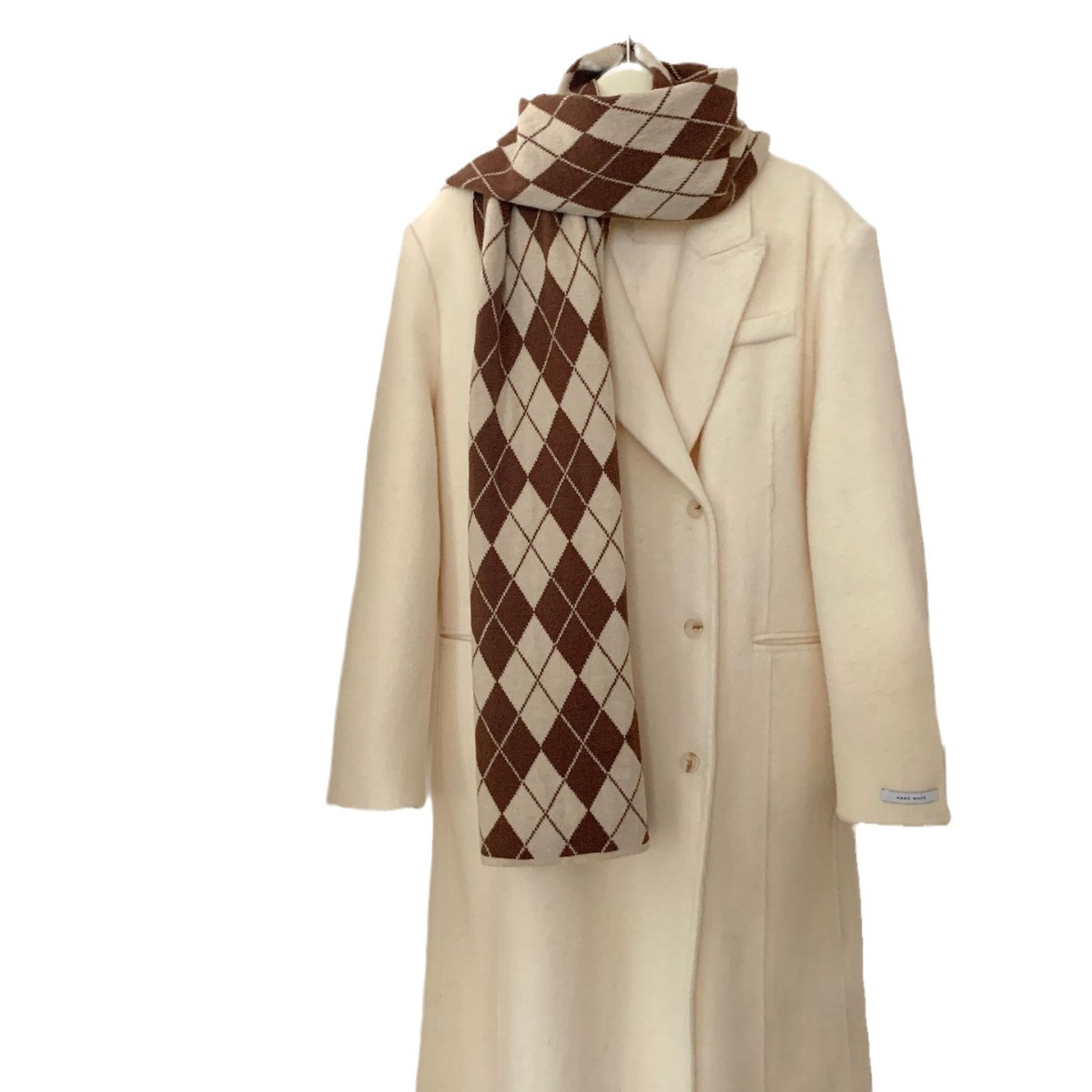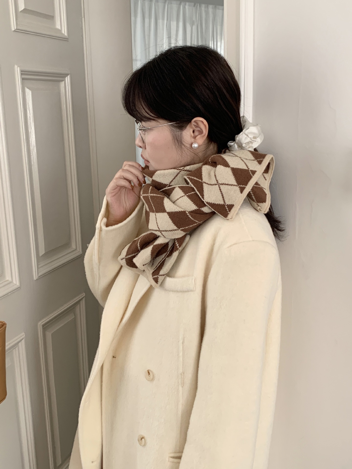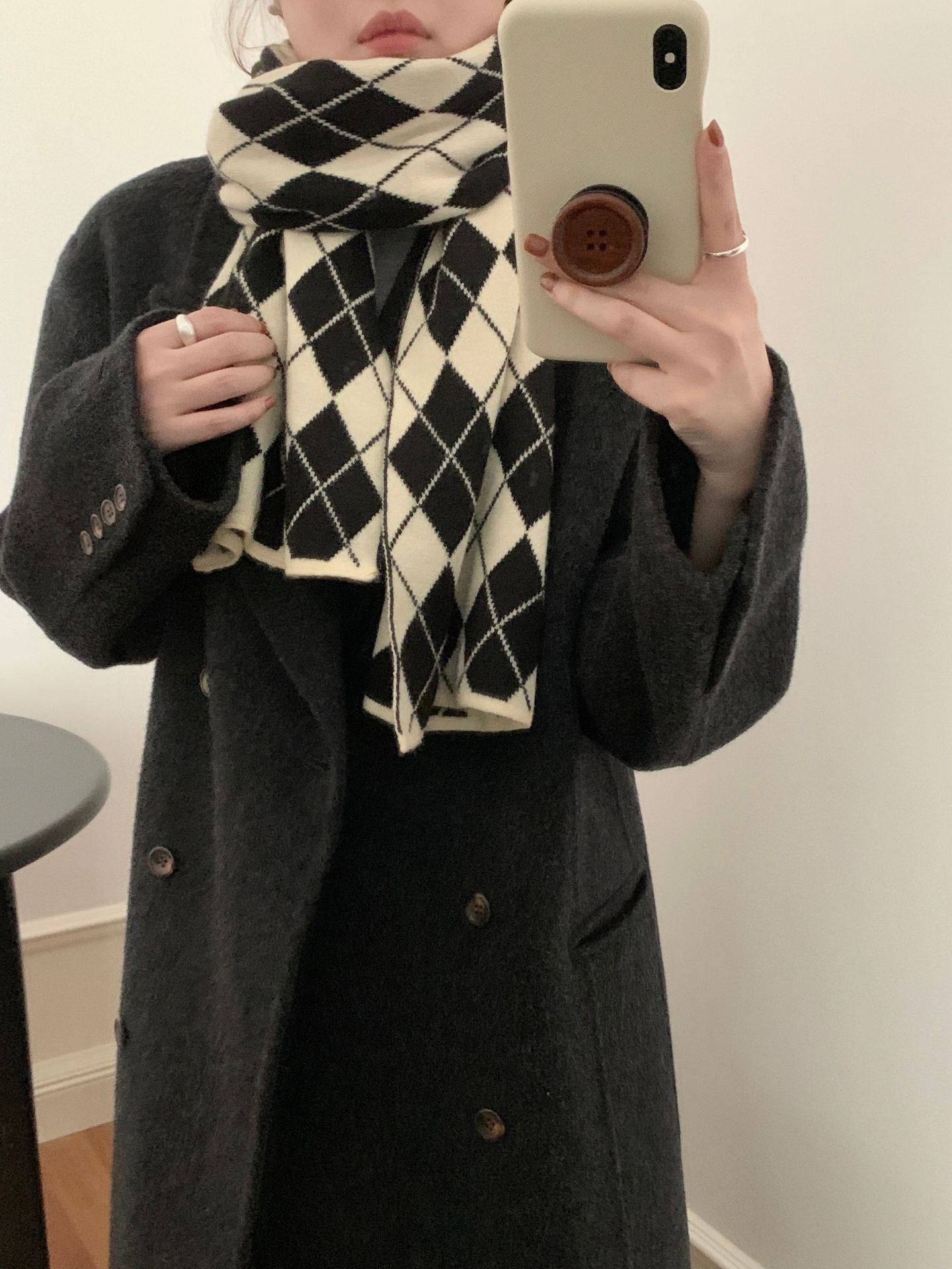 新款平价围巾女秋冬韩系复古大菱形双面撞色拼色格子百搭针织围脖