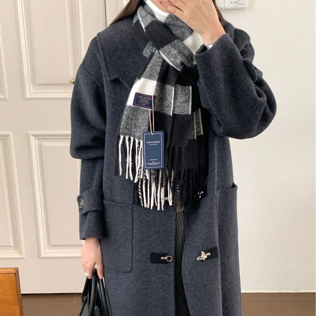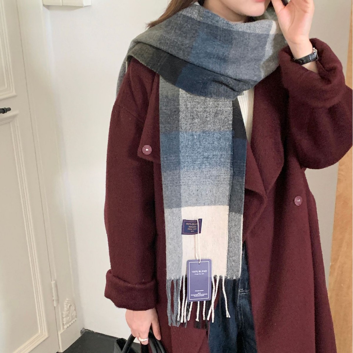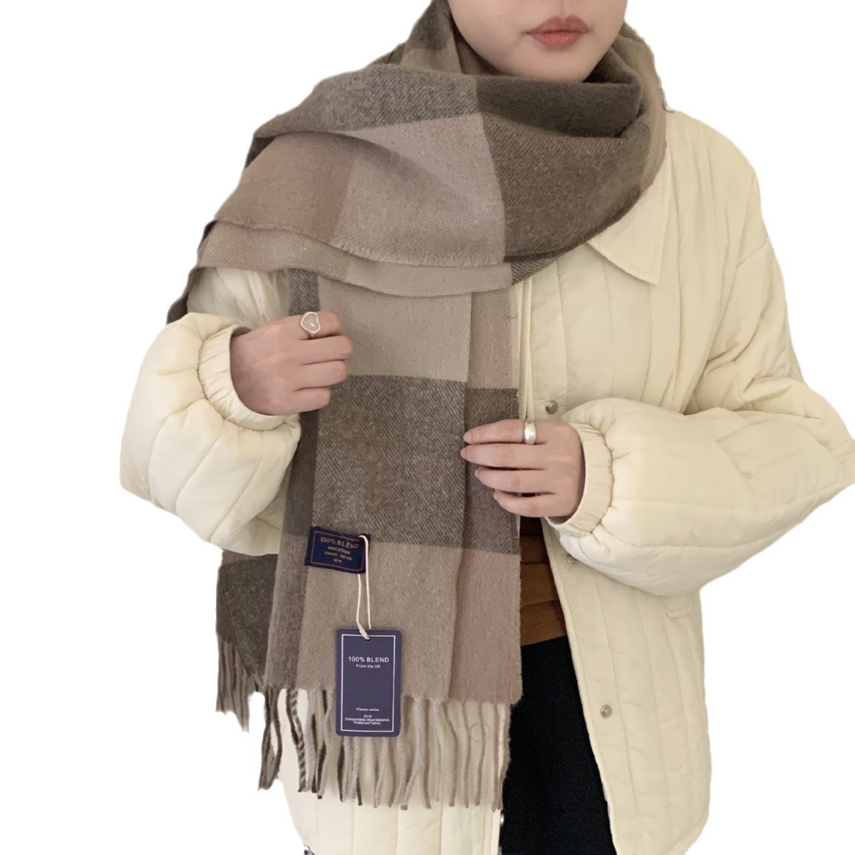 新款情侣百搭保暖冬季围脖经典格纹网红披肩时尚格子流苏围巾潮流