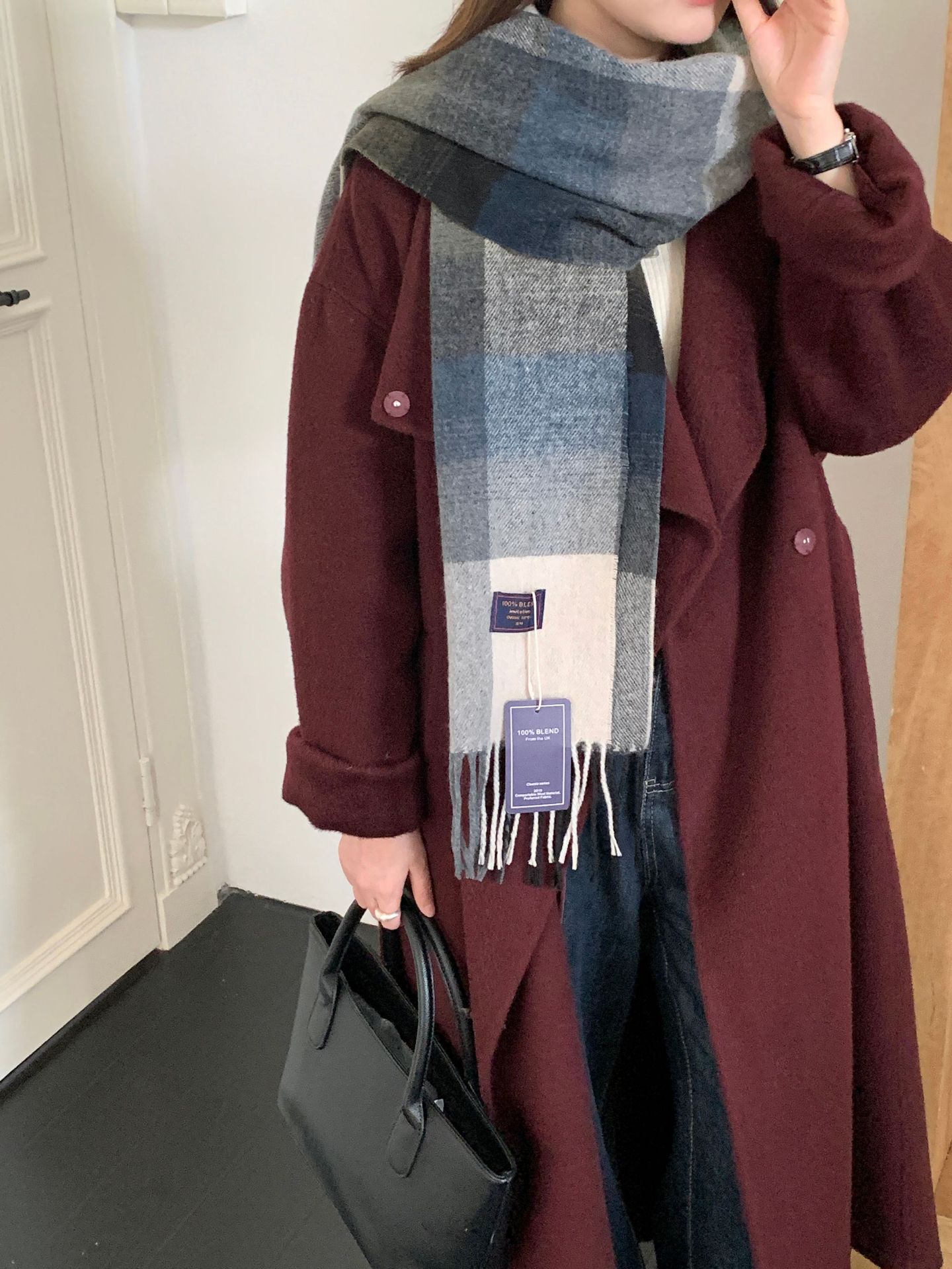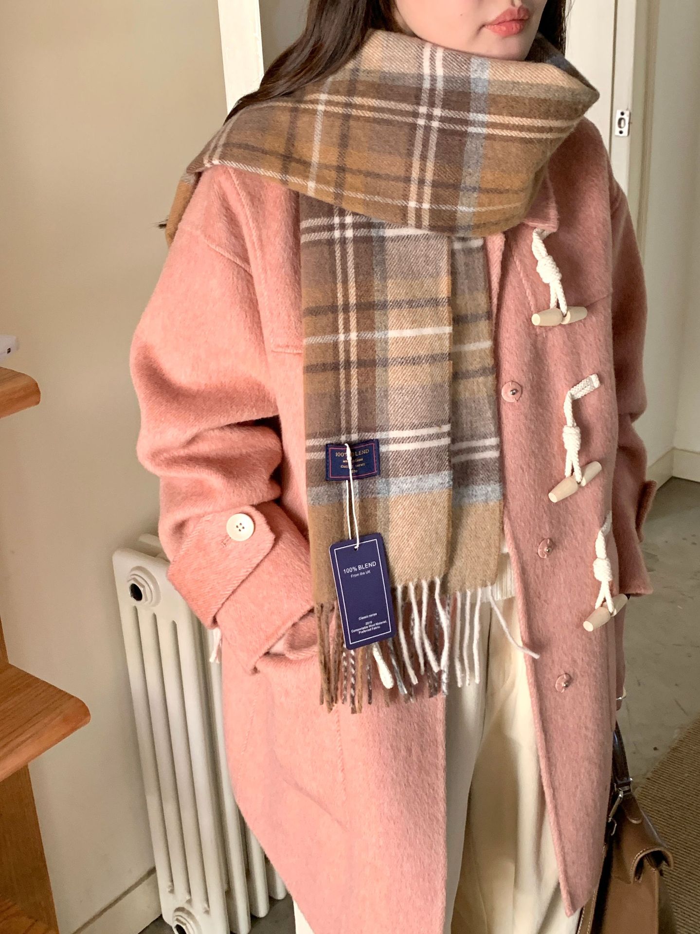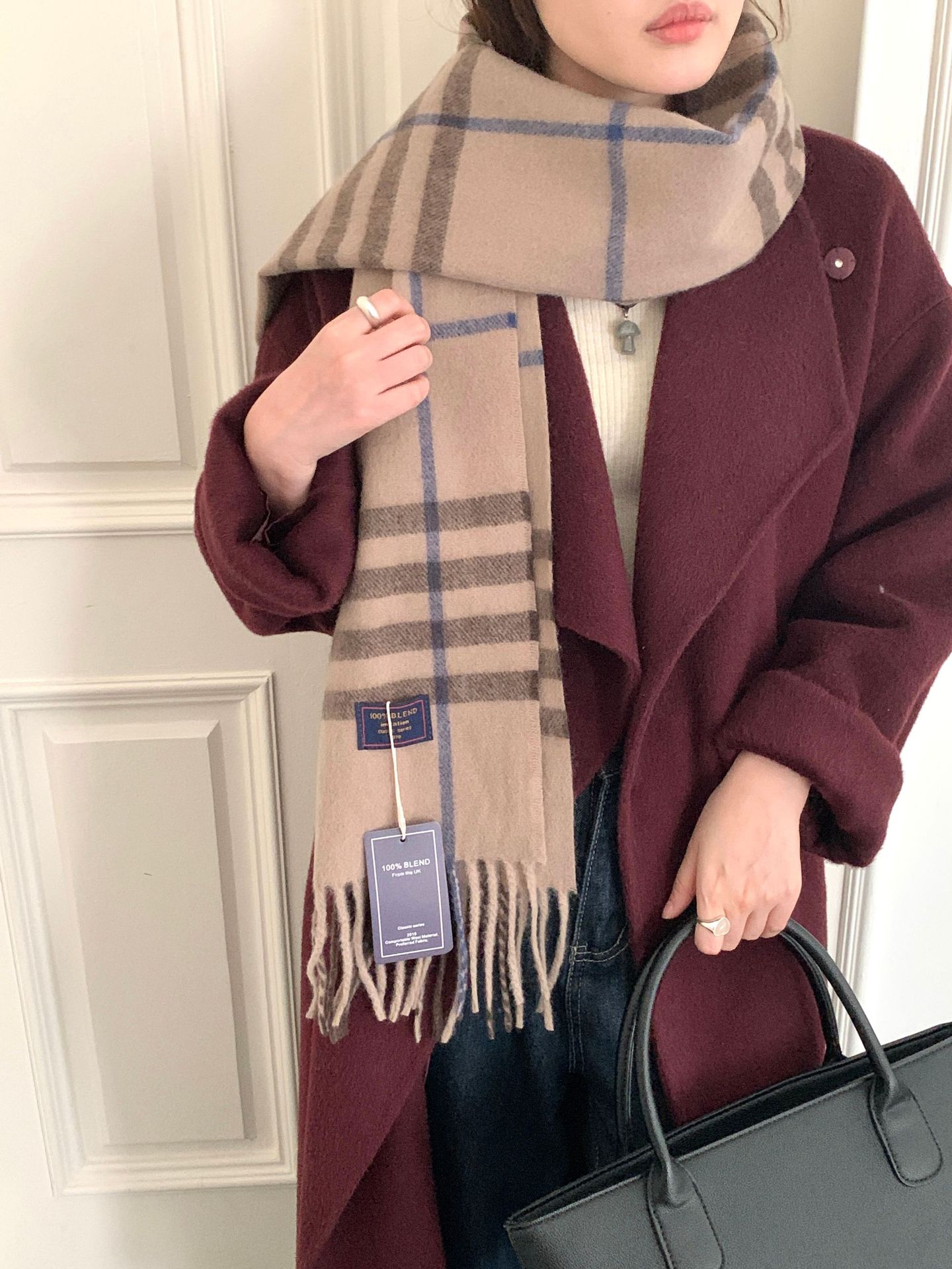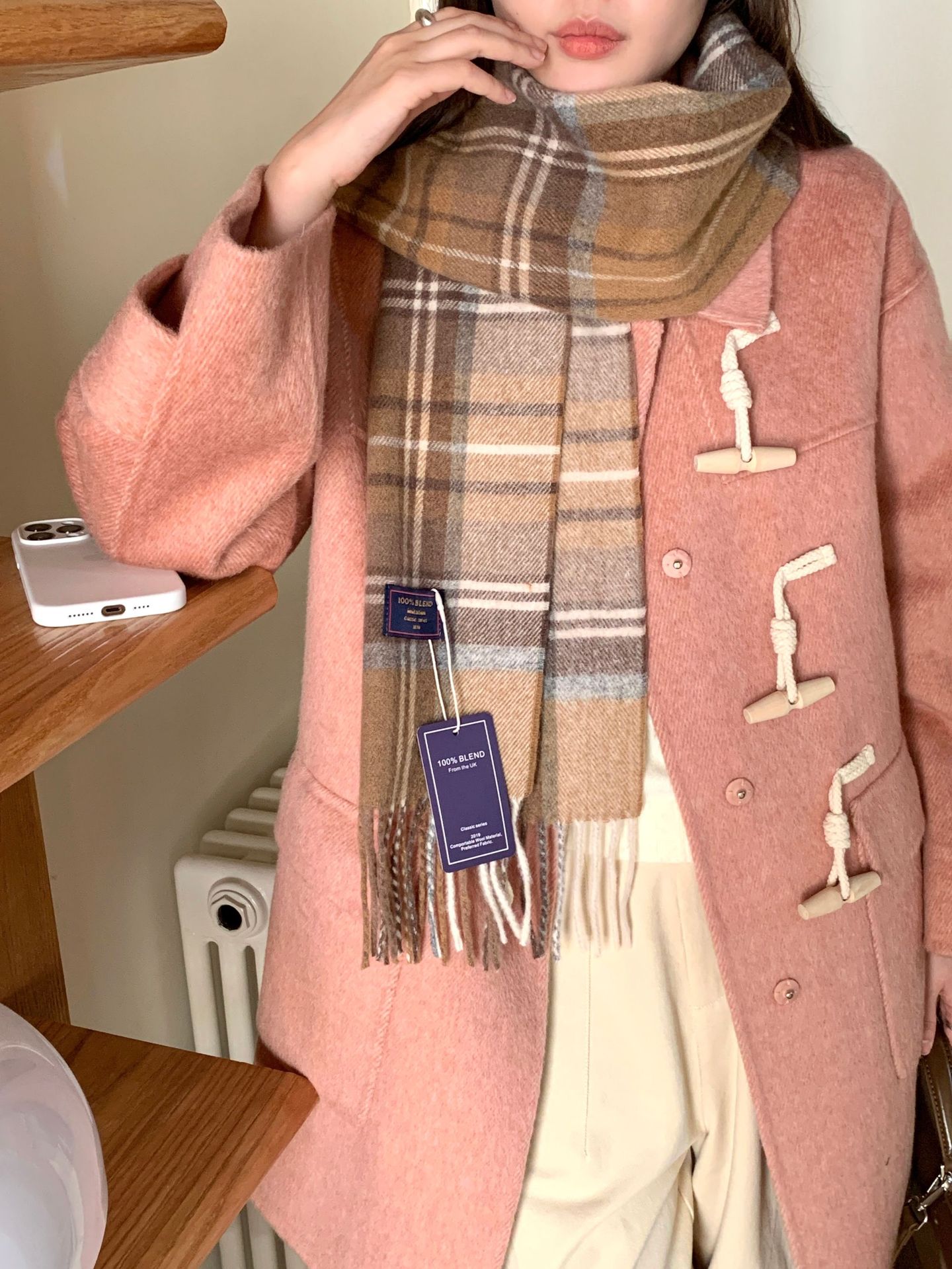 新款情侣百搭保暖冬季围脖经典格纹网红披肩时尚格子流苏围巾潮流
