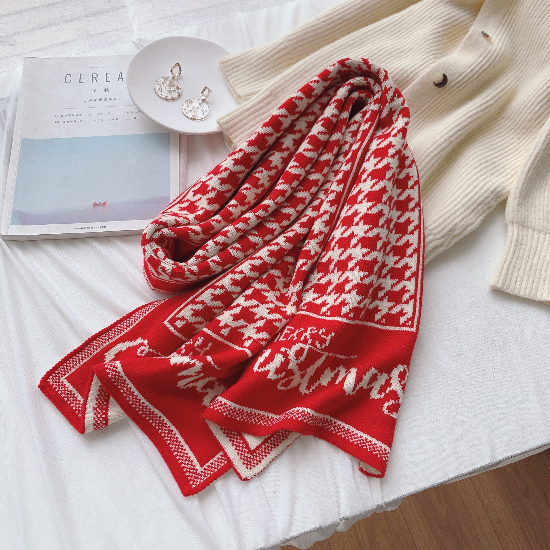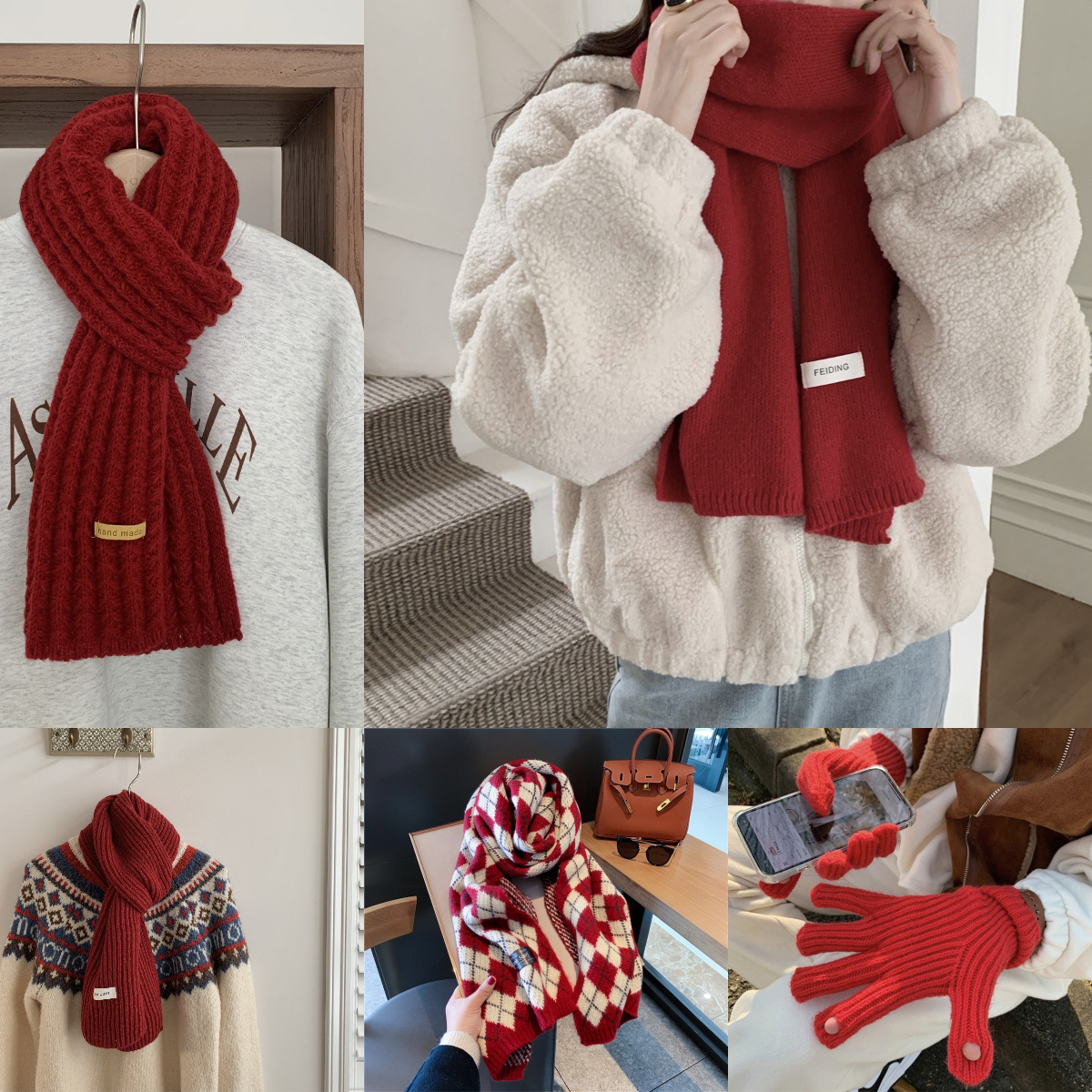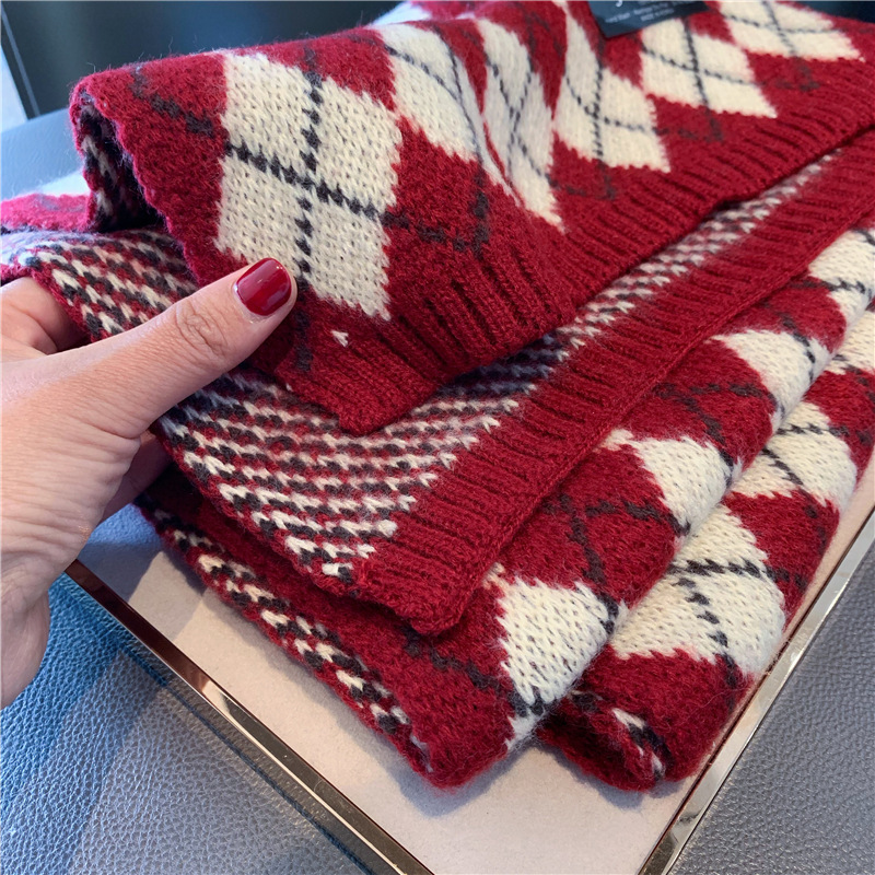 新年红色围巾冬季女节日礼物情侣百搭学生平价韩针织保暖加厚围脖