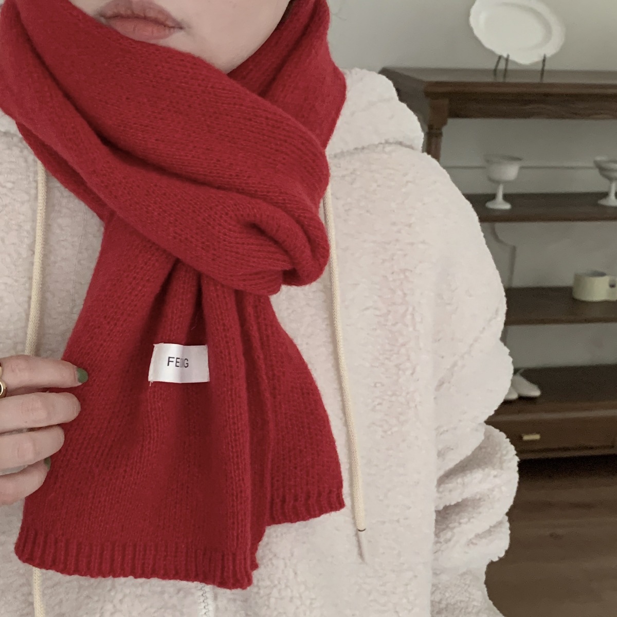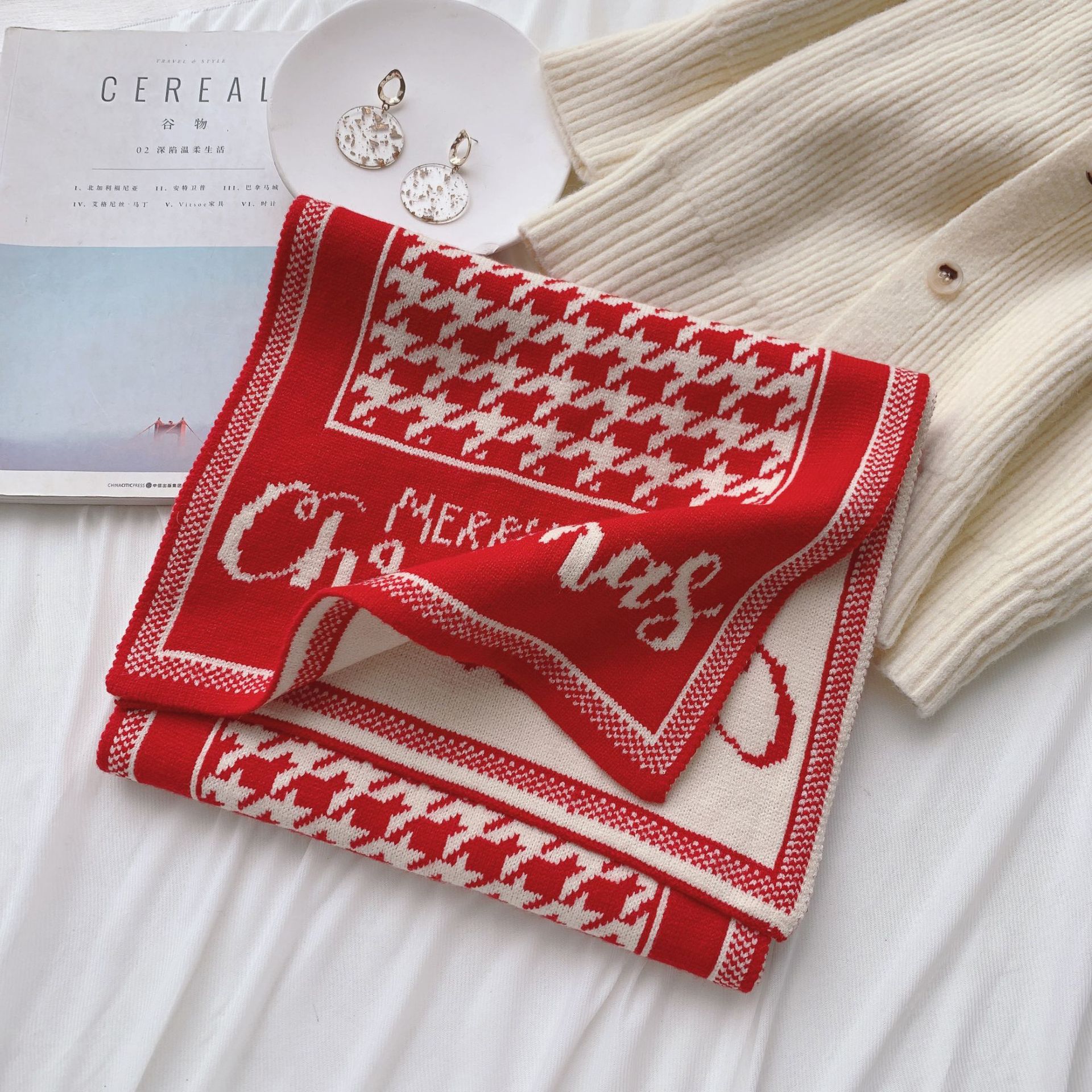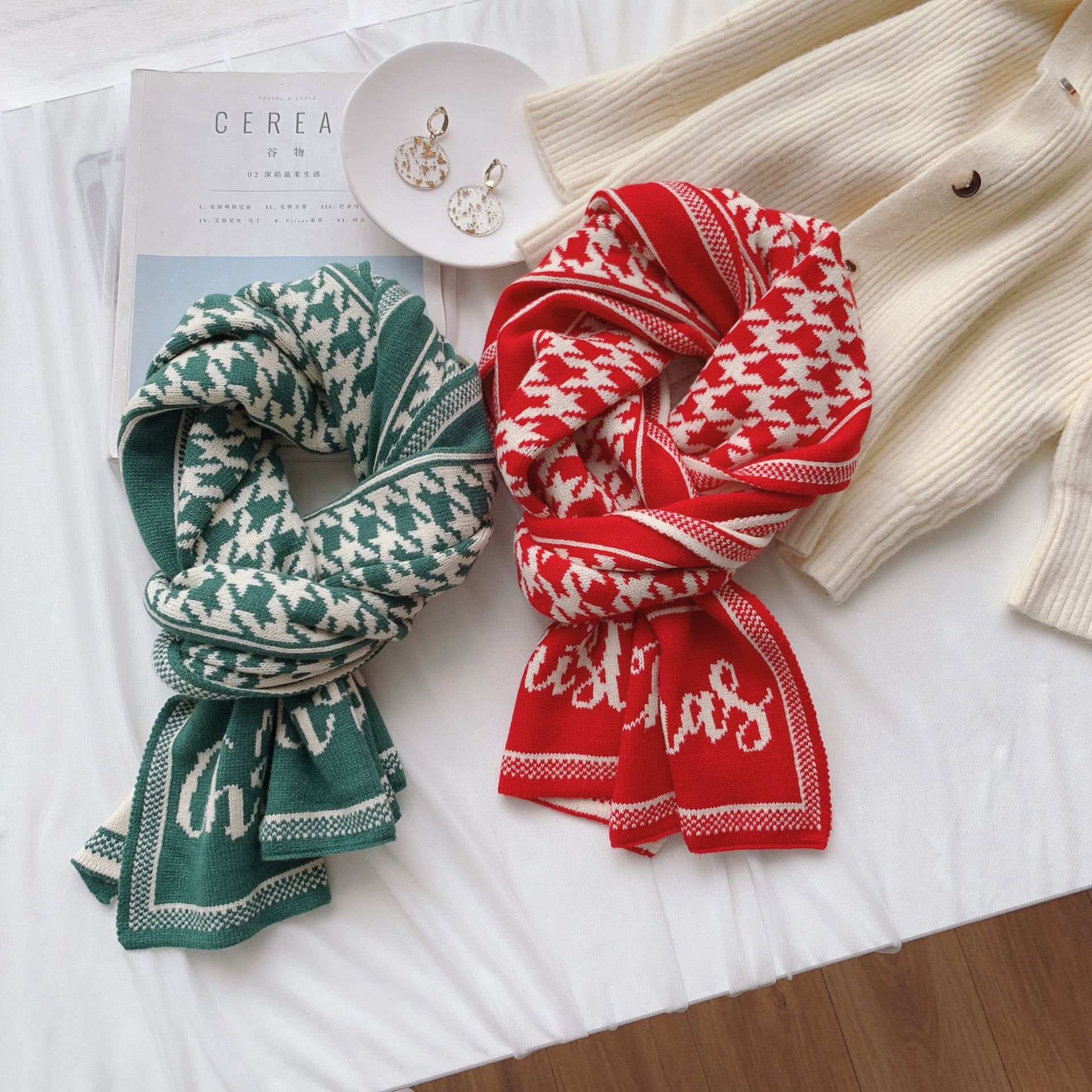 新年红色围巾冬季女节日礼物情侣百搭学生平价韩针织保暖加厚围脖