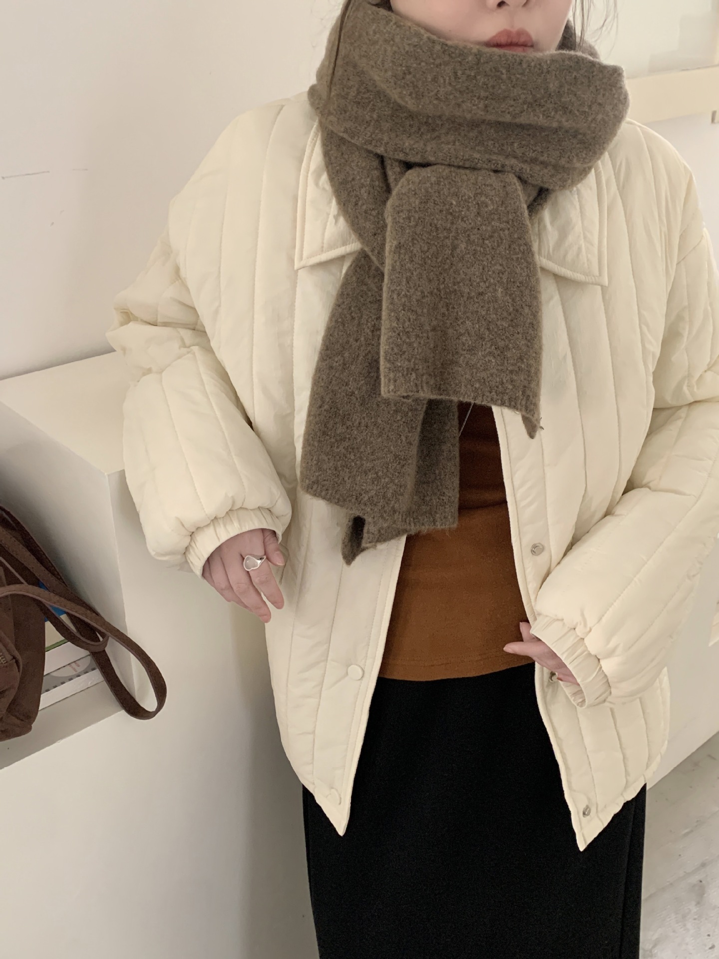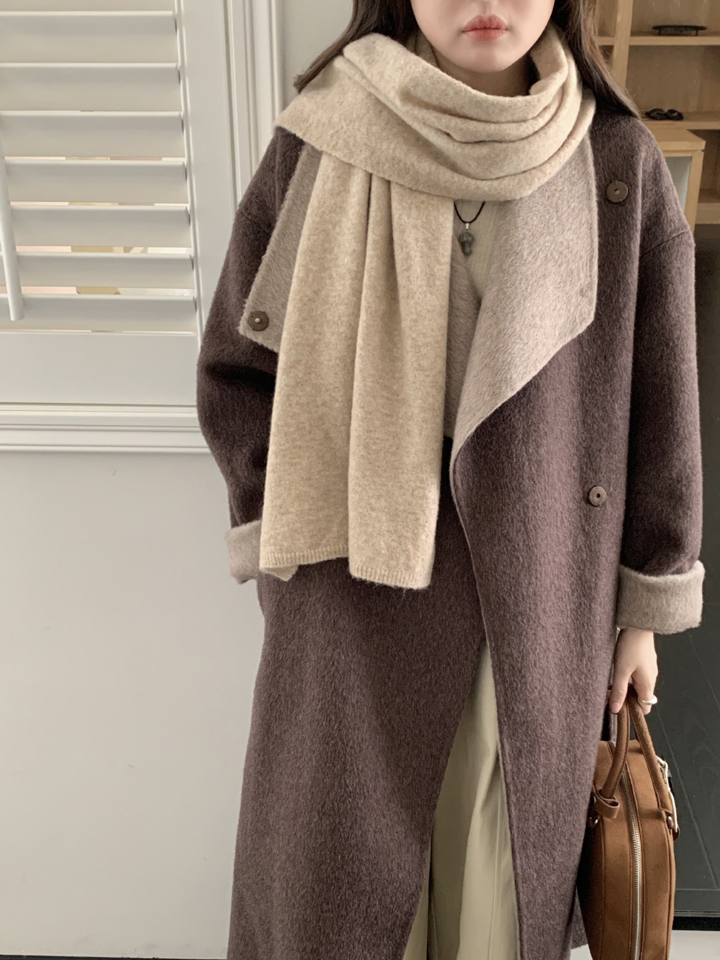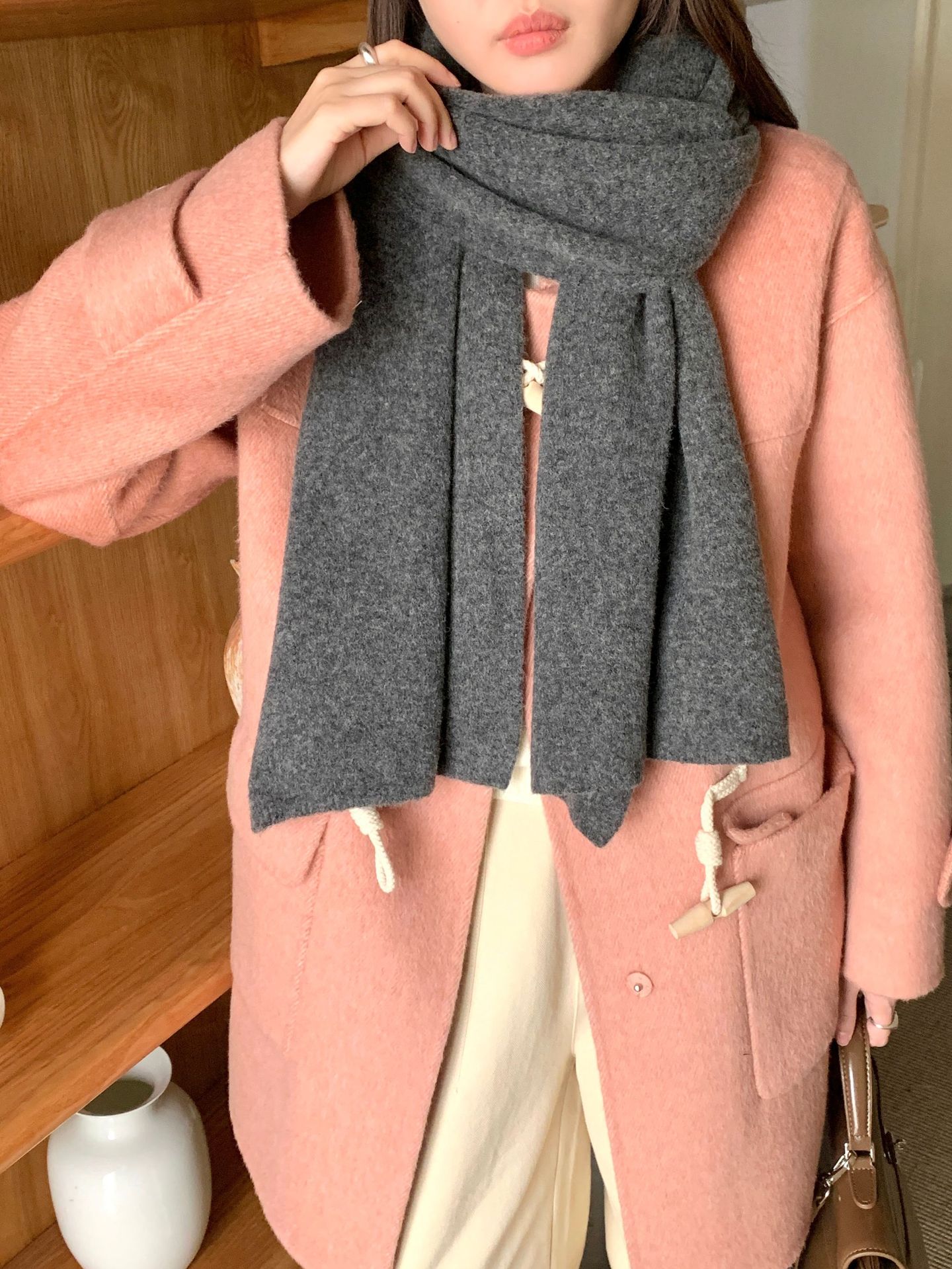 日韩系秋冬新款纯色羊毛混纺围巾保暖简约高级百搭围脖工厂直销女