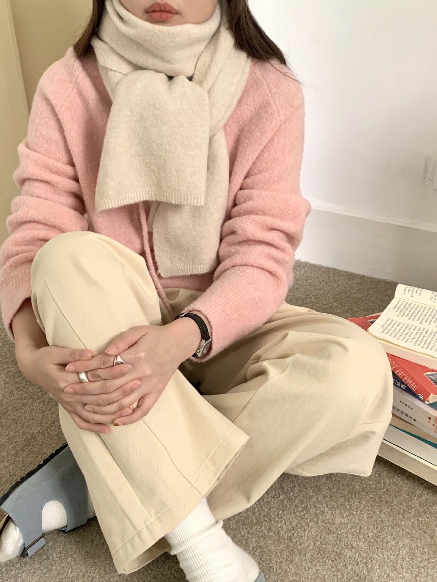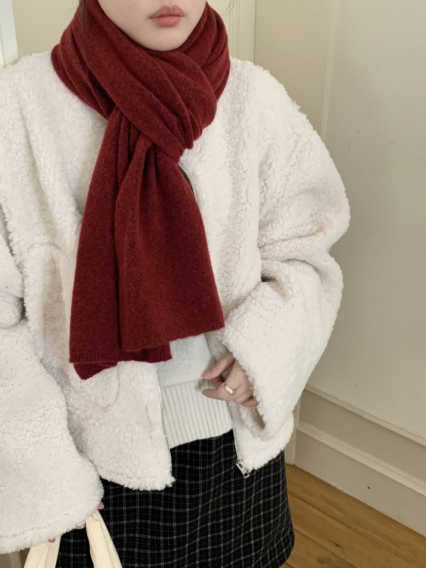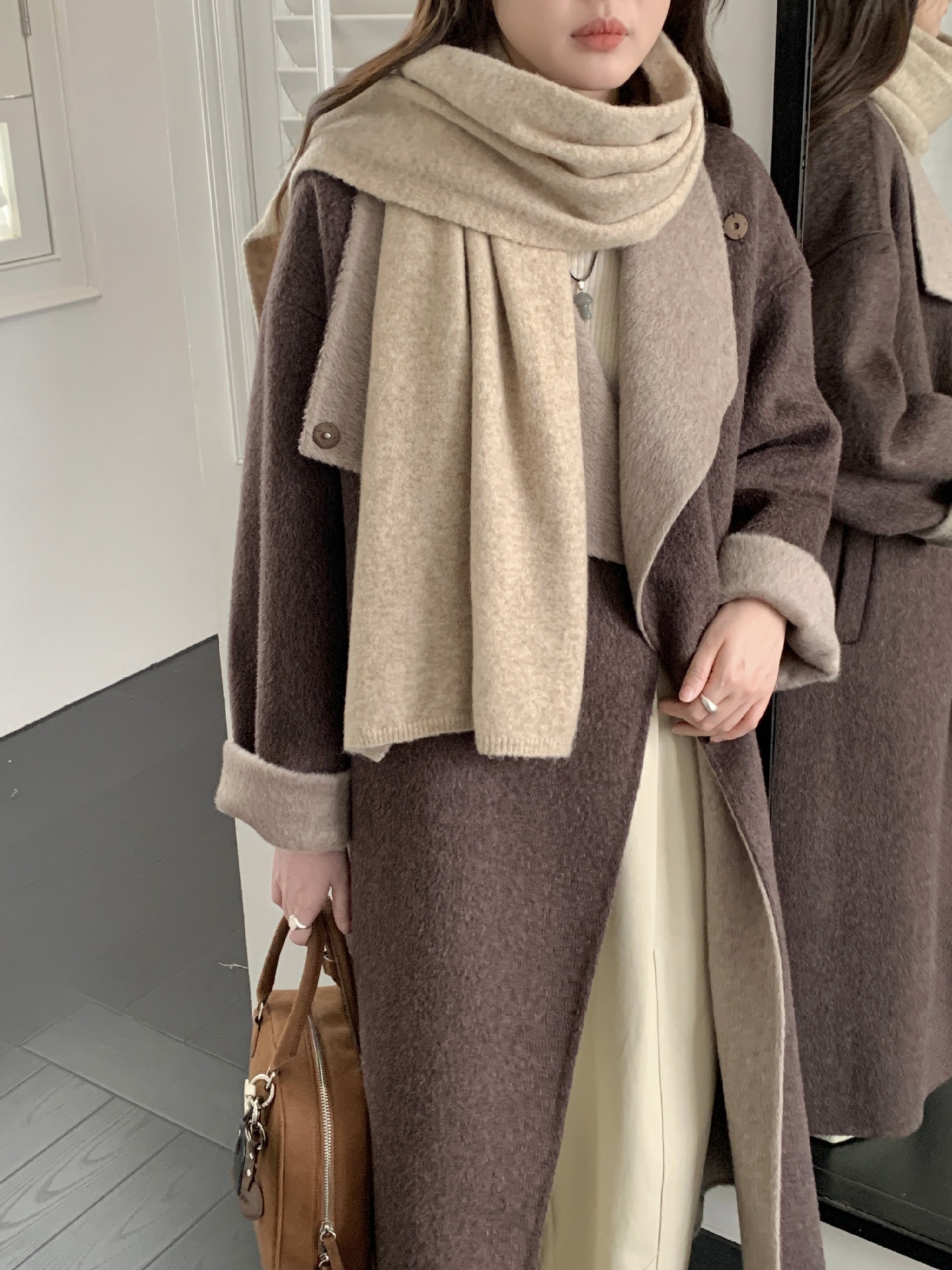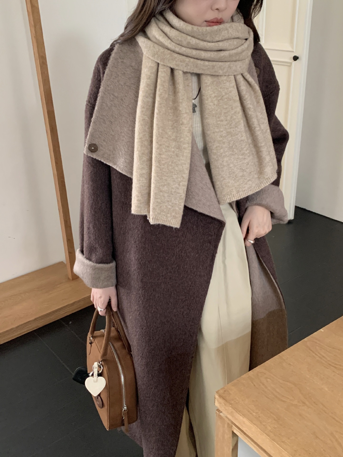 日韩系秋冬新款纯色羊毛混纺围巾保暖简约高级百搭围脖工厂直销女